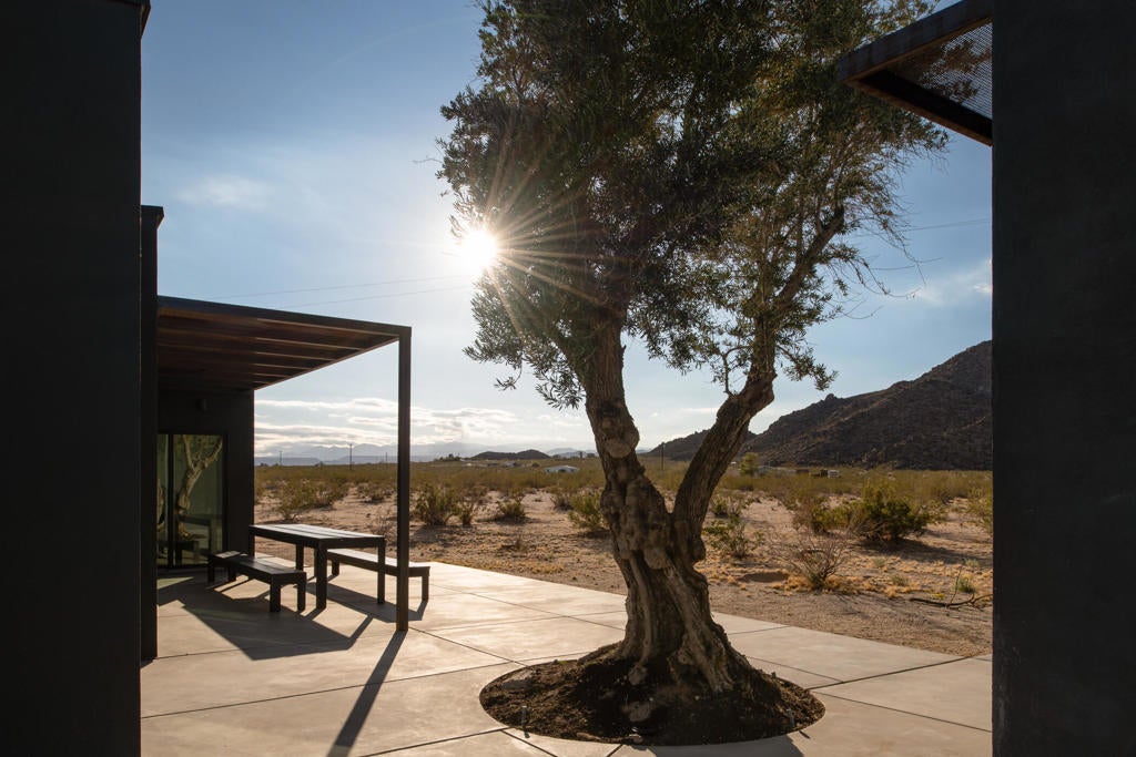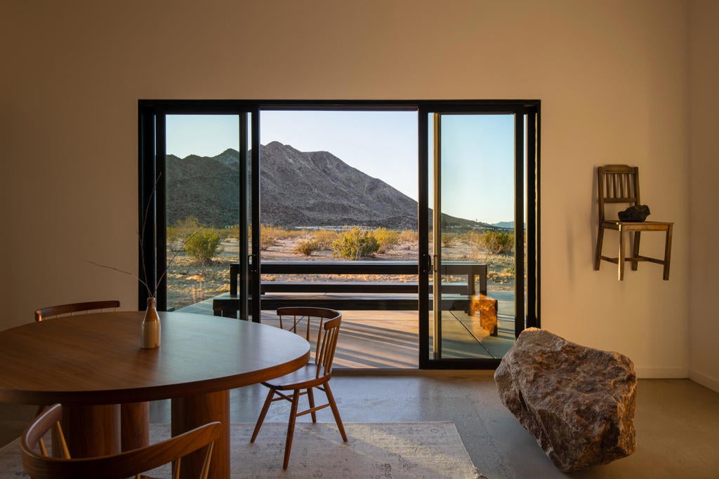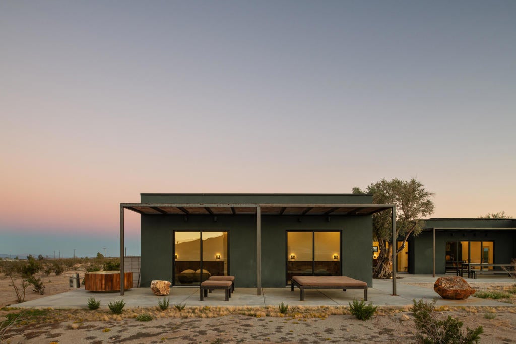 The Goat Mountain HouseA 2024 architectural desert compound set against the raw beauty of the Mojave.Welcome to The Goat Mountain House, a contemporary, design-forward retreat conceived for those who value architecture as art. Completed in 2024, this modern minimalist compound comprises two sculptural volumes: a striking main residence and a generous guest house, each thoughtfully positioned to harmonize with the surrounding landscape and capture the quiet grandeur of Goat Mountain.The main house features clean lines, smooth stucco walls, and soaring ceilings that create a sense of calm and openness. Floor-to-ceiling glass frames expansive High Desert views, flooding the interior with natural light and connecting every space to the rugged beauty outside. A refined kitchen with a large island anchors the open-concept layout, flanked by two serene bedrooms and a spa-like bath.A west-facing covered patio extends the living area outdoors, ideal for al fresco dining beneath endless desert skies. Between the two structures, a mature olive tree offers a sculptural focal point and anchors the flow of the compound.The guest house mirrors the home's aesthetic with its own living area, kitchenette, two bedrooms, and a beautifully finished bath. Outside, a wood-paneled hot tub and private patio create a perfect vantage point for stargazing or quiet morning coffee.Set in one of the most desirable pockets of Landers, the property offers rare tranquility, sweeping panoramic views, and a feeling of total serenity, all just minutes from Joshua Tree National Park, La Copine, the Integratron, and the shops and dining of Pioneertown and Yucca Valley.Custom planter boxes with sculptural cacti and a bespoke stone fire feature complete the setting, an intentional blend of restraint and warmth.More than a home, The Goat Mountain House is a living composition, an architectural retreat that functions beautifully as a full-time residence, a second home, or a design-forward short-term rental investment. It embodies the essence of the High Desert with expansive views, inspired design, and absolute quiet.