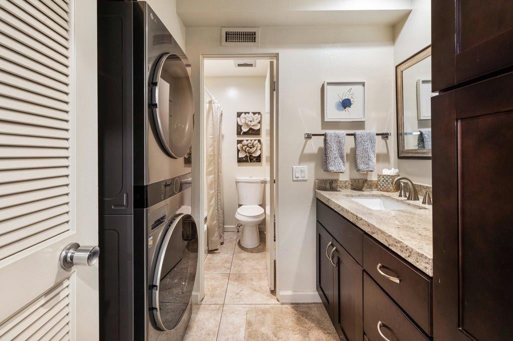 Welcome to this exquisite 2-bedroom, 3-bathroom condo nestled in the heart of Indian Wells, across from the BNP Tennis Tournament and next door to historic Indian Wells Country Club. Spanning 1,152 square feet, this turnkey furnished residence exudes elegance and modern comfort. The bathrooms have been remodeled to exquisite tasteStep inside to discover the seamless blend of style and functionality. The home features ceramic floors throughout, accentuated by tasteful window treatments. The ambiance is enhanced by chandeliers and recessed lighting, creating an inviting atmosphere perfect for both everyday living and entertaining.The heart of the home is the open kitchen, outfitted with premium counters and marble kitchen surfaces. Culinary enthusiasts will appreciate the stainless steel appliances, wine cooler, and breakfast bar, making meal preparation a delightful experience. Adjacent to the kitchen, a cozy dining alcove offers a charming space for intimate meals, and living room that opens up to 2 of the 3 patios..Relaxation and leisure extend outdoors to a large patio and barbecue area, with 3 seating areas perfect for hosting gatherings or enjoying a quiet evening under the stars. This tiled patio is outfitted with comfortable lounging furniture, dining table, party lights, BBQ, and outdoor heaters.Convenience is key, with a laundry room equipped with a washer and dryer, adding to the ease of everyday living. This condo is a sanctuary of luxury and practicality, awaiting its new owner to make it their own. Seven day rentals are available, with a current rental manager for a seamless transfer. Embrace the opportunity to experience this exceptional lifestyle in a prime location. Approximately $28K in booked rentals for Dec '25 thru week 1 of May '26 with more openings to fill. A buyer can take those over for instant income!!