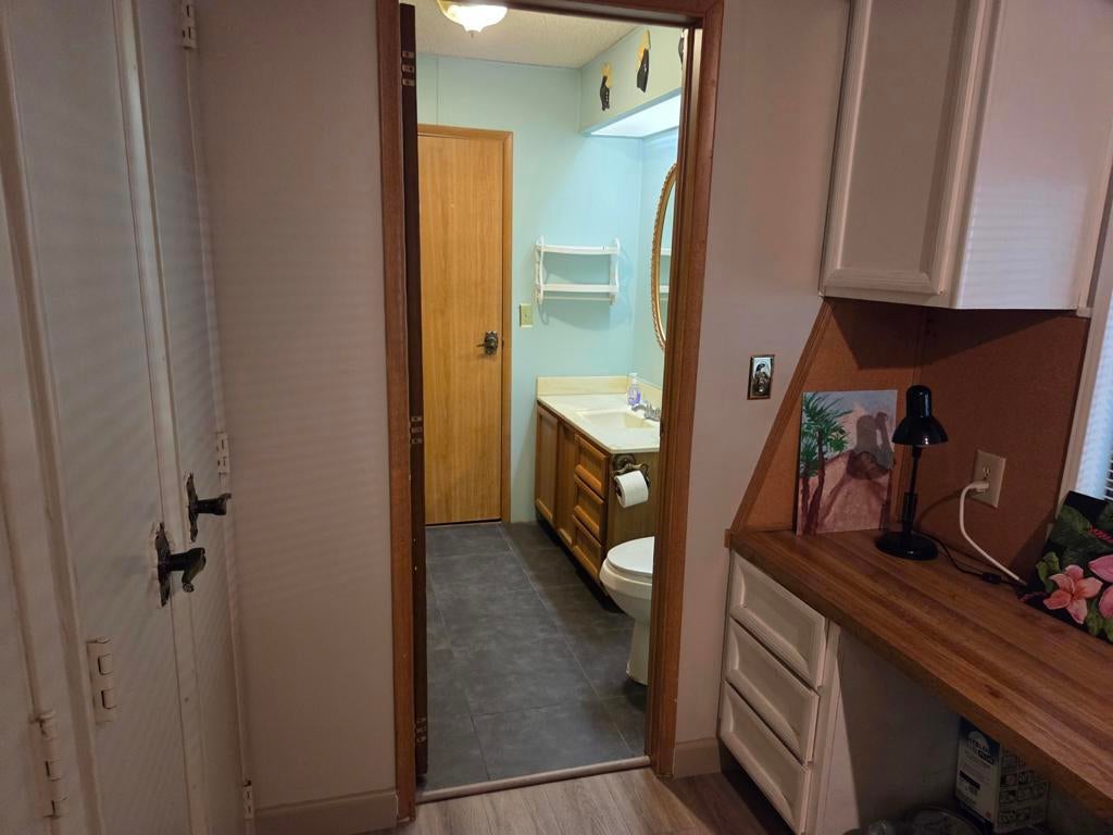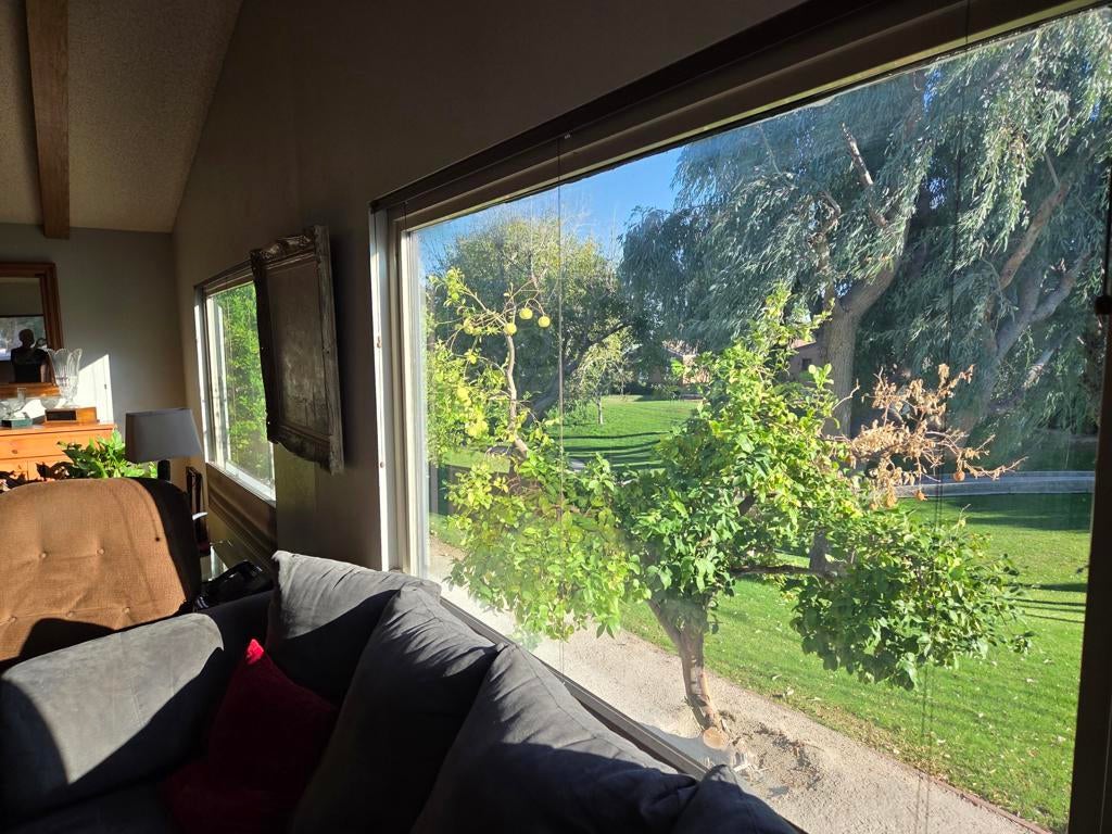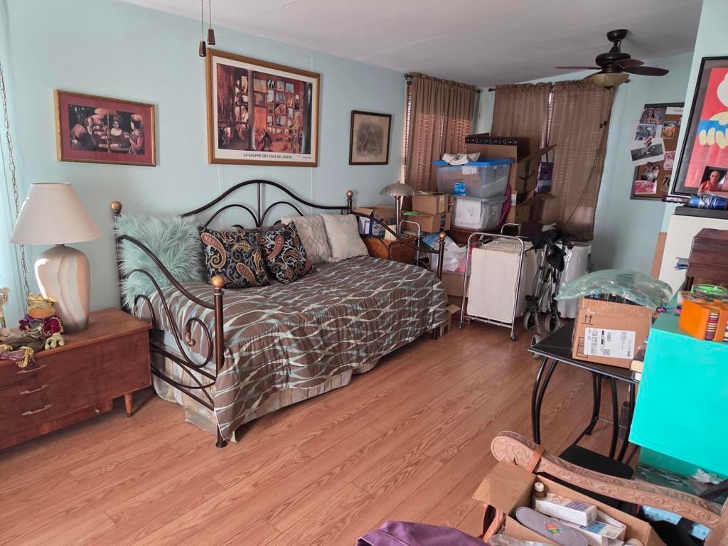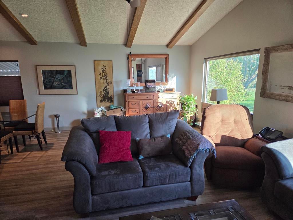 Located in 'The Gem Of The Desert', Vista Montana, a 55+ manufactured home community in Desert Hot Springs, #101 is a 1986 manufactured 2 bed, 1 3/4 bath home by Skyline with 1440 sq. ft. This home is sited in arguably the most desirable location in Vista Montana, affording beautiful mountain views from its spacious west-facing front deck as well as sweeping views into the community greenbelt that fronts onto the south side of the home. From the front deck one enters into the living room notable for the two south-facing picture windows which both flood the home with light and reveal the lush beauty of the greenbelt. Opposite these windows is the generous and lovely dining area; adjacent is the roomy, fully-equipped kitchen with gas cooktop, double-oven, dishwasher and ample storage. Down the hallway, to the right, is the large laundry room with full-size W / D, built-in writing desk and ample closet / pantry storage. The 3/4 guest bathroom beyond connects to the home's guest bedroom with large reach-in closet. Down the hallway to the left is the primary bedroom with large ensuite full bath with double vanities; the primary bedroom also features a large walk-in closet. A screen divider provides access from the primary bedroom into the bonus room of the home, though it is not included in the overall living space of the residence. This appealing residence has central HVAC. Tandem parking is under the carport awning on the east side of the home; there is a large shed on the premises as well. Monthly HOA dues for all homeowners within Vista Montana is $300.00 per month. This home has a recorded 433A. The home is sold fully furnished except for the contents of the guest bedroom and items personal to the seller. All aspects of ownership in this community must be verified by the buyer.