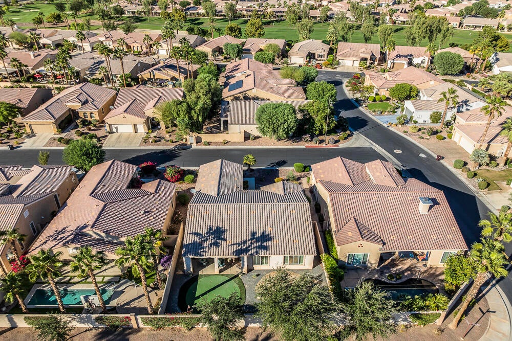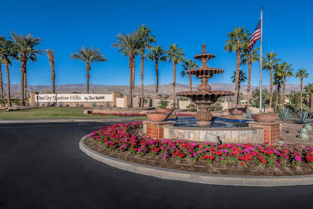 Welcome to this beautifully maintained and very popular Madera model in the highly sought-after 55+ community of Sun City Shadow Hills. Great price for one of the larger models, this 2-bedroom, 2-bath home also features a den perfect as a potential office or flex space. The expansive open-concept floor plan is light filled and boasts spacious living areas with high ceilings and Travertine flooring throughout. The well-appointed kitchen with large island is a cook's dream with granite countertops and stainless appliances plus a counter bar and breakfast area. The primary suite is a relaxing retreat with an en-suite bathroom featuring a soaking tub and walk in shower plus a generous walk-in closet. The guest bedroom is well separated for privacy and with adjacent bathroom for convenience. Step outside to a serene backyard oasis with breathtaking mountain views, a putting green and space for a private pool/spa or other use... so many options for outdoor dining, relaxing or entertaining. Ideally located near the Montecito Clubhouse, experience resort-style living with access to golf, pools, fitness centers, and an abundance of social activities in this vibrant community. SELLER WILL PAY 6 MONTHS HOA DUES! Don't miss out on this exceptional home--schedule your showing today!