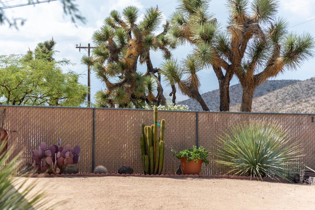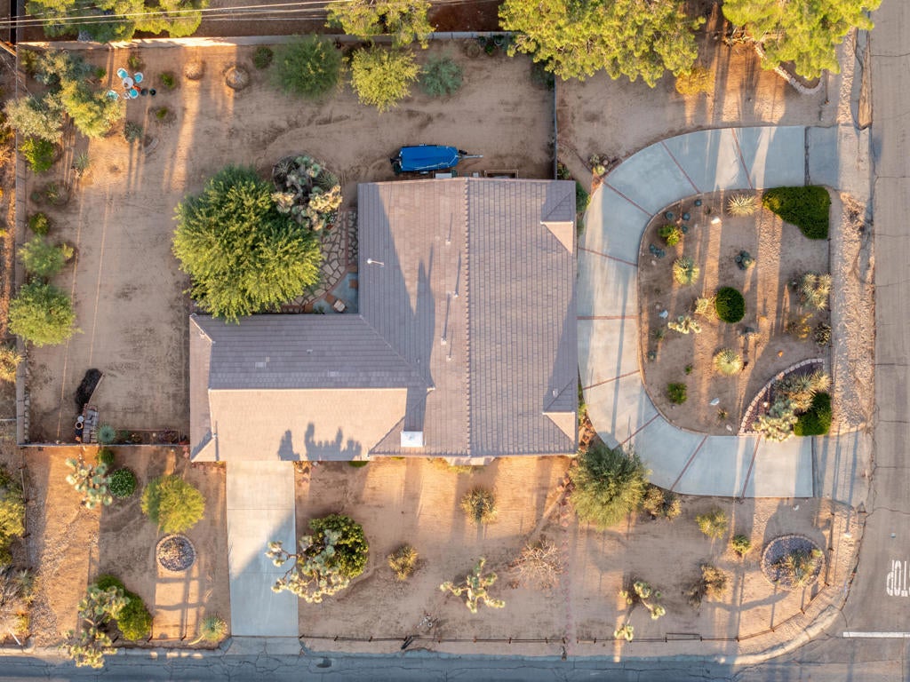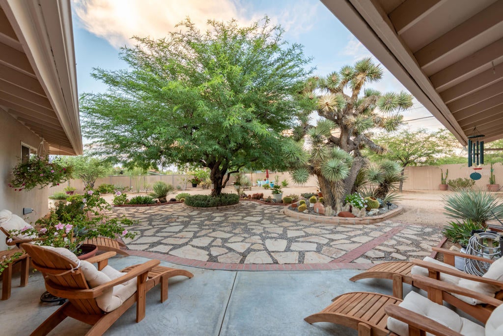 Well maintained would be an understatement - this beautiful corner-lot home has been meticulously curated and thoughtfully upgraded, offering an astonishing 2,478 sq. ft. of open-concept living space with 3 bedrooms and 2 bathrooms. Over the years, the property has seen numerous upgrades including a new roof, Milgard windows, furnace, AC condenser, carpets, interior/exterior paint, fireplace, plantation shutters, and a fully permitted enclosed patio. Every detail reflects pride of ownership and a commitment to quality. The floor plan offers seamless indoor/outdoor flow. A spacious great room leads to the enclosed patio, while the kitchen features granite countertops, stainless steel appliances, bar seating, and abundant cabinetry. Additional highlights include a dedicated dining room, living room, laundry room, and flexible bedrooms - one currently designed as a home office. The backyard evokes desert sanctuary vibes and pure relaxation, with sandstone pavers weaving through a beautiful desert garden anchored by a striking Mesquite tree and a mature Joshua Tree as the focal points. Multiple patios, RV parking with septic and electrical hookups, a 2-car garage, and extensive driveway space provide both connivence and functionality. Homes with this much space and in this pristine of condition at this price don't come around often. Come see for yourself why the photos just can't capture how special it really is!