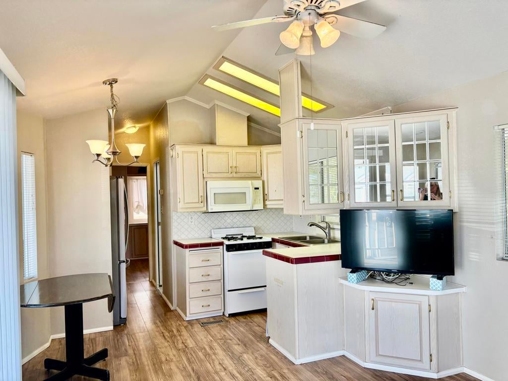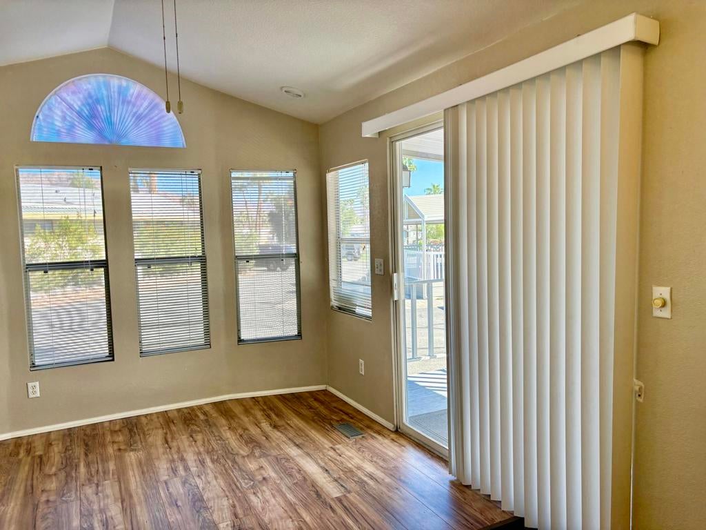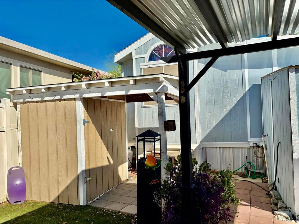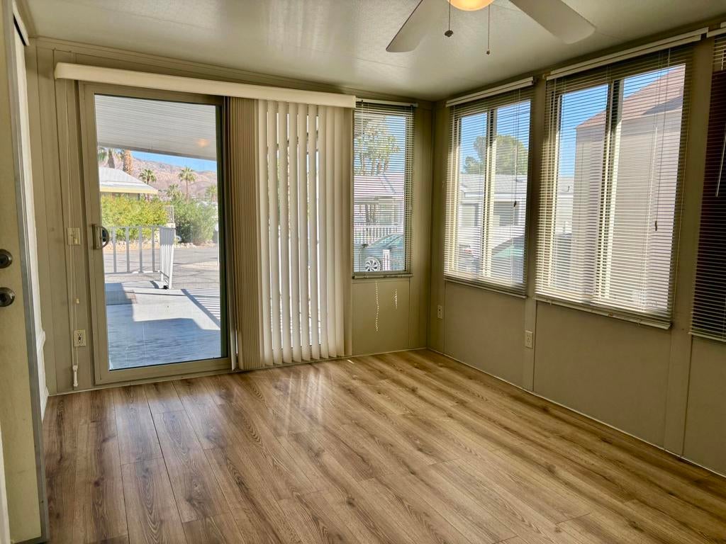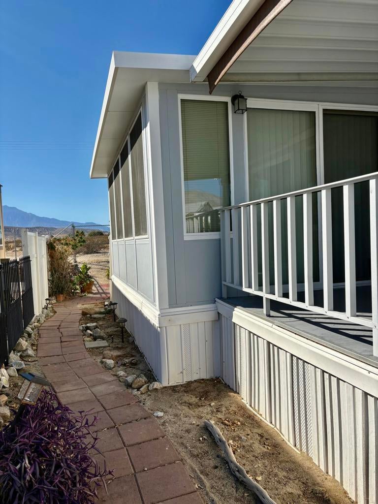 Welcome to the hidden Gem of Sky Valley Resort! This Park Model is a 2 bedroom, 1 bath. Super cute & clean! Nice spacious Kitchen with lots of cabinets for storage. The Bathroom has a walk in shower. Nice cozy Bedroom with mirrored closet doors. There;s a California Room that can be used as a 2nd bedroom/den/ or office.This property back up to the beautiful desert & has spectacular mountain views.The back Patio has a BBQ, and 2 sheds for extra storage. One of the sheds has washer & dryer hookups.Sky Valley Resort Offers many Great amenities including 13 Hot Mineral Pools & Spa's, Fitness Center, Sauna, Tennis Courts, Pickle Ball Courts, Cafe, Chapel, & a Doggie Park. As a resident you can Golf at the Sister Park, Caliente Springs, which is only a couple miles down the road. This Resort is a Gated, Family Park. The Property has Space Rent and is not on leased or fee land. Short Term Rentals are allowed with restrictions.This Property is DMV Registered and doesn't have Property Taxes. You can get Financing on Park Models. Come out and Explore the Desert Lifestyle! Palm Springs is just a short 15-20 minute drive.