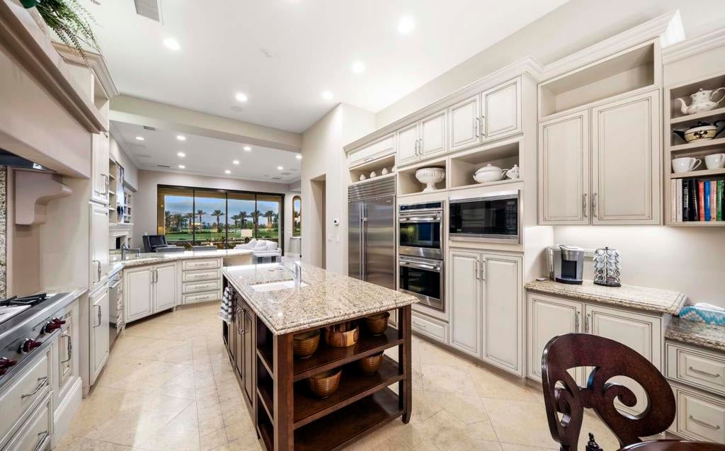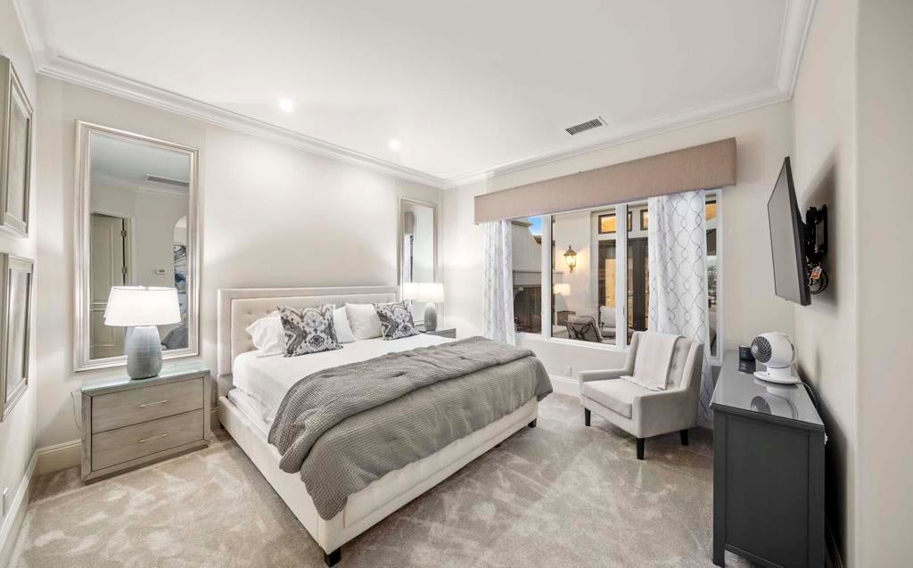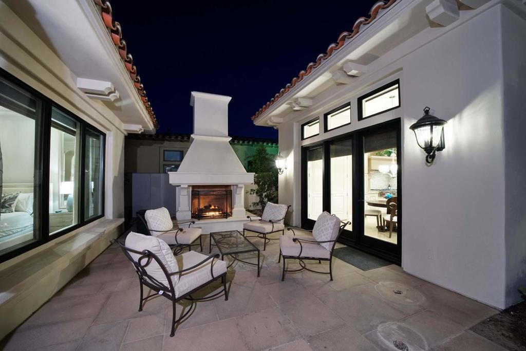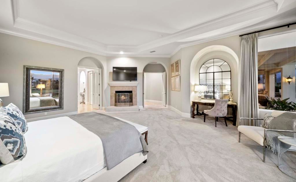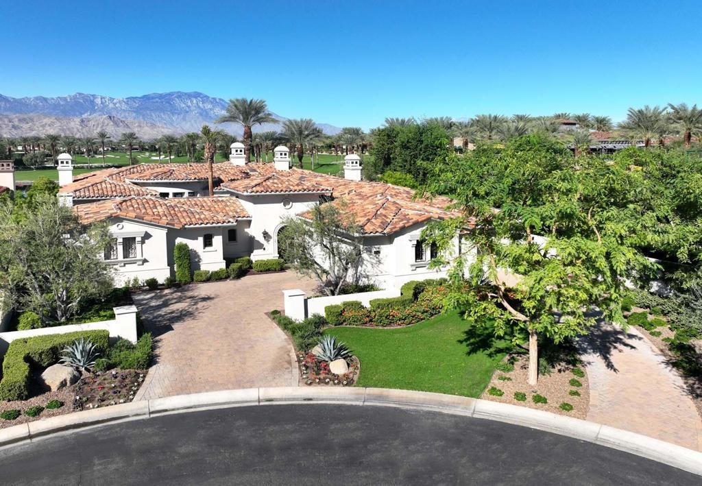 This beautifully upgraded Italianate-style Plan 921 home at Toscana Country Club is ideally positioned on the 9th hole of the Jack Nicklaus Signature South Course with a desirable west-facing orientation. Enjoy panoramic sunset views over the 9th, 10th, and 18th fairways, the sparkling lake, and the dramatic San Jacinto Mountains--all visible from the main living areas, patios, and pool.Recently updated inside and out, this home offers a blend of refined finishes and modern convenience, beginning with freshly painted exterior and interior, new carpeting and pads in all bedrooms and casita, and stylish, upgraded furnishings. Thoughtfully placed remote-controlled roller shades provide comfort and privacy in the kitchen, primary bedroom, and outdoor dining areas.The chef's kitchen includes granite countertops, high-end SubZero Wolf appliances, and newly installed cabinet pull-outs for added functionality. The adjacent butler's pantry features a large built-in wine cabinet, perfect for entertaining. The powder room and primary bath have both been fully remodeled, with new cabinetry, countertops, sinks, lighting, mirrors, and hardware that elevate the overall aesthetic.The spacious primary suite includes a sitting area, fireplace, private patio access, and an updated en-suite bath with dual vanities and expansive His & Hers closets. Two additional bedrooms inside the main home--one currently used as an office--offer flexibility, while the detached guest house (casita) includes its own living space, kitchenette, walk-in closet, and private patio, all with updated flooring and furniture.Outdoor enhancements include expanded paver walkways, redesigned professional landscaping, new lighting, and new plants on the golf course side patio. Whether entertaining or relaxing, enjoy multiple shaded areas, a spa, courtyard fountain, and a recently upgraded pool system with new motors and pumps.Just a short walk to all club amenities, this home also offers front-row seats to Toscana's spectacular firework displays over the lake--a unique perk of its premium location.