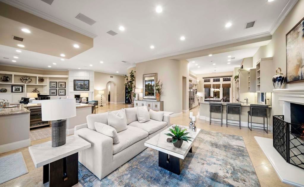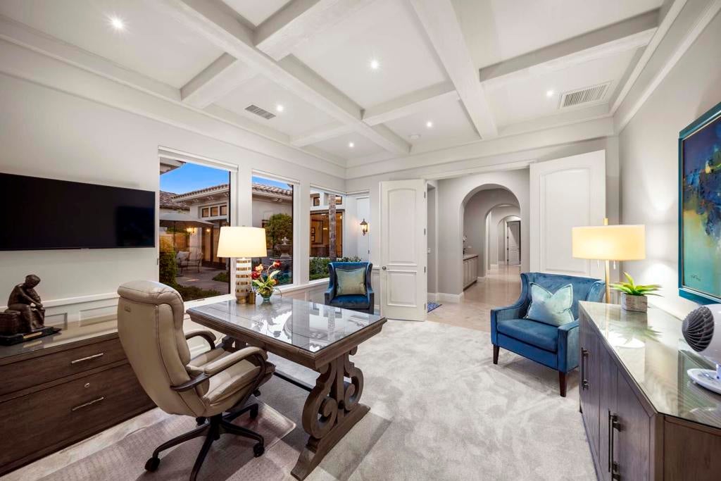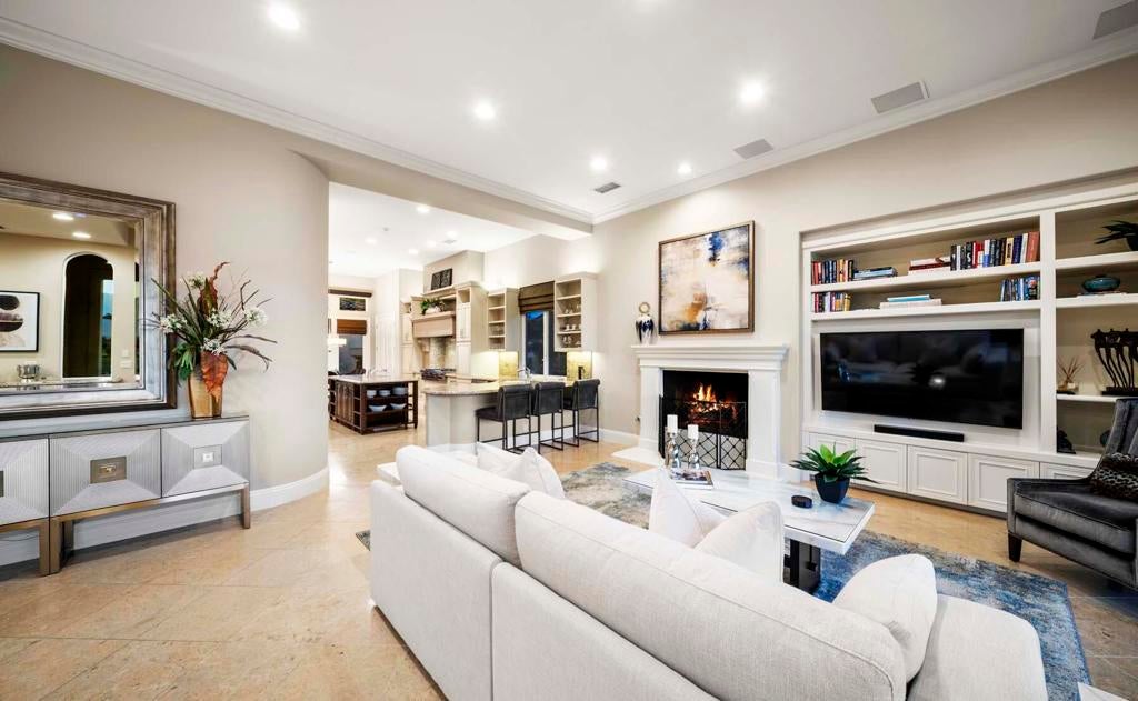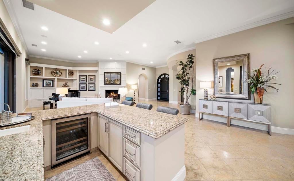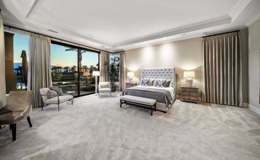 This beautifully upgraded Italianate-style Plan 921 home at Toscana Country Club is ideally positioned on the 9th hole of the Jack Nicklaus Signature South Course with a desirable west-facing orientation. Enjoy panoramic sunset views over the 9th, 10th, and 18th fairways, the sparkling lake, and the dramatic San Jacinto Mountains--all visible from the main living areas, patios, and pool.Recently updated inside and out, this home offers a blend of refined finishes and modern convenience, beginning with freshly painted exterior and interior, new carpeting and pads in all bedrooms and casita, and stylish, upgraded furnishings. Thoughtfully placed remote-controlled roller shades provide comfort and privacy in the kitchen, primary bedroom, and outdoor dining areas.The chef's kitchen includes granite countertops, high-end SubZero Wolf appliances, and newly installed cabinet pull-outs for added functionality. The adjacent butler's pantry features a large built-in wine cabinet, perfect for entertaining. The powder room and primary bath have both been fully remodeled, with new cabinetry, countertops, sinks, lighting, mirrors, and hardware that elevate the overall aesthetic.The spacious primary suite includes a sitting area, fireplace, private patio access, and an updated en-suite bath with dual vanities and expansive His & Hers closets. Two additional bedrooms inside the main home--one currently used as an office--offer flexibility, while the detached guest house (casita) includes its own living space, kitchenette, walk-in closet, and private patio, all with updated flooring and furniture.Outdoor enhancements include expanded paver walkways, redesigned professional landscaping, new lighting, and new plants on the golf course side patio. Whether entertaining or relaxing, enjoy multiple shaded areas, a spa, courtyard fountain, and a recently upgraded pool system with new motors and pumps.Just a short walk to all club amenities, this home also offers front-row seats to Toscana's spectacular firework displays over the lake--a unique perk of its premium location.