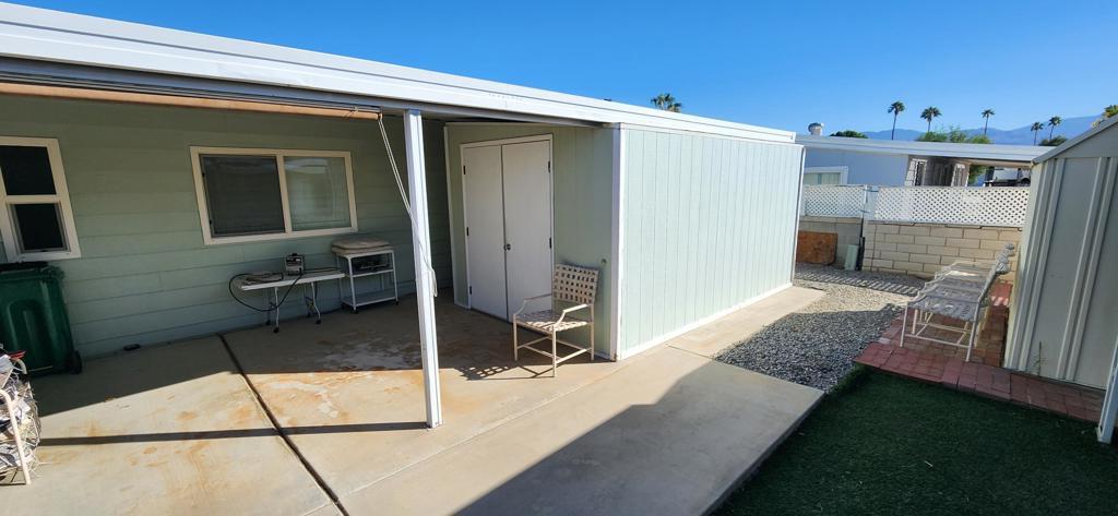 This move-in ready home comes fully furnished and is immaculately kept. Expansive dual pane windows let in plenty of natural light throughout each room. The kitchen, designed for convenience, features lots of counter space and ample cabinetry for storage. The spacious primary bedroom includes an en-suite bath with a walk-in shower. Other highlights are shutters, ceiling fans, and laminate flooring. Guests will appreciate the spacious guest bedroom and attached guest bath. Whether you're seeking a primary residence or a vacation getaway, this property provides the perfect opportunity to embrace the desert lifestyle. Located in Palm Desert Greens Country Club, a premier 55+ community where you Own the LAND, and the low $400 monthly HOA fee covers 24/7 guard-gated security, all amenities, cable TV, trash service, FREE GOLF, and much more. An exceptional value and still on tags for potential tax savings opportunity, this home stands out as a smart choice. For details or to arrange a private tour, contact us and discover why this property could be your perfect new home.