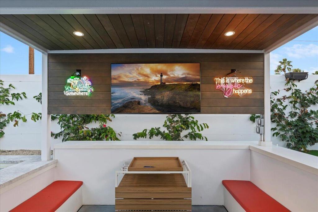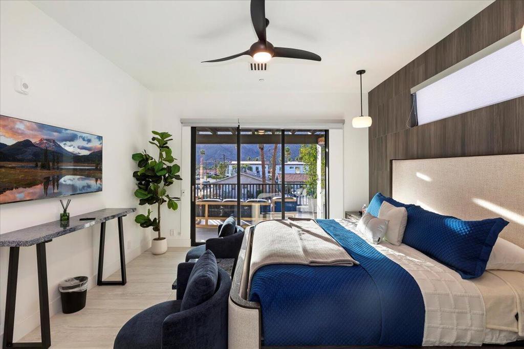 Escape to this modern desert oasis featuring 4 ensuite bedrooms including dual masters, a resort-style pool with swim-up bar, sunken firepit lounge with TV, BBQ area, and putting green. Enjoy high ceilings, quartz finishes, and seamless indoor-outdoor living with mountain views. Perfect for families or groups seeking luxury, relaxation, and entertainment in a private gated retreat.