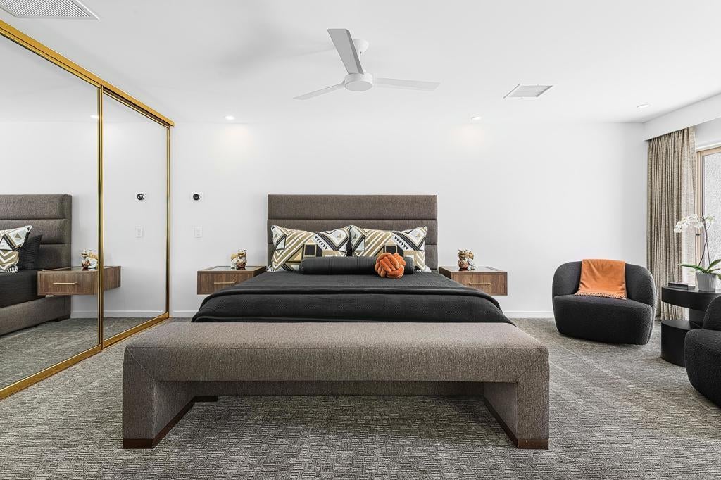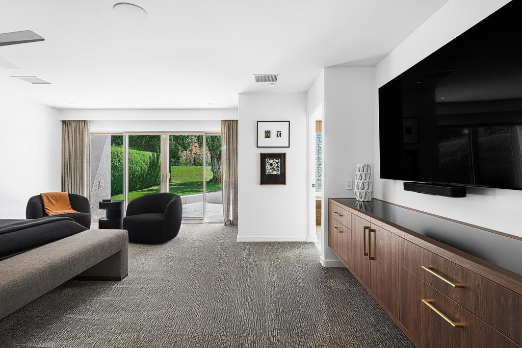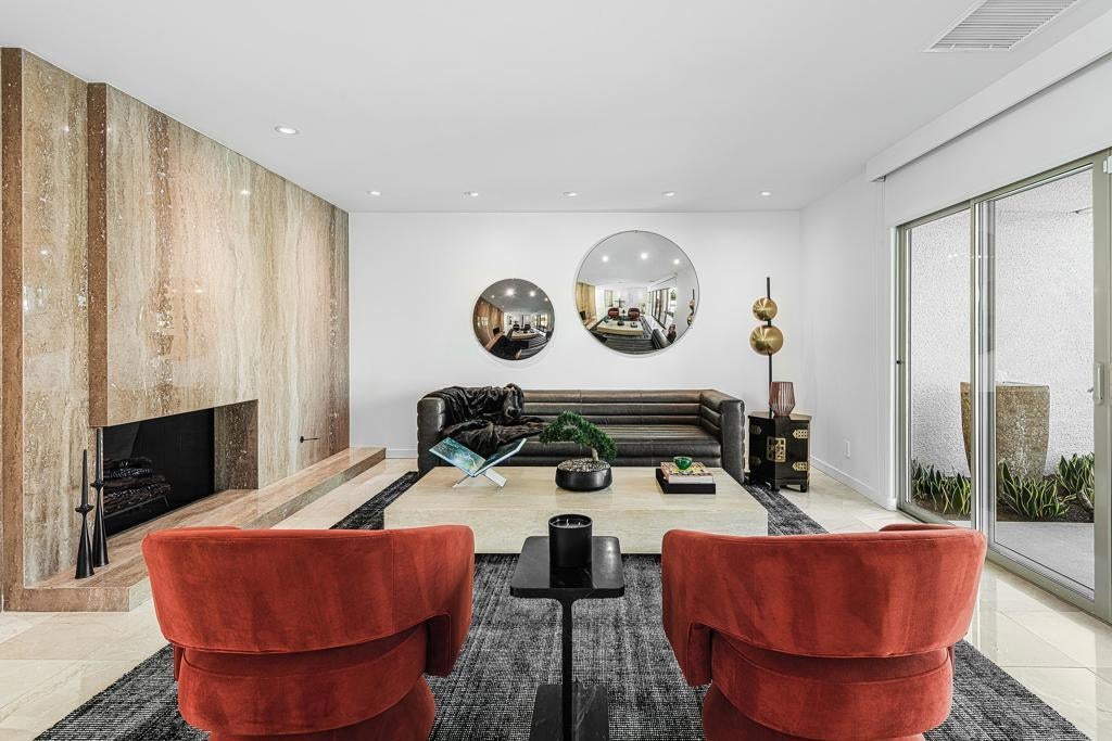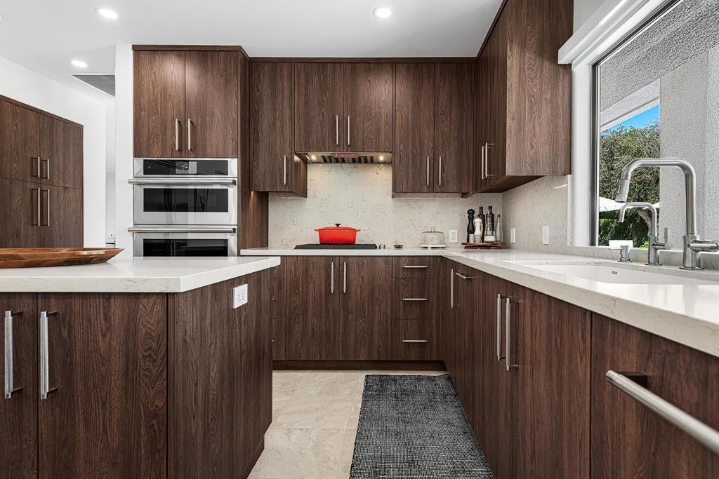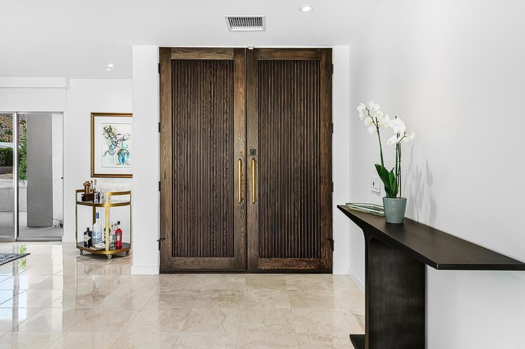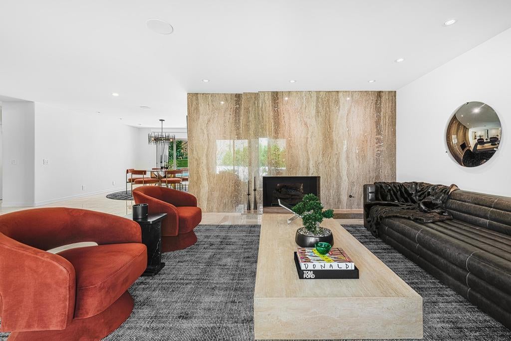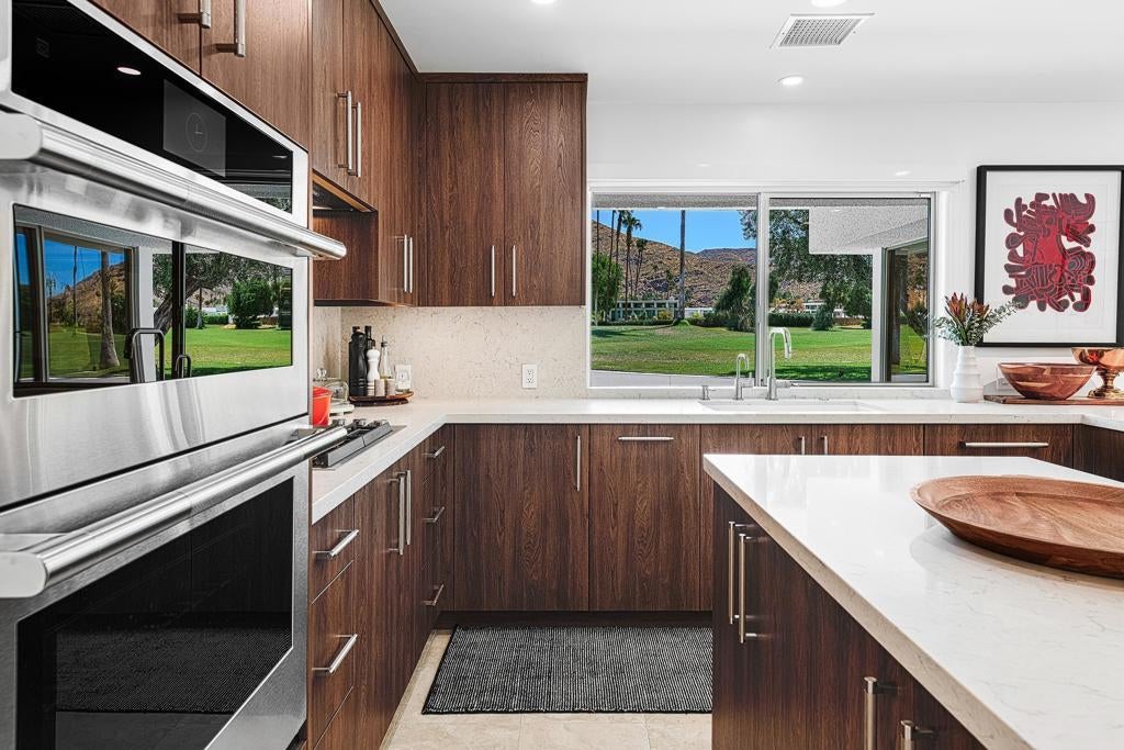 Set against the dramatic backdrop of the Santa Rosa Mountains, this striking white modern residence offers serene golf course vistas and an atmosphere of tranquility within a beautifully maintained community.From the moment you arrive, the home's captivating curb appeal and lush, sculpted landscaping create an unforgettable first impression. Iconic double entry doors open to an interior that masterfully blends sleek modern design with effortless livability. The inviting living room, anchored by a travertine fireplace, sets the stage for elegant entertaining or quiet evenings by the fire.The formal dining room frames picture-perfect views of the mountains, golf course, pool, and spa an exquisite setting for dinner parties and gatherings. Adjacent, the chef's kitchen is a culinary dream, appointed with premium appliances, a center prep island, quartz countertops, and a casual dining bar ideal for morning coffee or relaxed meals. Flowing seamlessly from the kitchen, the spacious family room offers the perfect retreat after sun-drenched days spent lounging by the pool or soaking in the spa amidst the resort-style backyard.Perfectly situated near world-class dining, shopping, golf, and hiking, this residence places you at the very heart of the Palm Springs lifestyle. After a day of exploration, unwind in the luxurious primary suite where every detail has been thoughtfully curated for comfort and style. Two beautifully appointed guest rooms ensure your visitors feel equally at home.An attached garage adds everyday convenience, completing this impeccable desert retreat a harmonious blend of luxury, sophistication, and ease. Once here, you may never want to leave.