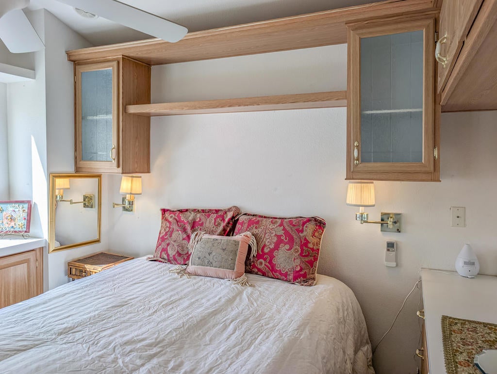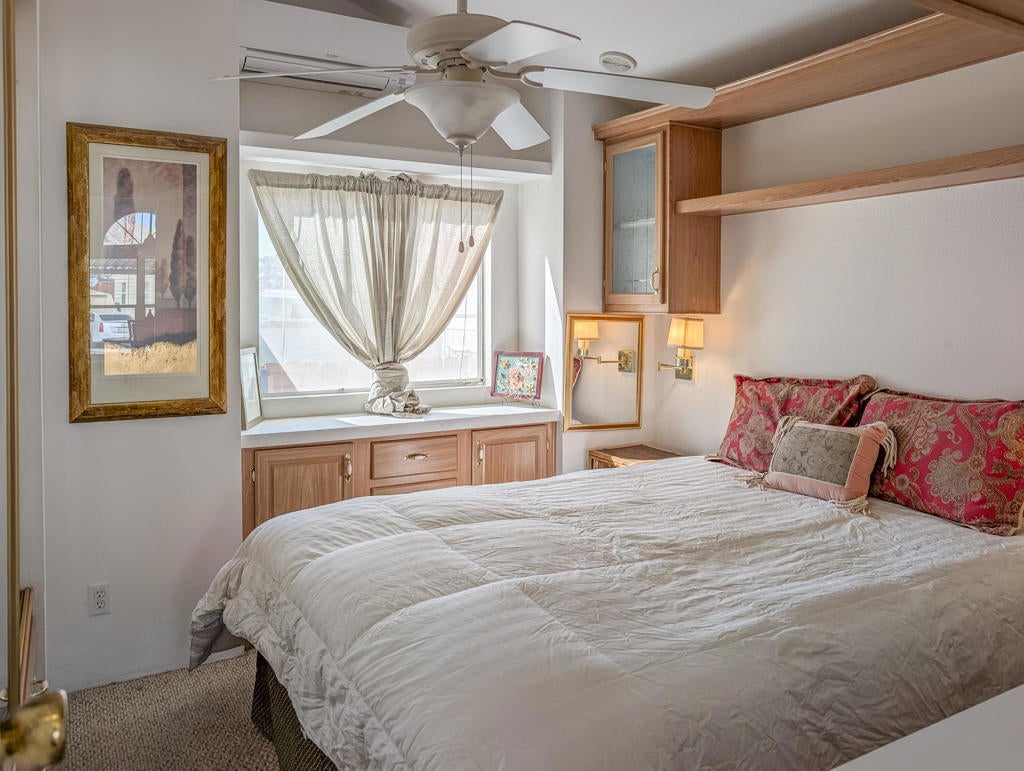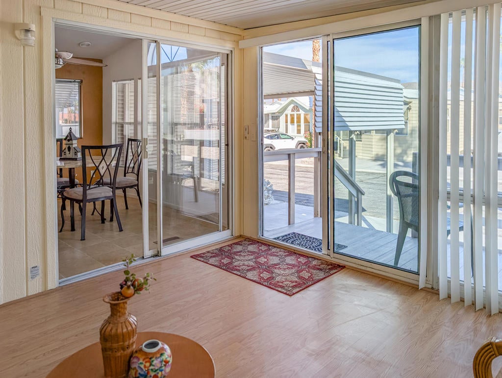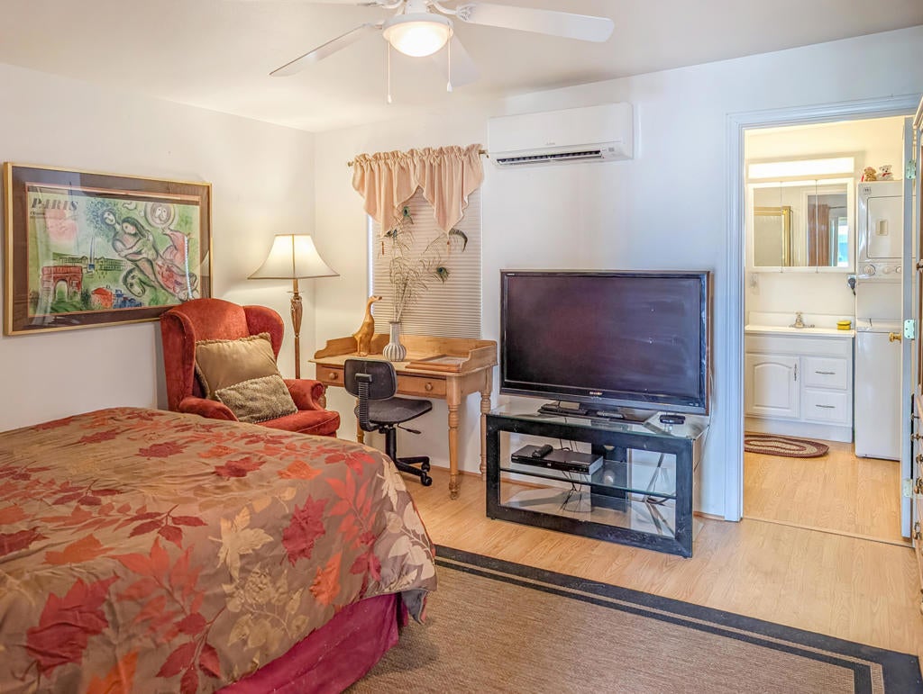 Fantastic 2-bedroom, 2-bathroom home, situated close to the clubhouse and central to the activities and all amenities here at Caliente Springs a prestigious 55+ Resort, boasting a 9-hole golf course, 8-pickleball courts, mineral hot spring pool and spas, tennis courts and a vibrant active community filled with social events. The home features and abundance of privacy and tranquility and a perfect getaway with ~800 sq. ft. of well-appointed spacious living area, a stick-built addition, washer/dryer, 3 ductless mini-split systems, covered, paved parking, electric roll door golf cart garage and storage shed, there is great space in the back for a lovely garden and views from the front of this wonderful space. Come make new friends and enjoy this magnificent resort. Lot is not owned, space rent is $673.