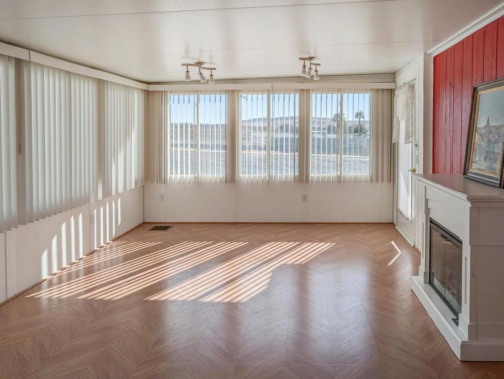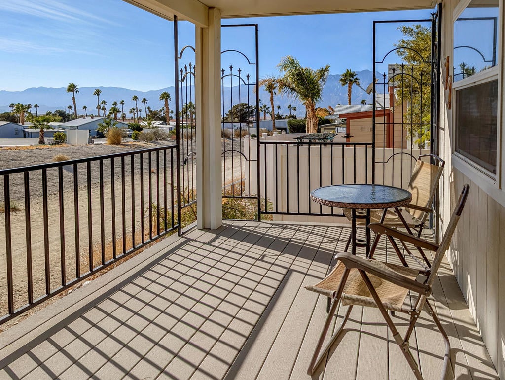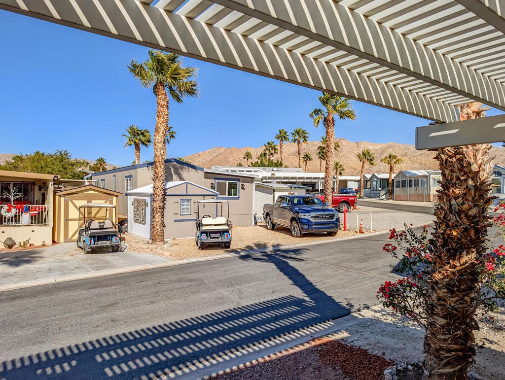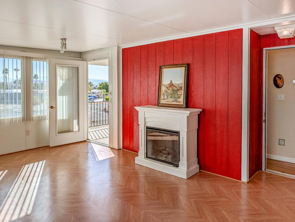 Delightful and well maintained 2-bedroom, 2-bathroom 2006 Laurel crest Park Model ~670 sq. ft. Great features in this bright and cheery home include washer/dryer, new hardwood flooring throughout, new refrigerator, new fireplace in the functional California room with vertical dual opening double pane windows for efficiency, the additional bathroom is new and complete with nice touches. Outside enjoy 2 covered and private decks perfect for entertaining, or having a barbeque, with sweeping views of the local desert hills and mountains, sports courts and driving range. Centrally located in the park you will enjoy the many amenities such as mineral hot spring pool and spas, state of the art fitness center, 9-hole golf course, 8-pickleball courts, tennis courts, laundry facilities, library, and fun organized community events. Come, make this your new home or getaway destination and enjoy this amazing place nestled in the desert at the premiere 55+ Caliente Springs Resort. Lot is not owned; space rent is $707. Easy lender financing (OAC).