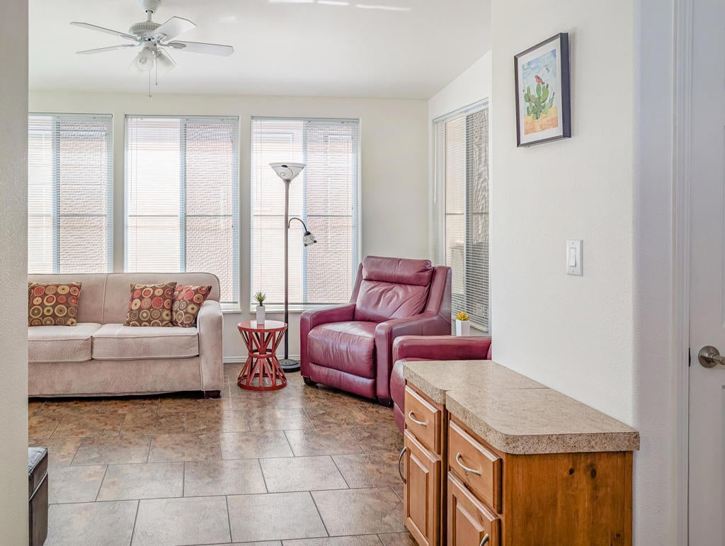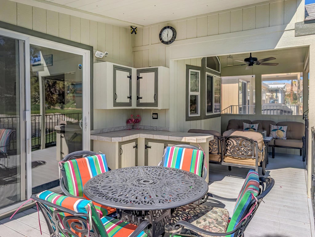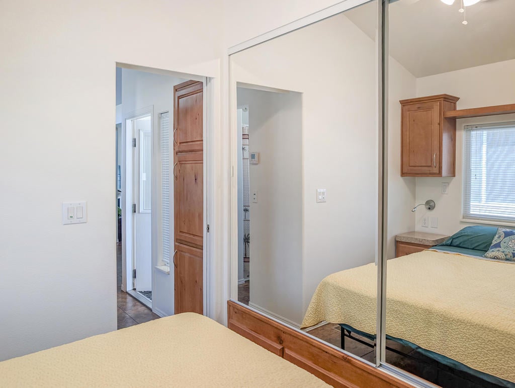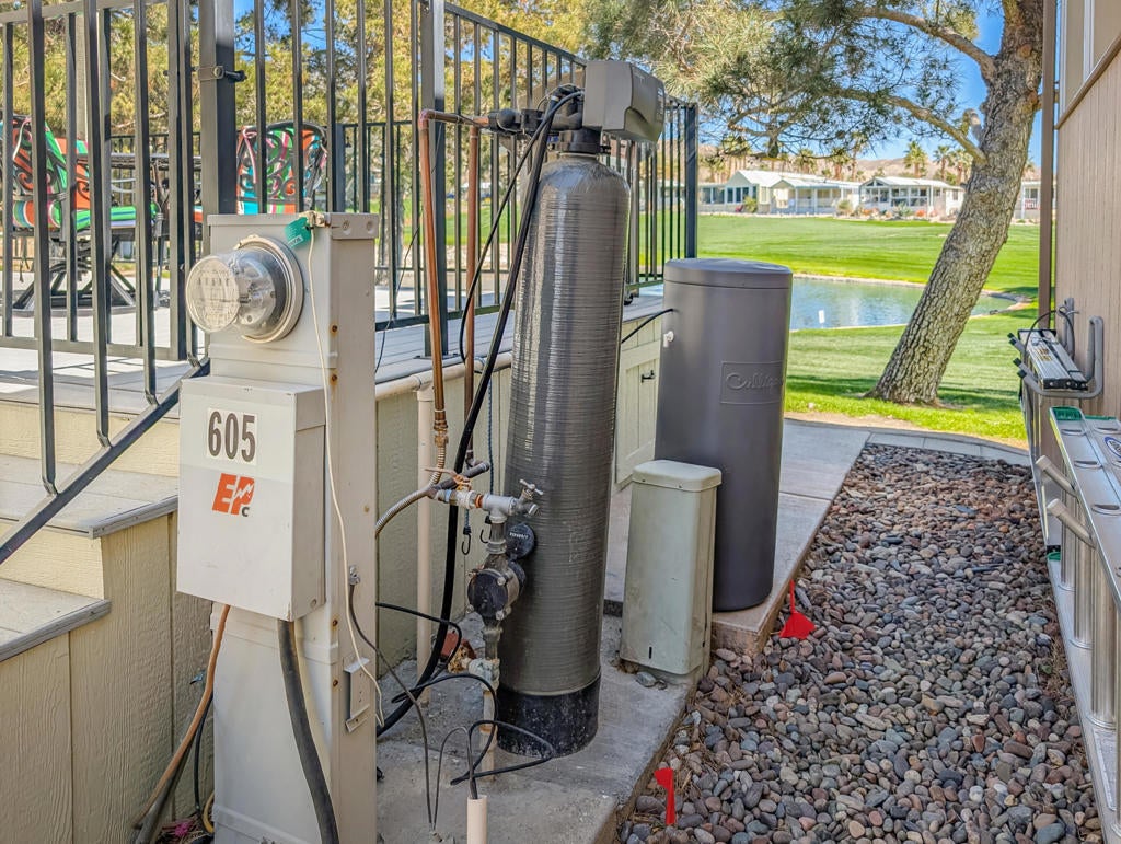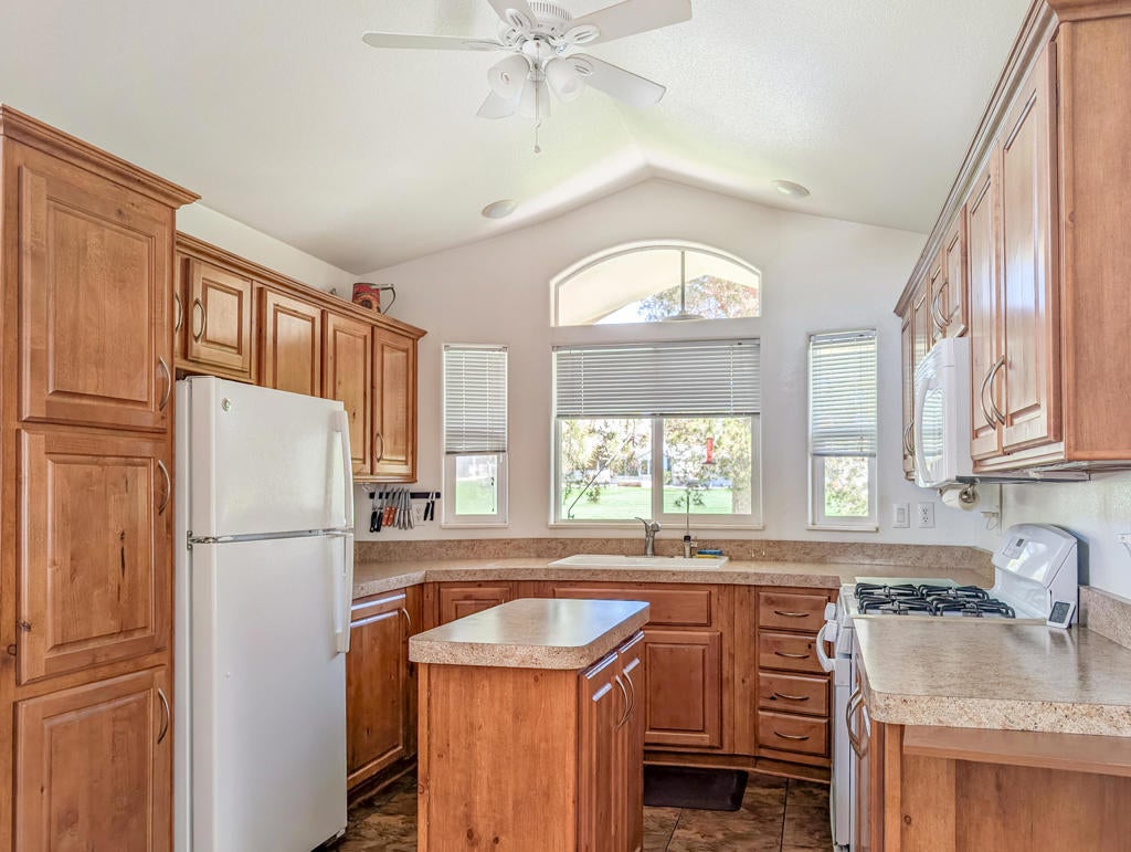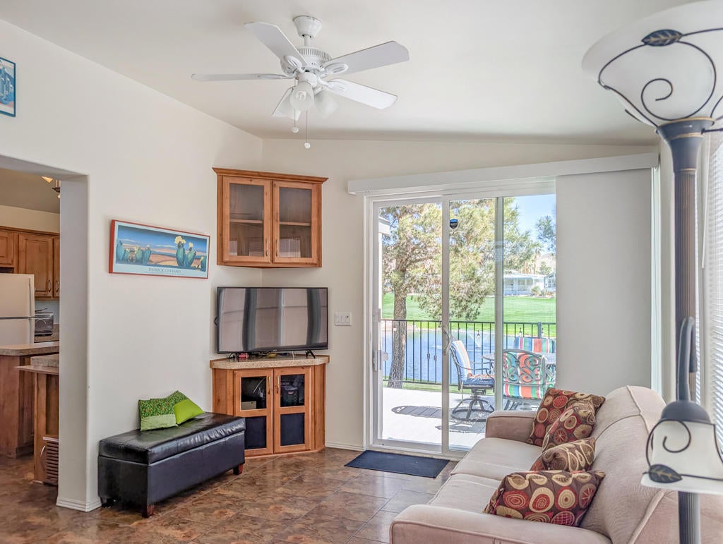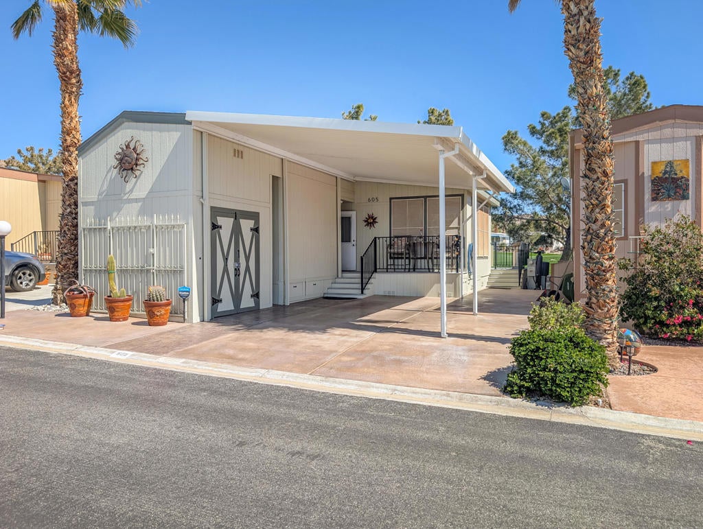 Experience your dreams coming true with this impeccable showstopper! Presenting a 2016 Cavco Park Model with approximately 600 sq. ft., featuring 1 bedroom, 1 bathroom, a washer/dryer, and numerous stunning features such as high-volume ceilings for an open feel, modern cabinetry throughout, solid flooring and all the furnishings will stay with the home. Enjoy a large, covered carport and shed with a loft for an exuberant amount of storage or anything you reimagine. Breathtaking views of Mt. San Jacinto from the front covered porch. Step out back onto the windless, covered deck to admire the scenery of the highly sought-after 5th/6th hole of the golf course, along with the beautiful ponds and hills in the background! You'll never want to leave this tranquil and serene retreat. Caliente Springs is a premier 55+ luxury resort with amenities that make you feel like a VIP, including a mineral-fed hot spring pool and spas, a 9-hole golf course, water ball, water aerobics classes, yoga, 8 pickleball courts, tennis courts, and much more in this lively and active community. The lot is not owned; space rent is $950.