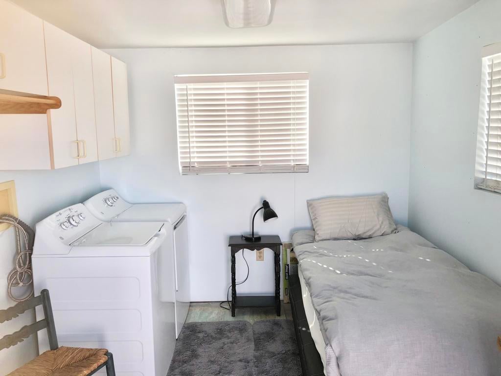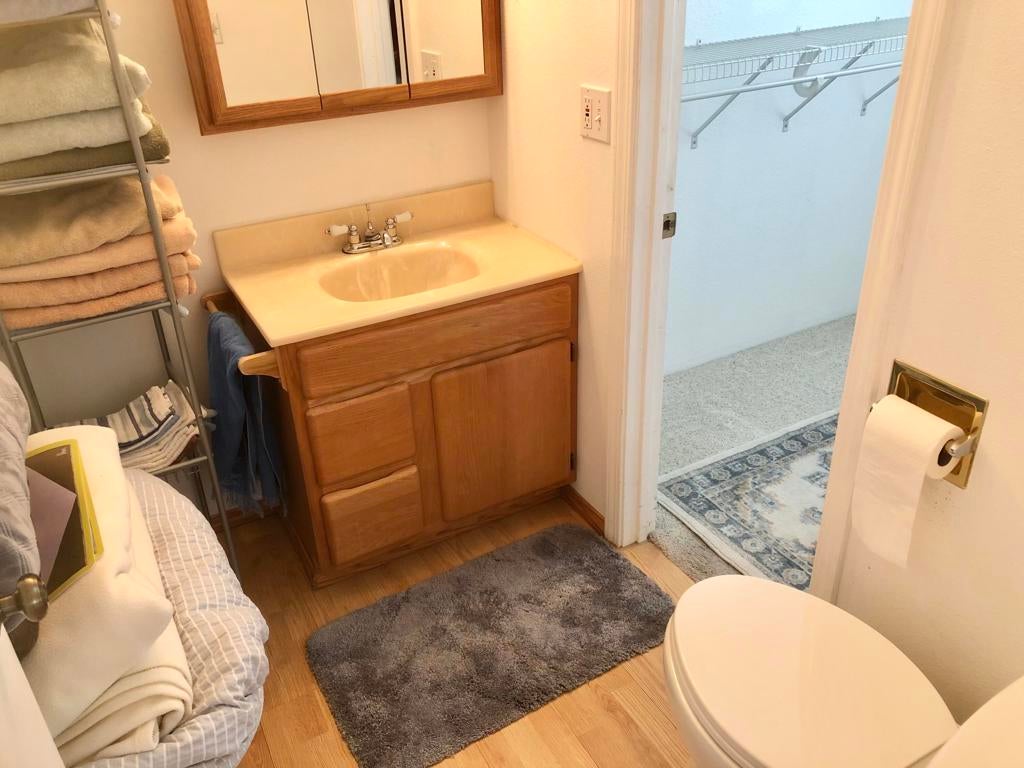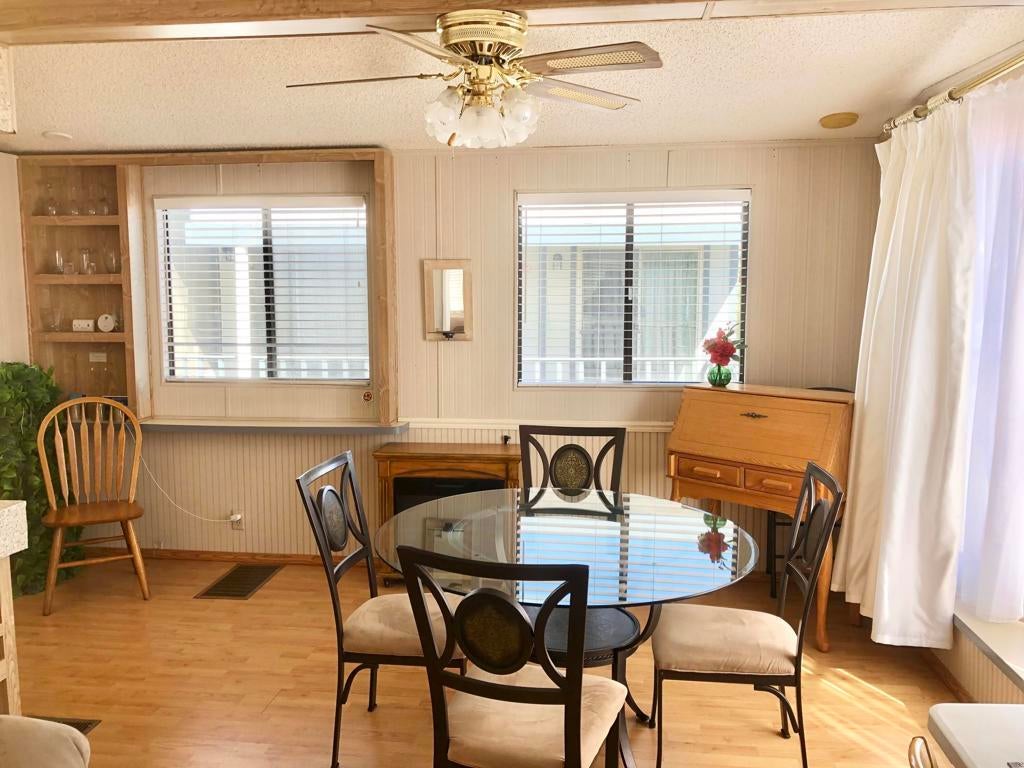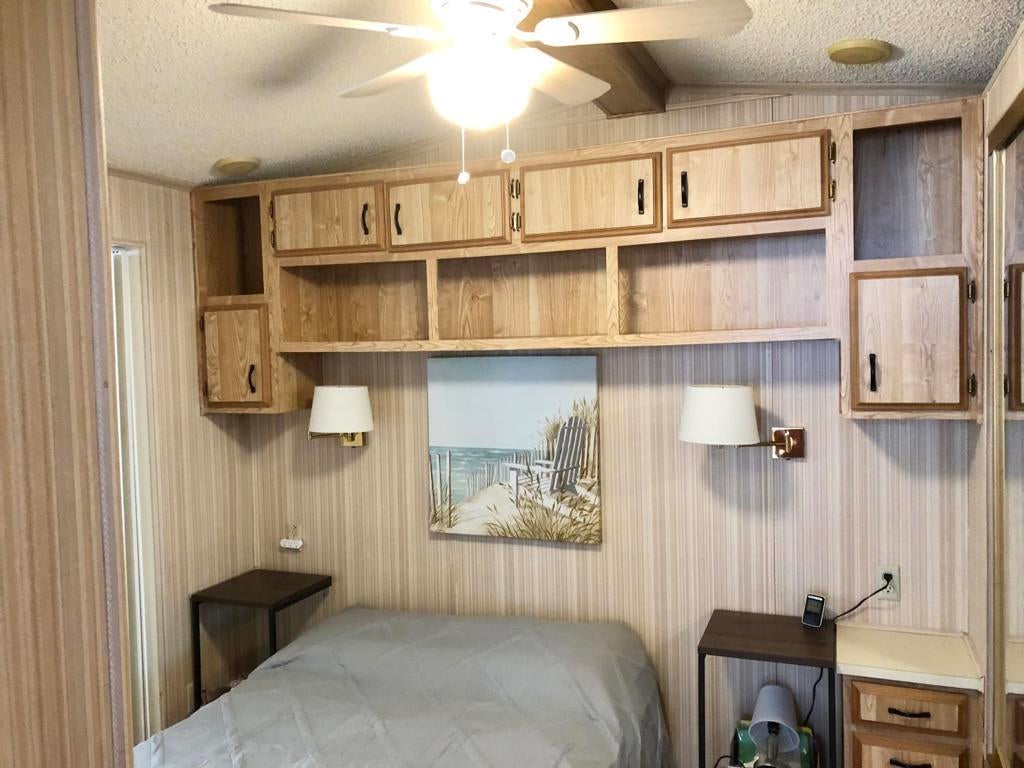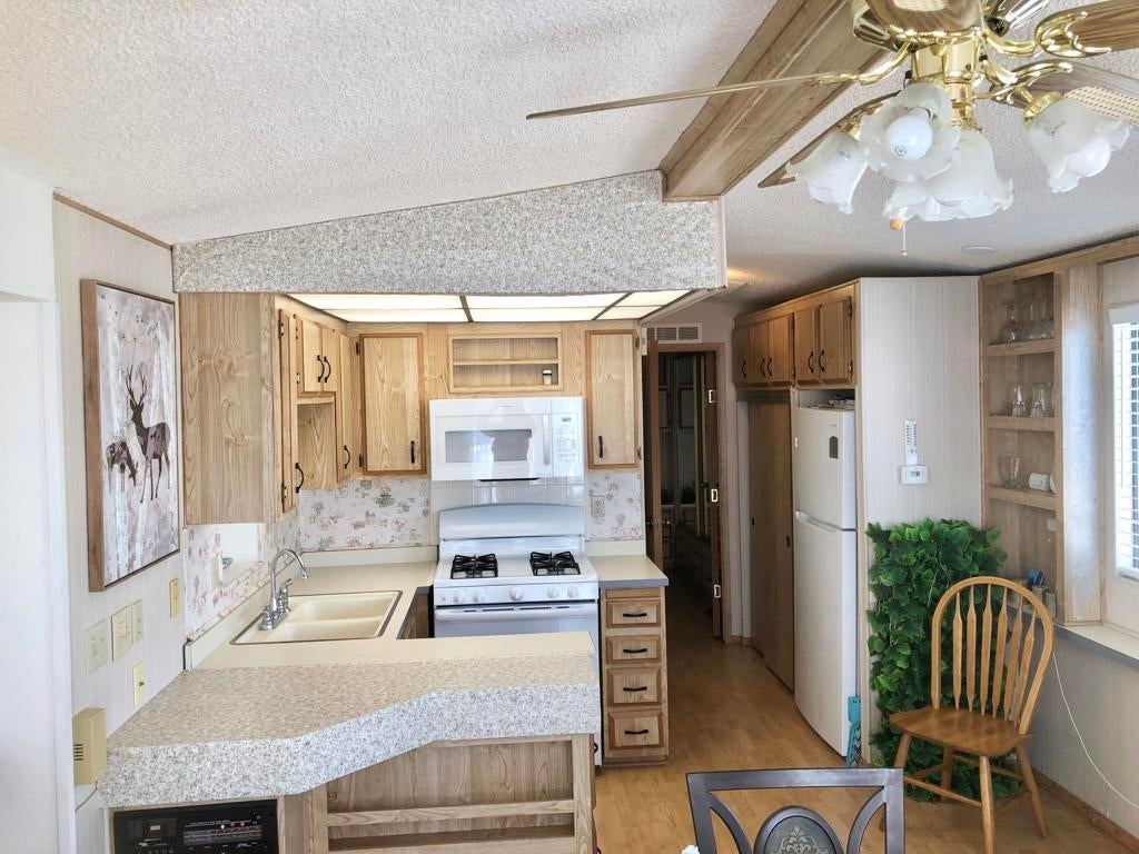 IMMACULATE park model with large room addition, divided between living room and second bedroom with half bath and large walk in closet. Full sized washer and dryer in finished shed with additional sleeping area. Peaceful front deck and you can hear the free concerts from the rear deck, facing the Wild West Wash walking trail, San Jacinto mountain and sunset. FENCED yard great for pets! TURN KEY, furnished, stocked with kitchenware and linent. Electric fireplace producing heat to keep you cozy on cold desert nights.ALL AGED gated community of Sky Valley Resort offers lots of amenities! 13 sparkling hot spring mineral pools, pickleball, walking trails, fitness center, library, cafe, community events and daily exercise classes.Call for a showing! 760-218-9974