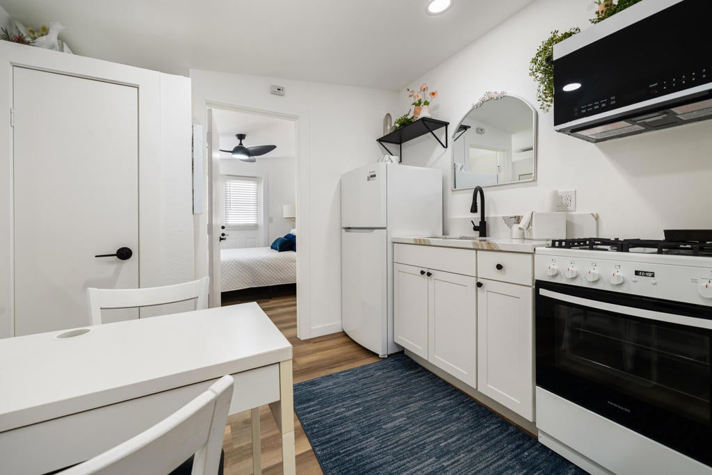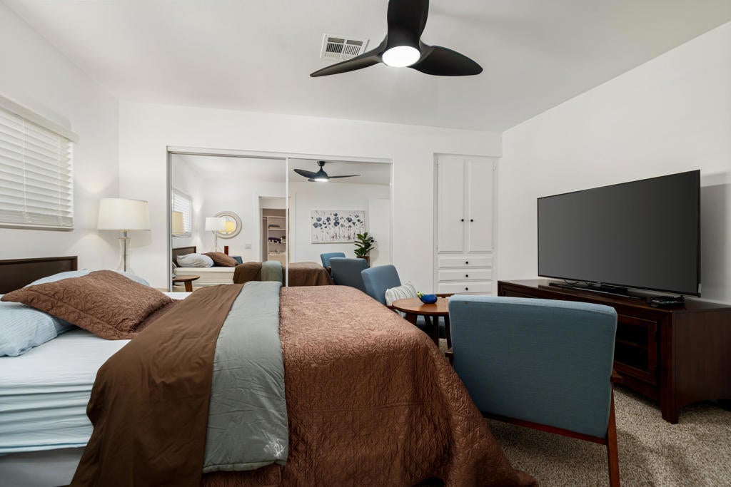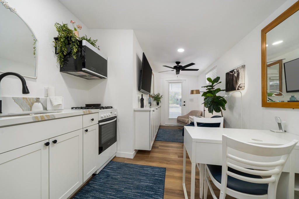 Welcome to 531 Paseo Perdido in Cathedral City. This updated custom home offers four bedrooms and three bathrooms, including a fully equipped attached casita that is ideal for multigenerational living, guest privacy, or rental income. The main home features three bedrooms and two bathrooms with an open, light-filled layout, comfortable living spaces, and a warm, modern feel. The attached one bedroom, one bathroom casita has its own parking, a private patio, dedicated storage, its own HVAC system, a full kitchen, and in-unit laundry, making it a true independent living space.This property blends style and function with ease. It is offered turn key furnished, sits on a private and low maintenance lot, and includes a bonus he or she shed for extra workspace or creative use. The home has been extensively upgraded throughout, including a gourmet kitchen with a chef's stove and quartz countertops, renovated bathrooms, updated modern lighting inside and out, new windows and new doors, new ceiling fans, new flooring, updated electrical and plumbing, and fresh streamlined landscaping.With a highly functional layout, strong income potential from the attached casita, and thoughtful upgrades throughout, 531 Paseo Perdido stands out as a beautiful and practical home in Cathedral City. This move in ready property offers exceptional value for buyers looking for a turnkey residence with flexibility and modern amenities.