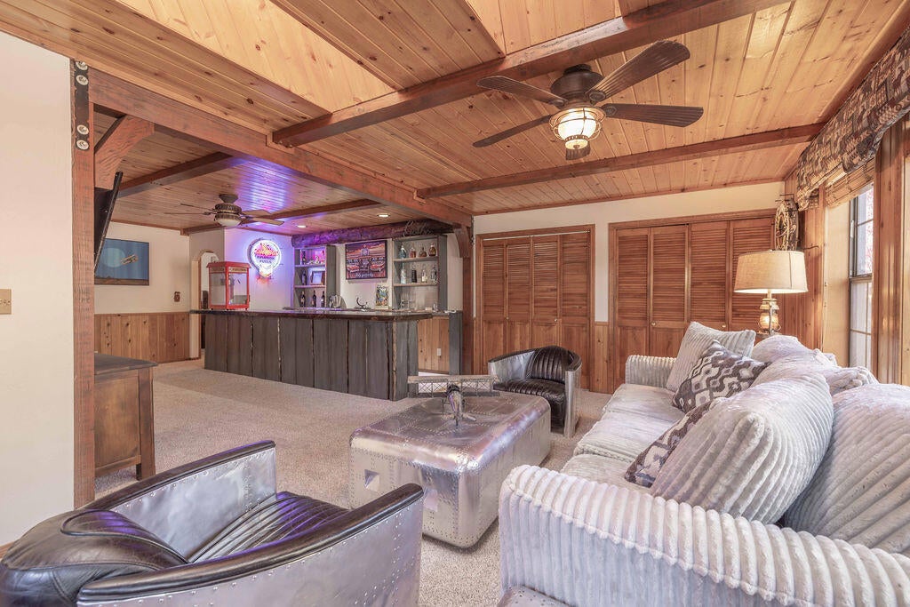 Beamed Ceilings, Separate/Formal Dining Room, Recessed Lighting, Bar, Primary Suite, Loft, Paneling/Wainscoting