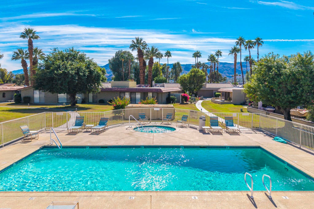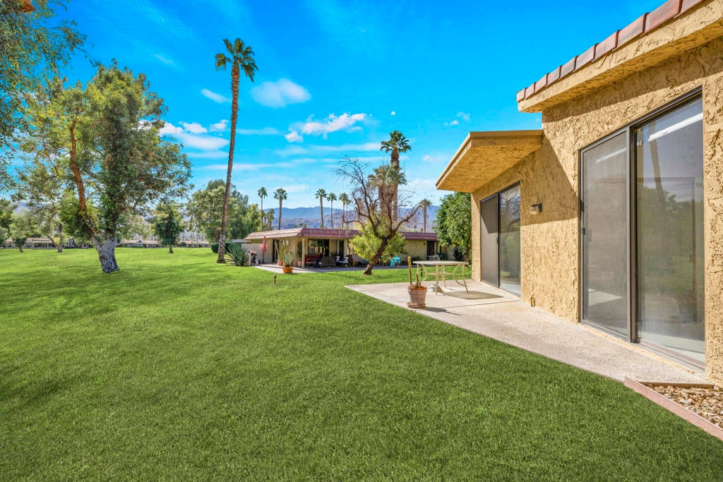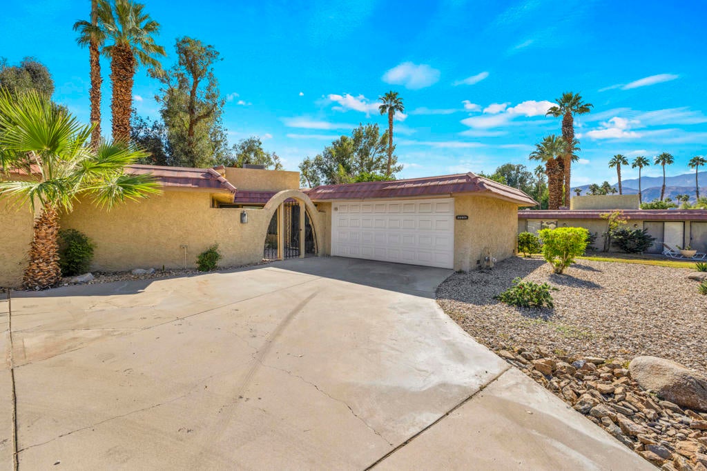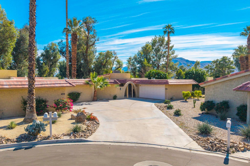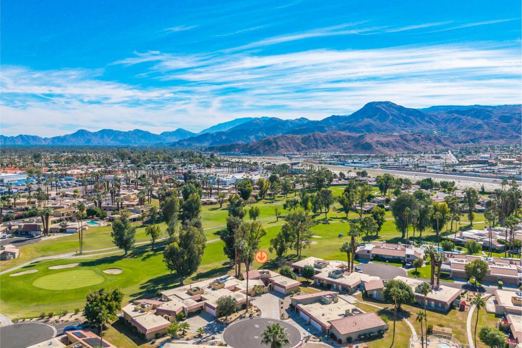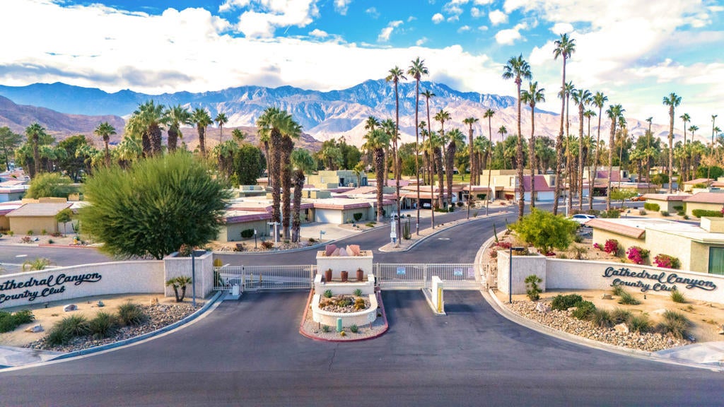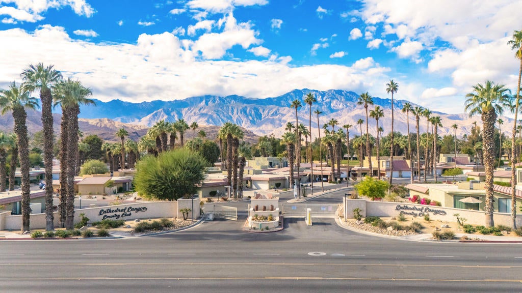 Calling all investors and remodelers! Offered as-is and priced significantly under its appraised value of $320,000--this is a fantastic opportunity. Lovingly cared for by its original owners since 1979, this condo has never been updated--but offers incredible potential for someone ready to make it their own. As you know, when it comes to real estate, it's all about location, location, location! You can change the interior but you can't replace the location.This 2-bedroom, 2-bath home with a 2-car garage is ideally positioned on a quiet interior street, as an end unit at the end of a cul-de-sac with an extended driveway. The southeast-facing patio is private and showcases sweeping views of the golf course and surrounding mountains. A welcoming front courtyard with low-maintenance desert landscaping offers added privacy and charm.The floor plan is highly desirable, offering two primary suites, each with its own ensuite bath. The front suite features a walk-in closet and sliding door access to the courtyard, while the rear suite offers sliding door access to the patio with pool and mountain views.The direct-access garage includes ample storage and lightly used laundry machines (dryer approximately 2 years old). HOA dues include trash, Wi-Fi, basic cable, 18-hole golf course access, tennis courts, and social activities--and Cathedral Canyon Country Club #5 has some of the lower HOA fees in the area. With a recent appraisal of $320,000, this condo is exceptionally well-positioned and priced to move--listed below both recent closed sales and current listings within the community. Bring your vision and make this one your own!
