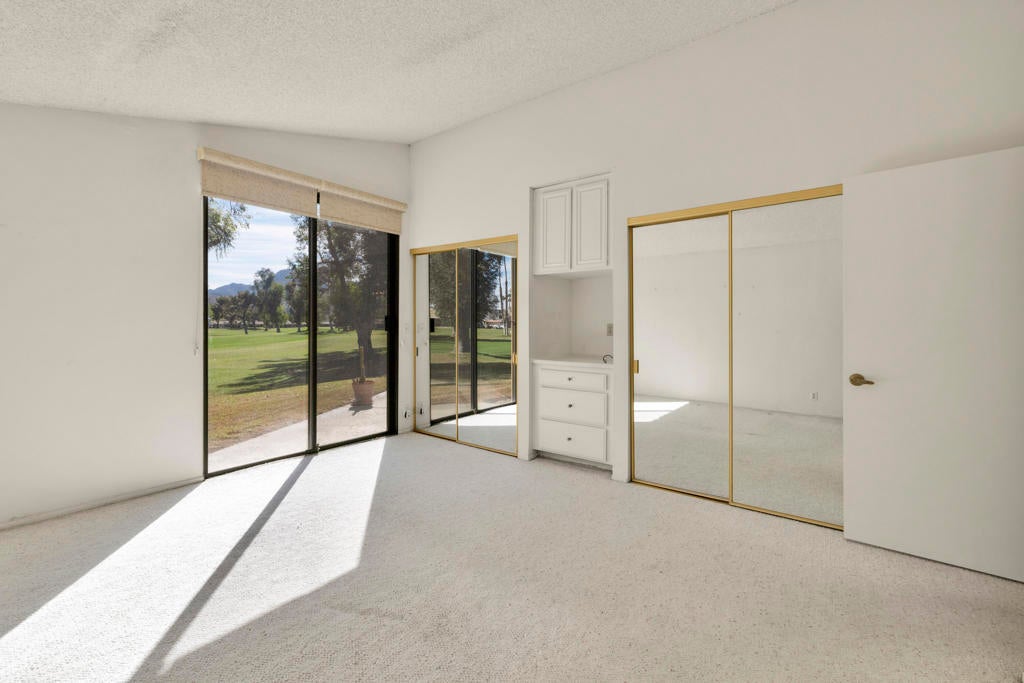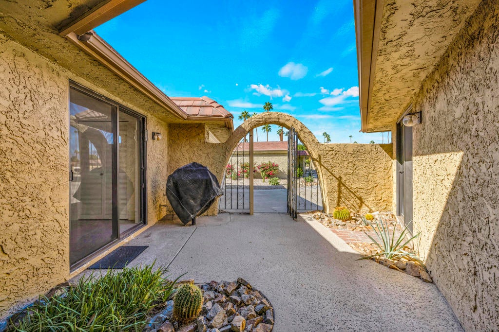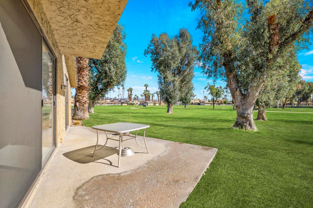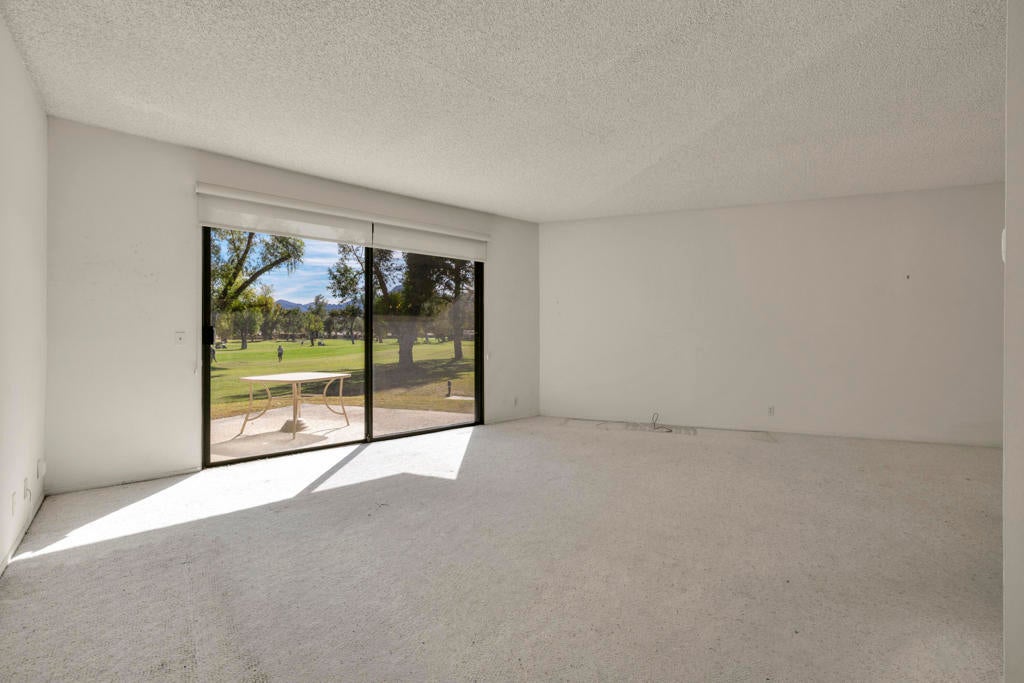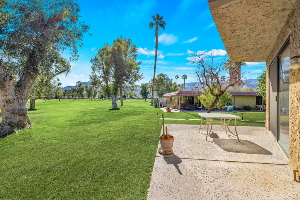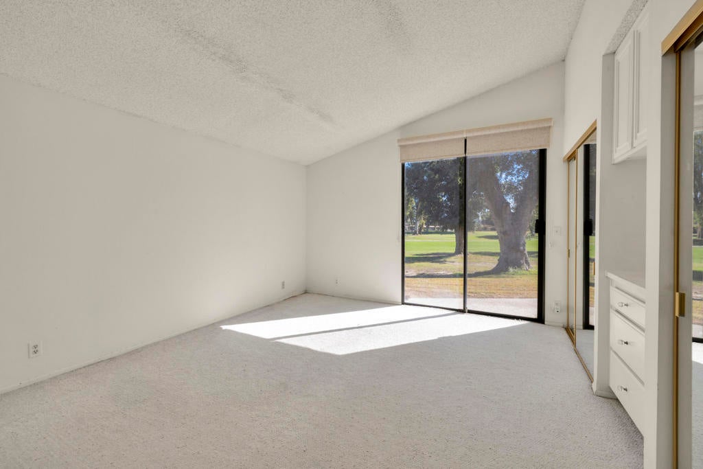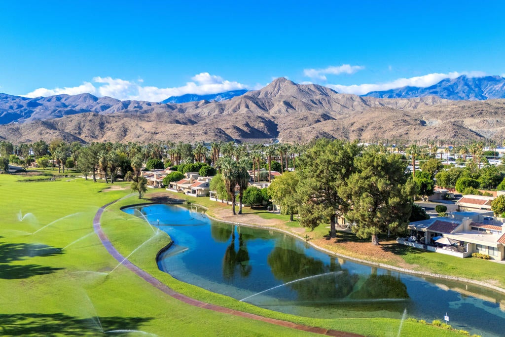 Calling all investors and remodelers! Offered as-is and priced significantly under its appraised value of $320,000--this is a fantastic opportunity. Lovingly cared for by its original owners since 1979, this condo has never been updated--but offers incredible potential for someone ready to make it their own. As you know, when it comes to real estate, it's all about location, location, location! You can change the interior but you can't replace the location.This 2-bedroom, 2-bath home with a 2-car garage is ideally positioned on a quiet interior street, as an end unit at the end of a cul-de-sac with an extended driveway. The southeast-facing patio is private and showcases sweeping views of the golf course and surrounding mountains. A welcoming front courtyard with low-maintenance desert landscaping offers added privacy and charm.The floor plan is highly desirable, offering two primary suites, each with its own ensuite bath. The front suite features a walk-in closet and sliding door access to the courtyard, while the rear suite offers sliding door access to the patio with pool and mountain views.The direct-access garage includes ample storage and lightly used laundry machines (dryer approximately 2 years old). HOA dues include trash, Wi-Fi, basic cable, 18-hole golf course access, tennis courts, and social activities--and Cathedral Canyon Country Club #5 has some of the lower HOA fees in the area. With a recent appraisal of $320,000, this condo is exceptionally well-positioned and priced to move--listed below both recent closed sales and current listings within the community. Bring your vision and make this one your own!