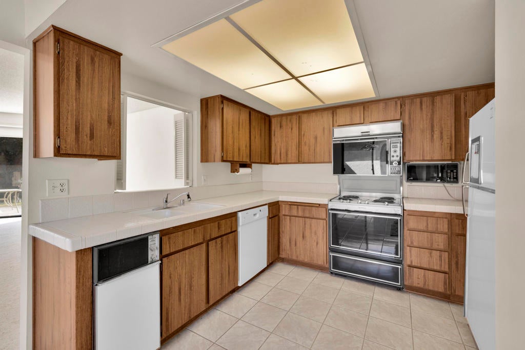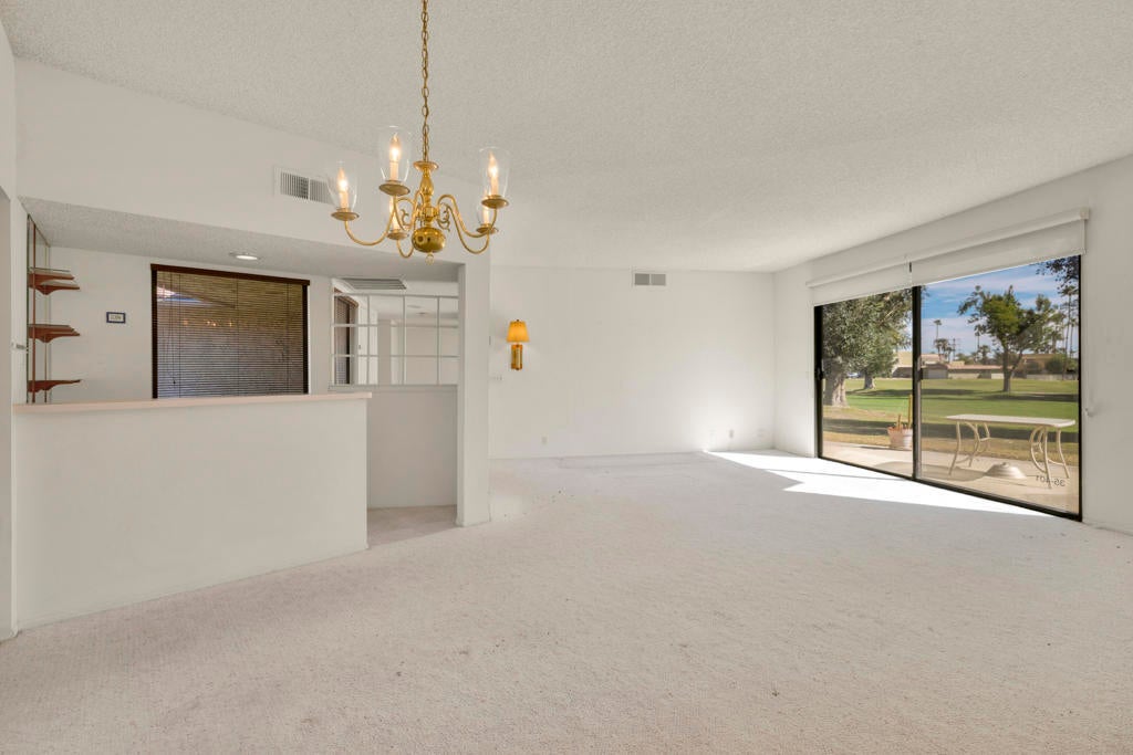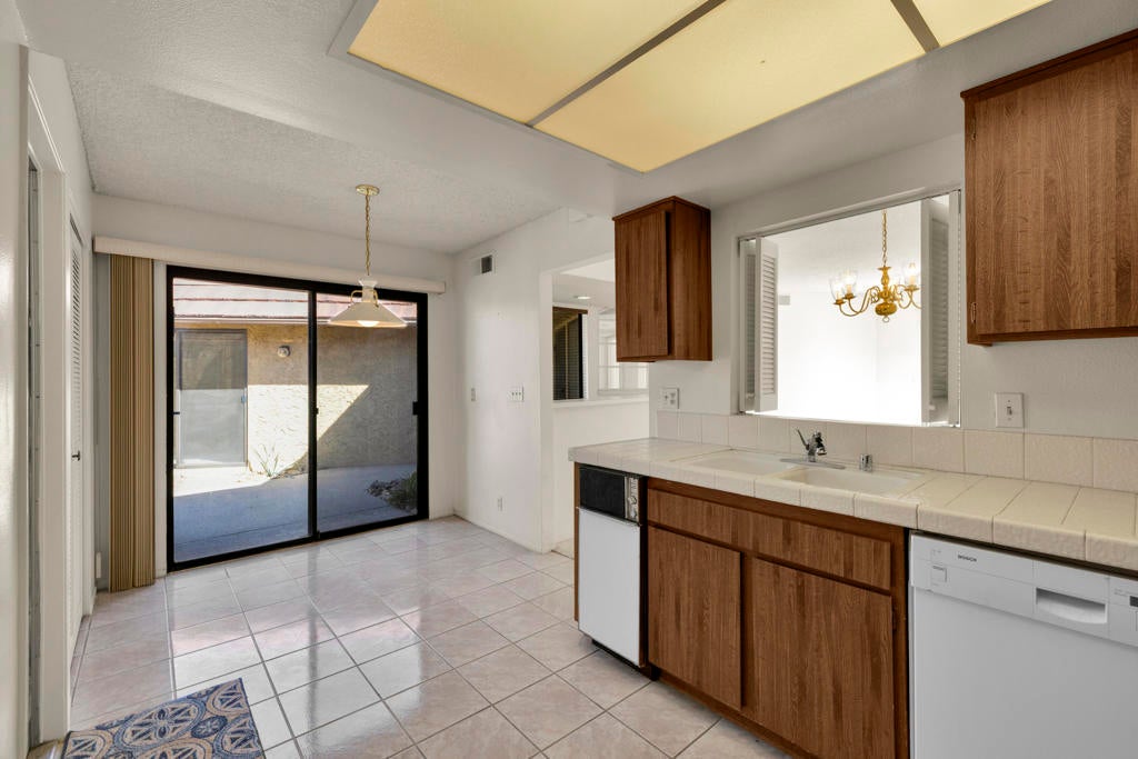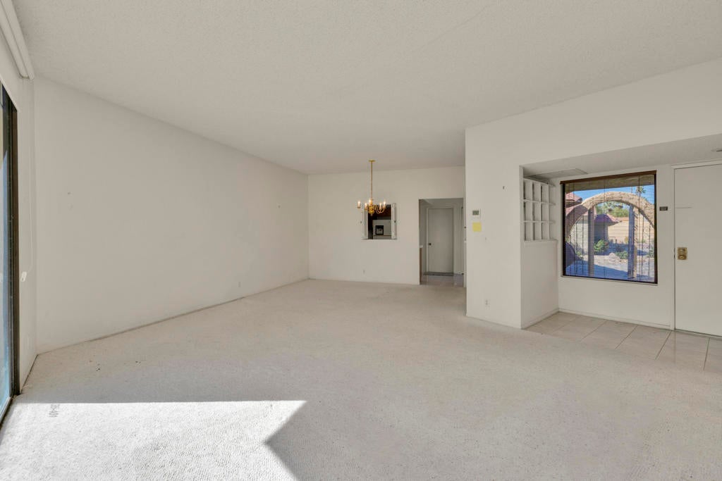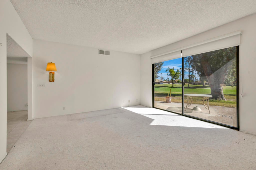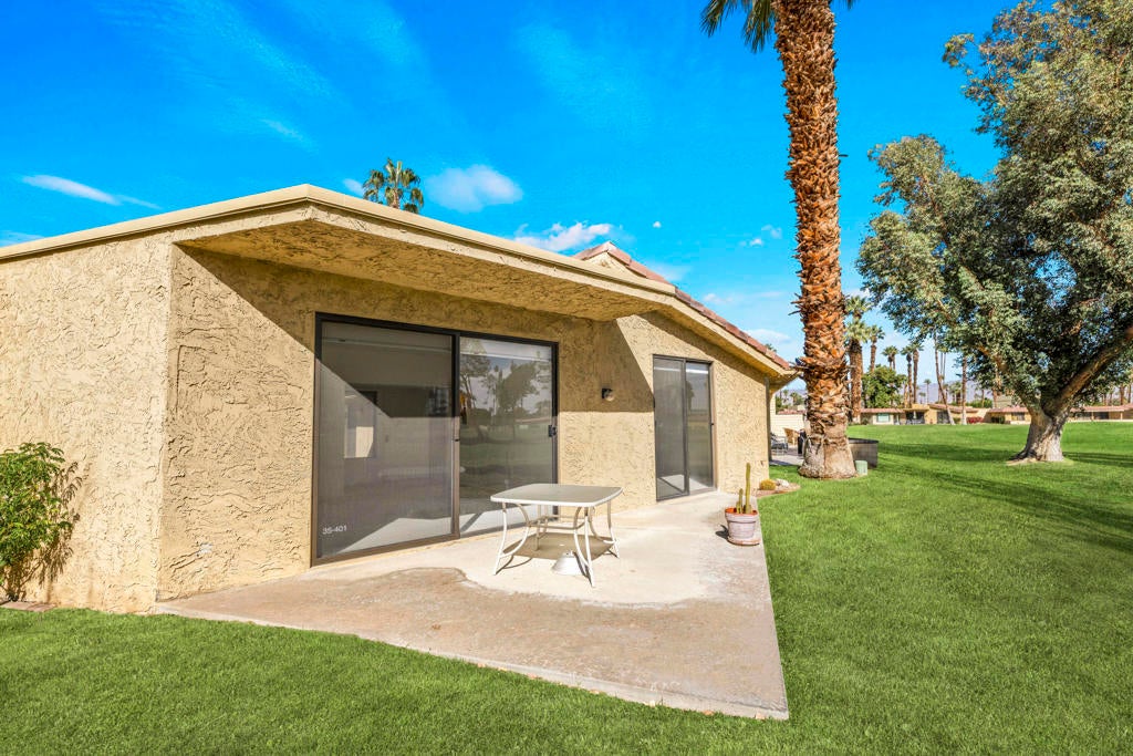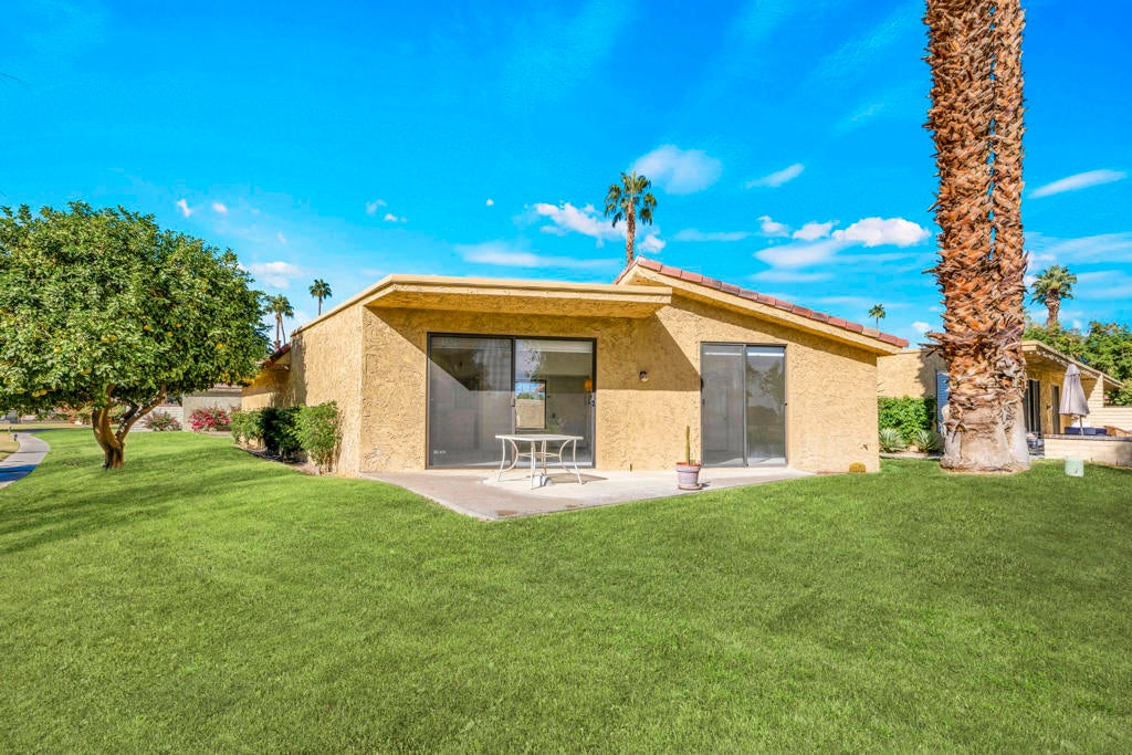Calling all investors and remodelers! Offered as-is and priced significantly under its appraised value of $320,000--this is a fantastic opportunity. Lovingly cared for by its original owners since 1979, this condo has never been updated--but offers incredible potential for someone ready to make it their own. As you know, when it comes to real estate, it's all about location, location, location! You can change the interior but you can't replace the location.This 2-bedroom, 2-bath home with a 2-car garage is ideally positioned on a quiet interior street, as an end unit at the end of a cul-de-sac with an extended driveway. The southeast-facing patio is private and showcases sweeping views of the golf course and surrounding mountains. A welcoming front courtyard with low-maintenance desert landscaping offers added privacy and charm.The floor plan is highly desirable, offering two primary suites, each with its own ensuite bath. The front suite features a walk-in closet and sliding door access to the courtyard, while the rear suite offers sliding door access to the patio with pool and mountain views.The direct-access garage includes ample storage and lightly used laundry machines (dryer approximately 2 years old). HOA dues include trash, Wi-Fi, basic cable, 18-hole golf course access, tennis courts, and social activities--and Cathedral Canyon Country Club #5 has some of the lower HOA fees in the area. With a recent appraisal of $320,000, this condo is exceptionally well-positioned and priced to move--listed below both recent closed sales and current listings within the community. Bring your vision and make this one your own!