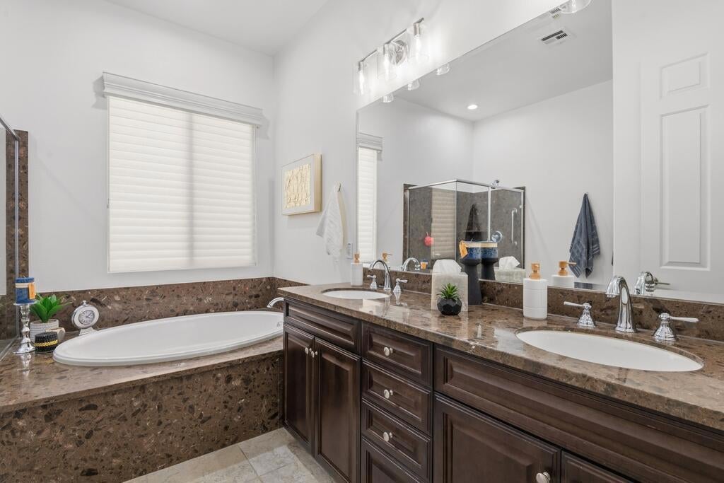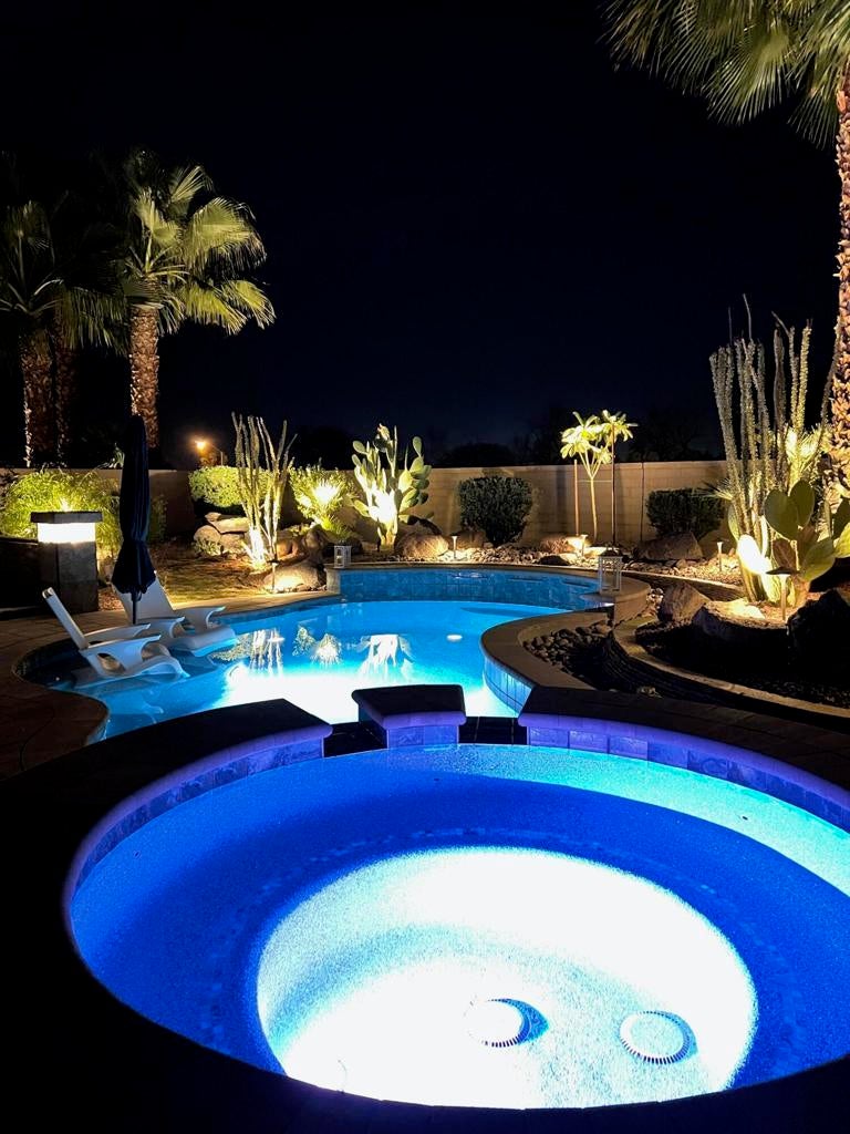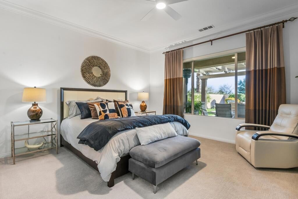 Experience modern elegance and refined luxury in the resort-style 55+ community of Sun City Shadow Hills. This highly upgraded, lightly lived-in home sits on one of the community's best lots--a rare, oversized backyard with no rear neighbors, south-facing exposure, and beautiful views. The backyard is a private desert oasis featuring a brand-new Pebble Tec saltwater pool and spa, completed in September 2025, with a custom water feature and all-new Pentair smart equipment controllable from your phone.Inside, the home feels like new and has just been repainted in a bright, classic white. The open floor plan includes two newly carpeted bedrooms, two baths, a den, and generous walk-in closets. Plantation shutters, new ceiling fans, and recently installed refrigerator and dishwasher add comfort and style. Additional upgrades include a brand-new water softening/osmosis system (summer 2025) and an epoxy-floored garage with a new mini-split air conditioner (September 2025) to keep vehicles and storage cool.Located on a quiet cul-de-sac near the security gate, this exceptional home offers contemporary design, quality craftsmanship, and effortless desert living. Enjoy Sun City Shadow Hills' world-class amenities, including two golf courses, clubhouses, fitness centers, pools, tennis, pickleball, and an active social calendar. A rare opportunity not to be missed.