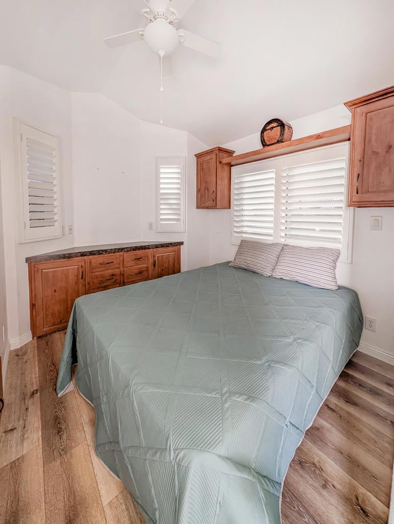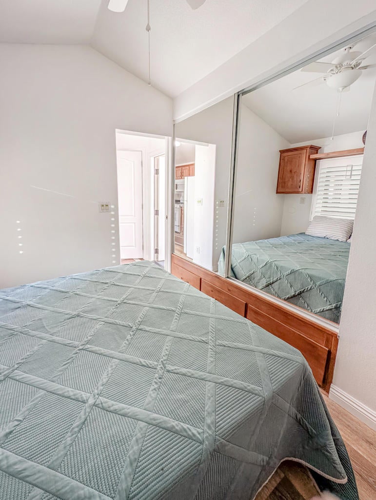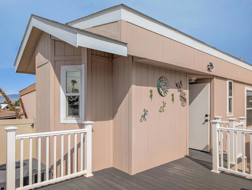 Exquisite home shows pride in ownership with this 2016 Cavco Park model home in immaculate condition with well-appointed ~400 sq. ft.,1 bedroom, 1 bath and the most stunning, amazing views of Mt. San Jacinto and local hills from the front and back of the deck in this spectacular hidden treasure and desert oasis. Modern, tastefully adorned finishes throughout include new flooring, plantation shutter blinds, tinted glass and screens, new decking, new sliding glass doors, shed has power and all this comes with a golf cart to get around this great park. This gem offers so many possibilities to make your dream getaway or serene fulltime residency. All being offered in the prestigious 55+ Caliente Springs Resort and offers such fantastic features and top-notch amenities including mineral hot spring fed pool and spas, state of the art fitness center, 9-hole golf course, 8-pickleball courts, tennis courts, laundry facilities, a library, and a fun active community. In addition to the impressive amenities and breathtaking views, residents enjoy a vibrant calendar of social events and activities, fostering connections and a true sense of community within Caliente Springs Resort. Whether you're relaxing in the mineral pools, joining a friendly pickleball match, or exploring the scenic surroundings in your golf cart, every day presents new opportunities for leisure and enjoyment. This exceptional home combines comfort and convenience in a resort setting, making it an ideal choice for those seeking a peaceful retreat or an active lifestyle in the heart of the desert. Lot is not owned; space rent: $707.