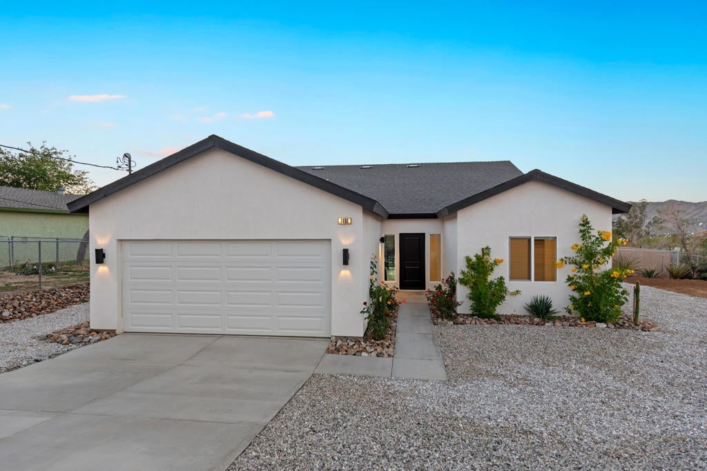 Desert Living with Million-Dollar Views! Welcome to your dream modern farmhouse -- a newly built 4-bedroom, 2-bath home where style meets serenity. From the moment you step inside, you're surrounded by panoramic views of the San Bernardino Mountains, visible from most rooms throughout the home - including the living room, dining area, kitchen, primary suite, and even one of the guest bedrooms. Each space is designed to make the stunning desert landscape part of your everyday living experience. The open floor plan blends comfort and design seamlessly, featuring wood plank flooring, composite countertops, and farmhouse-inspired finishes throughout. The primary suite includes a walk-in shower, generous closet space, and natural light pouring in. Three additional bedrooms and a second bathroom offers flexibility for family, guests, or a home office. Step outside to enjoy the expansive backyard, where you can design your own desert oasis and take in those golden sunsets that light up the San Bernardino range. The property also offers RV parking, a two-car garage, and a versatile chicken coop ready for your creative touch. With paid solar, central heating and cooling, and energy-efficient construction, this home delivers both comfort and savings. Ideally located in central east Yucca Valley, you're just minutes from local shopping, dining, and the Joshua Tree National Park entrance - creating the perfect balance of convenience, privacy, and desert tranquility.If you've been searching for a move-in ready modern home with unforgettable views from nearly every room, this one deserves to be at the top of your list.