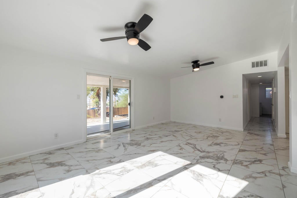 Welcome to this beautifully remodeled and move-in-ready 3-bedroom, 2-bath home offering modern upgrades and comfortable living in one of Desert Hot Springs' most convenient locations. This home features a fully renovated interior with new appliances, a brand-new A/C system, updated flooring, recessed lighting, and an open-concept layout that seamlessly connects the kitchen, dining, and living areas. A standout feature of this property is the fully remodeled garage, which has been converted into a bonus room complete with tile flooring, a mini-split A/C system, a closet--ideal for a home office, gym, guest space, or additional living area. The laundry area is located in its own designated section, providing added convenience and functionality. Outside, you'll enjoy a low-maintenance yard and a peaceful setting with easy access to local amenities. The home is located just minutes from shopping centers, including Stater Bros, dining options, and commuter routes, offering both comfort and convenience. This move-in-ready home is the perfect blend of modern finishes, flexible living space, and a great location--ready for its next resident to enjoy.