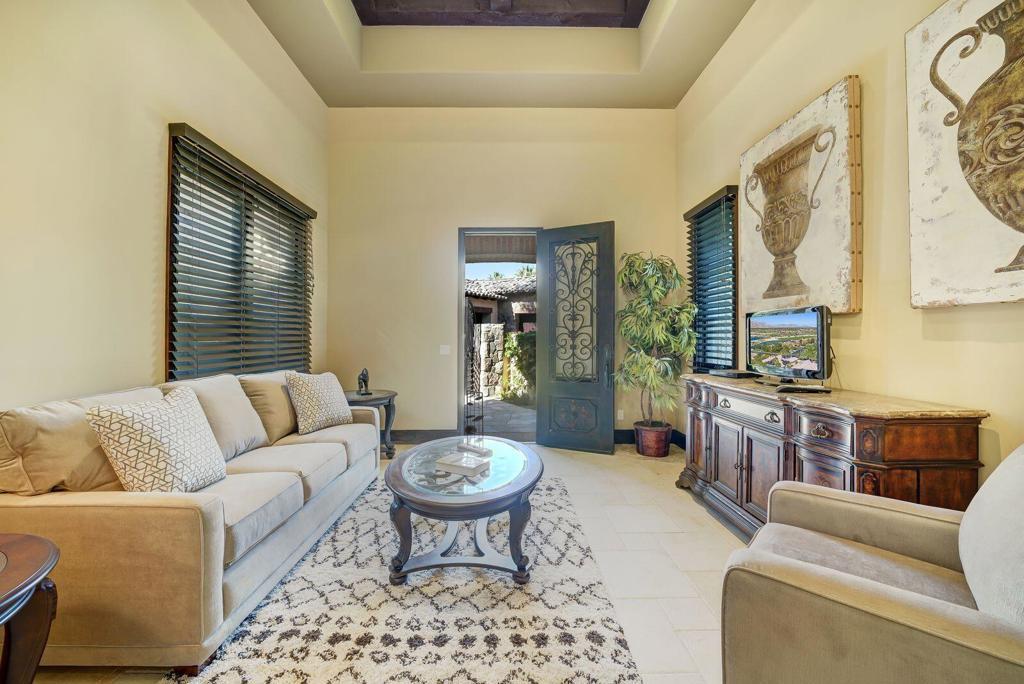 Spectacular estate at the Hideaway! Four-bedroom suites (including detached casita) plus office, four and a half baths. Approx. 6,004 sq. ft. on .43 acre lot. Features great room with stone fireplace, custom wet bar and conversation area. Formal dining room, kitchen with center island / bar and breakfast nook. Large master suite with two-way fireplace into incredible bath and massage room. An entertainer's dream with pocket doors opening to loggia and outdoor recreation area with BBQ , sparkling pool and spa plus a firepit! This incomparable home boasts some of the most majestic golf course, lake and mountain views on the 8th fairway of the Pete Dye course! The Hideaway has a 90 minimum lease requirement.