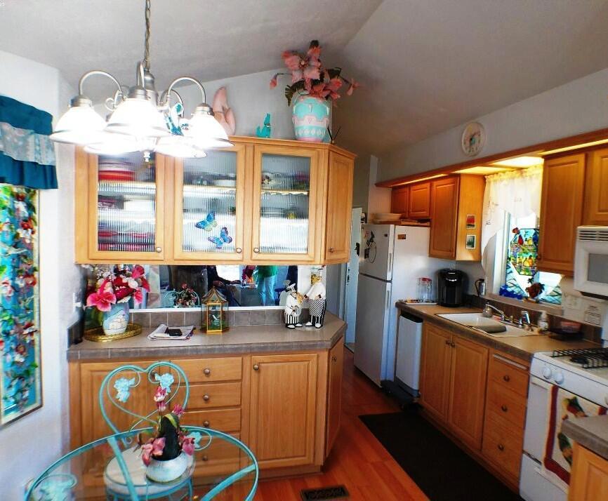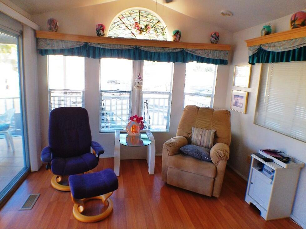 WOW!!! What Views. This stunning clean Park Model has a small CA Room attached for TV r Guests. It is located on a corner steps away from Clubhouse #1, Pool/Spa, Games Room, Library, and Banquet Facilities. A Wrap around deck with a great parking area for your vehicle and golf cart. The interior is decorated Southwest Theme and it is all included except a couple of items. Don't Let this One Get Away.