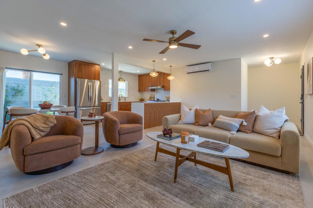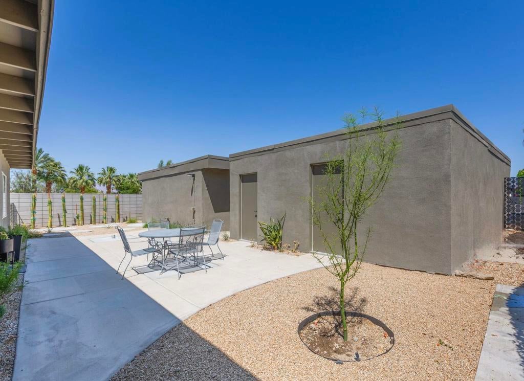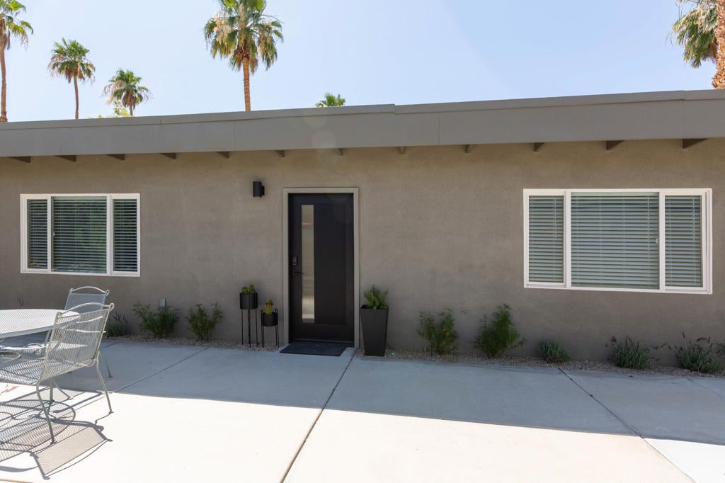 Unique move-in ready opportunity with NO HOA in Rancho Mirage; this charming mid-century detached (no shared walls) duplex property (2/1 and 1/1) with abundant mountain views offers multiple opportunities and flexibility (family compound/primary unit plus casita for guests/caregiver accommodation/in-law suite or an extremely versatile income opportunity - rent separately or live in one and have the other produce income for you). The rear unit (1bed/1 bath) has a beautiful walnut kitchen with smart appliances and white quartz counters, and an oversized primary suite with pretty en-suite bathroom. The front unit (2 bed/1 bath) is also updated - fresh and modern with new flooring, new paint, a new kitchen with quartz counters and smart appliances, and updated bathroom. Both units enjoy private patio space and feature smart lighting, smart climate control and smart entry locks. Both units have laundry facilities inside (space for a full size setup in the rear unit, and for a combi unit in the front unit). This private compound is within walking distance of the River/Magnesia Falls Shopping Center and Rancho las Palmas hotel. Just steps away is Rancho Mirage Park, where you can visit the weekly farmers market, enjoy a whole variety of events at the amphitheater and make good use of the multiple pickleball courts and walking paths.Outside, the property features a new roof, new block wall, new gates, multiple patio areas, creative landscaping and new irrigation connected to a smart irrigation timer. A detached 2 car garage (with an additional large lockable storage closet) has epoxy floors, fresh paint and a WIFI belt-drive door opener with camera. There are two separate gas and power meters and one water meter.