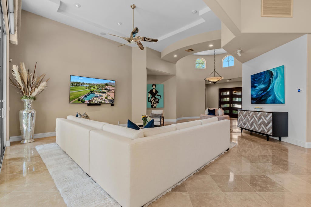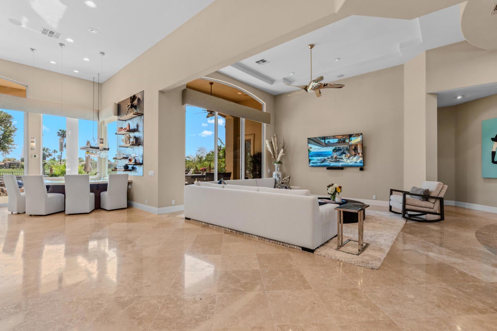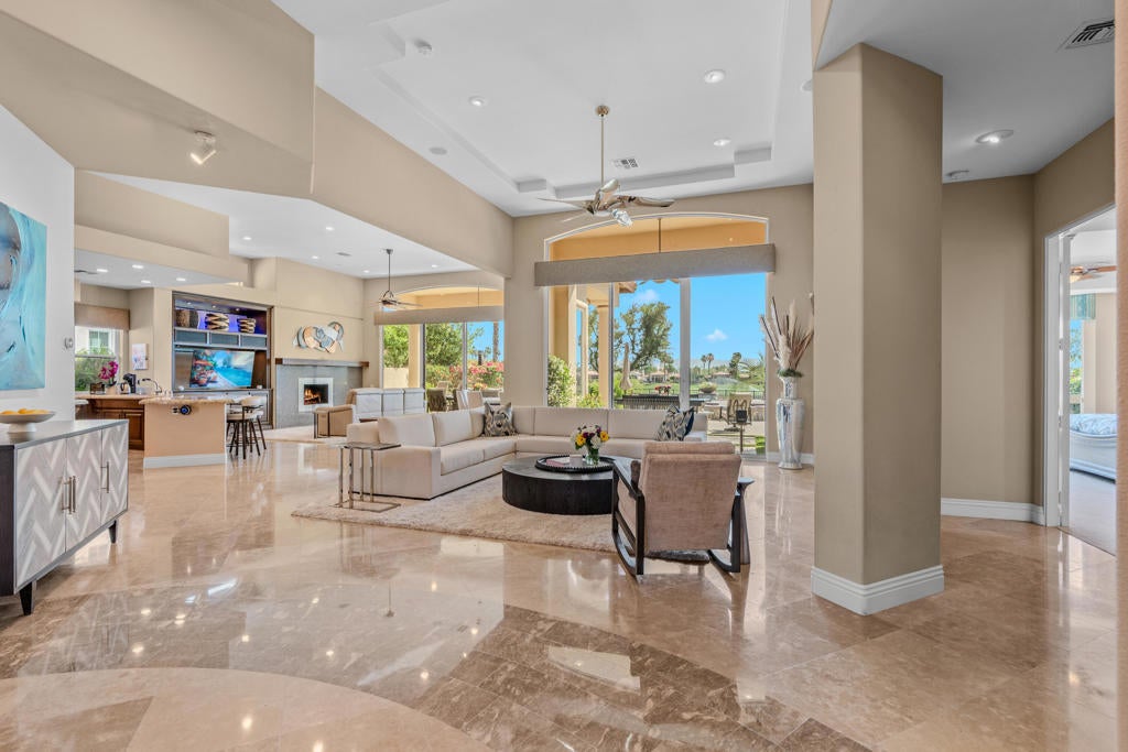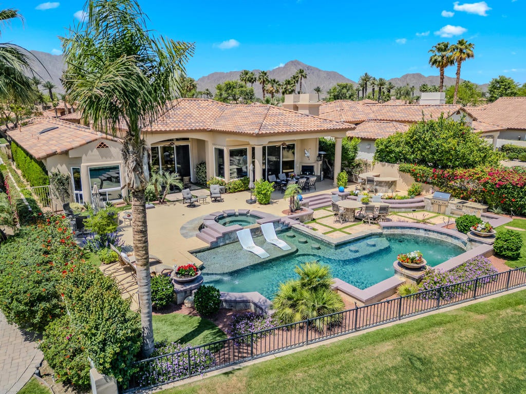 Ignite your senses with this beautifully upgraded Montana 3 model offering modern desert living at its finest. Enjoy mesmerizing lake and double fairway views from this spacious open concept home. The bright and inviting floor plan features a generous living area off the kitchen, a seperate dinning space, and three interior bedrooms - each with its own ensuite bath. A detached casita with a kitchenette provides the perfect retreat for guests with a King bed and ensuite attached for comfort and privacy. This home is fully equipped with smart home technology and Alexa integration throughout. Step outside to an entertainers paradise - the backyard features mulitple dinning and lounging areas, a cozy firepit, and a sparkling pool with a sun shelf, all set within a private fenced yard. Experience comfort, style and unforgettable views in one exceptional property!Available - March ( $30,000 ) and April ($ 25,000 )