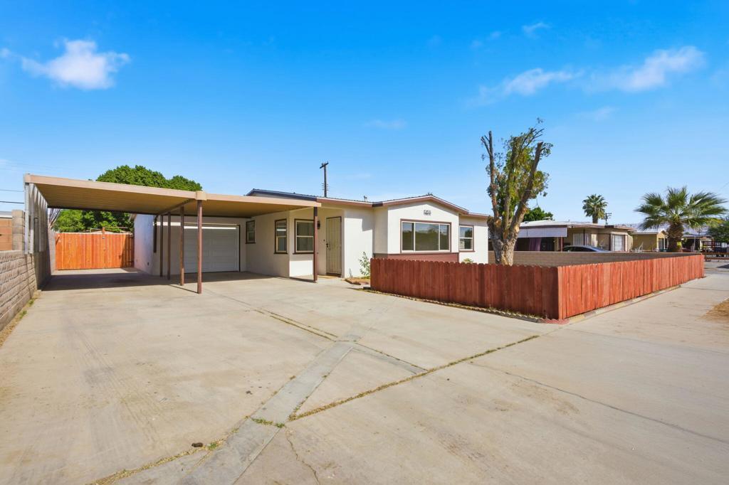COMPLETELY REMODELED & MOVE-IN READY! This beautifully renovated 3-bedroom, 1-bath home in desirable North Indio offers a perfect blend of modern style, comfort, and everyday practicality. Fully updated from top to bottom by a licensed contractor with all necessary city permits and inspections, this home is truly turnkey--just bring your furniture and start living. Step inside to a bright and open living space featuring luxury vinyl plank flooring throughout, fresh interior and exterior paint, new baseboards, doors, and hardware. The open kitchen is the centerpiece, showcasing sleek Quartz countertops, brand-new cabinetry, a stylish black multipurpose sink, and a full suite of new stainless and black appliances, including gas stove, microwave hood, and dishwasher. A separate dining area provides room for family meals and entertaining, while recessed lighting and energy-efficient dual-pane windows bring warmth and light into every room. The bathroom has been completely remodeled, with a new vanity, shower tile, fixtures, and toilet. The entire home has been re-piped with PEX, includes a new water heater, and features new electrical switches, outlets, and light fixtures throughout. HVAC service has been professionally completed by Vic's Air Conditioning and includes a one-year parts and labor warranty for peace of mind. Outside, enjoy your own private fenced yard with new fencing and gates--all permitted and approved by the City of Indio--plus a rear storage shed for tools or personal items. The single attached garage features a new motorized door, and the extended driveway provides off-street parking for up to five vehicles, two of which are covered. The low-maintenance desert landscaping includes decomposed granite, new plants, and a manual drip irrigation system in front, with a mulched backyard ready for personal touches. Located in desirable neighborhood of North Indio with no HOA, this home is close to Andrew Jackson Elementary School, North Jackson Park, shopping centers, major retailers, restaurants, and convenient freeway access. A rare opportunity to own a fully renovated, move-in-ready home at an affordable price point--with all major systems updated and a modern design aesthetic throughout. Truly a must-see property offering comfort, quality, and lasting value in one of Indio's most desirable established neighborhoods!