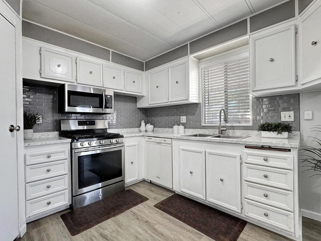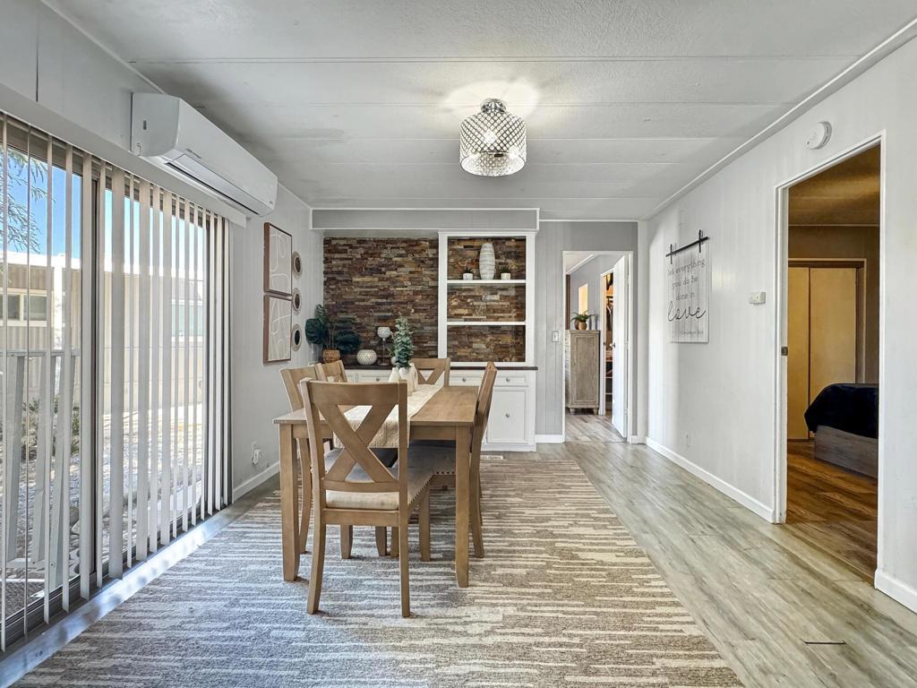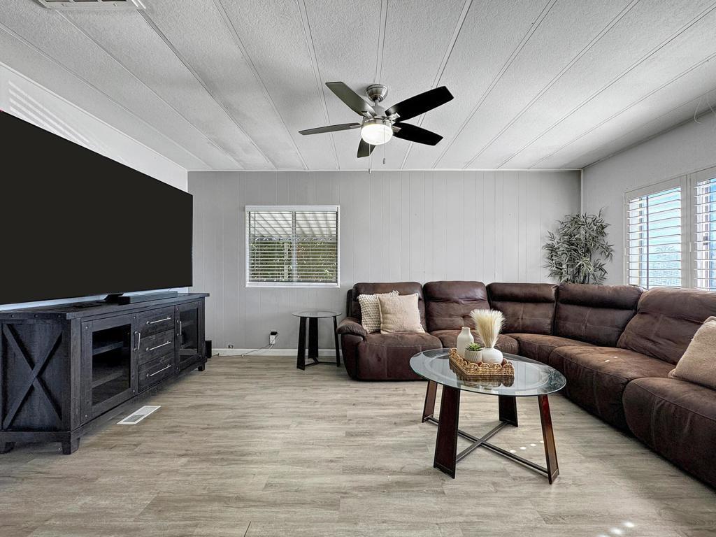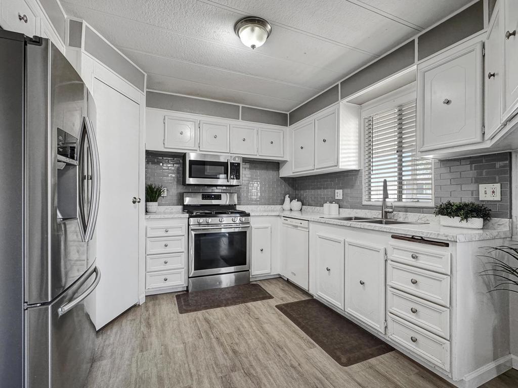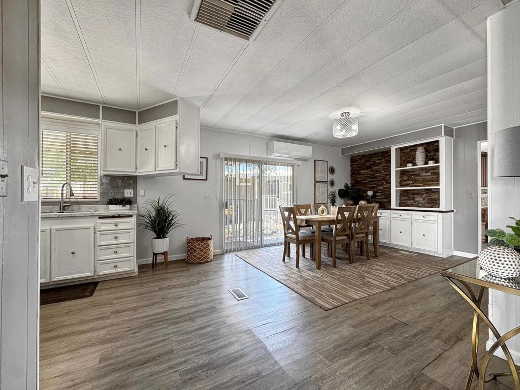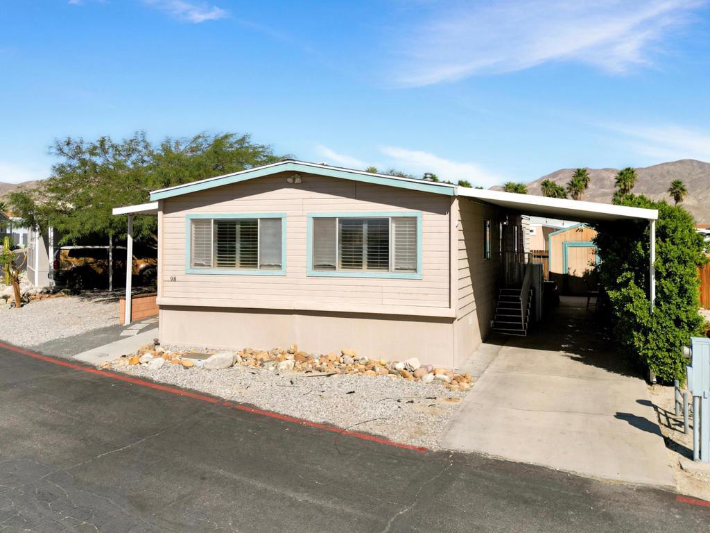 Welcome to the all ages Palm View Estates community! This beautifully designed and partially furnished 3-bed, 2-bath manufactured home offers a spacious, separate living area ideal for entertaining or relaxing in comfort. The open concept kitchen offers plenty of cabinetry and counter space, stainless-steel appliances, and a generous dining space filled with natural light. The primary suite features a private bath and ample closet storage, while two additional bedrooms provide flexibility for guests, an office, or hobby space. Step outside to enjoy desert sunsets from your covered patio surrounded by low-maintenance landscaping. Includes carport parking and storage shed. Conveniently located near downtown Desert Hot Springs, natural hot springs, shopping, and scenic hiking trails this move-in-ready home blends comfort, style, and value!