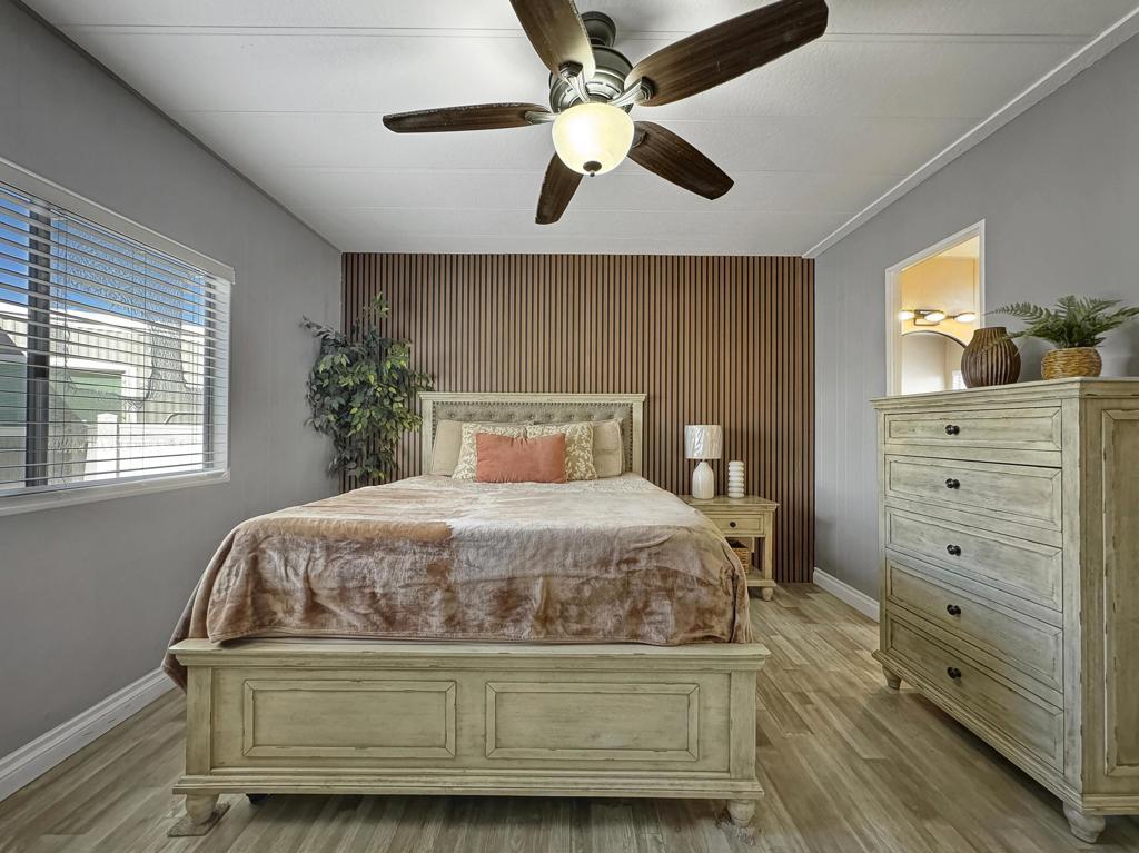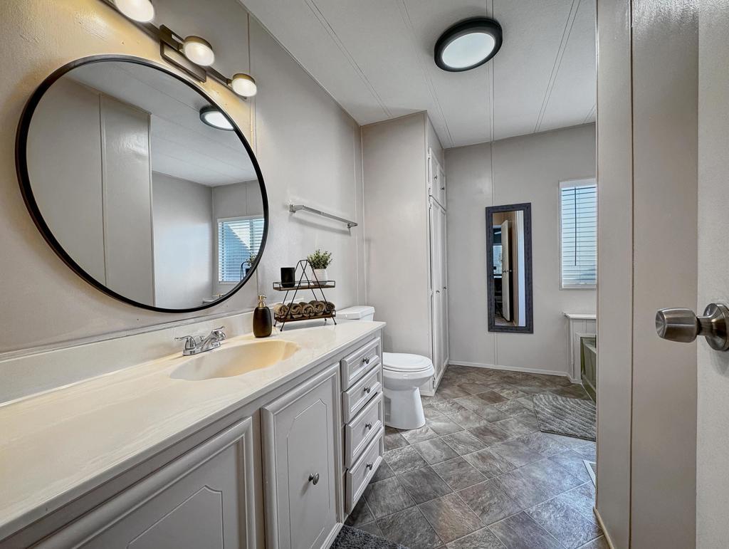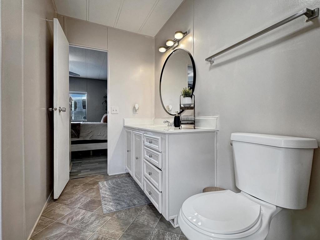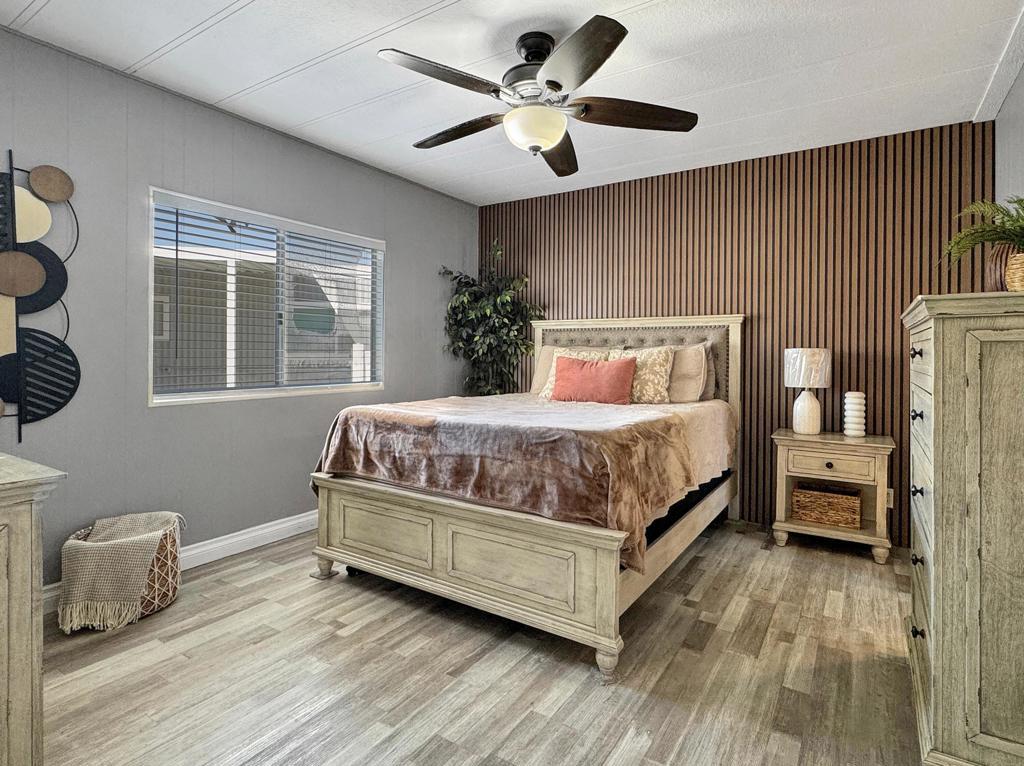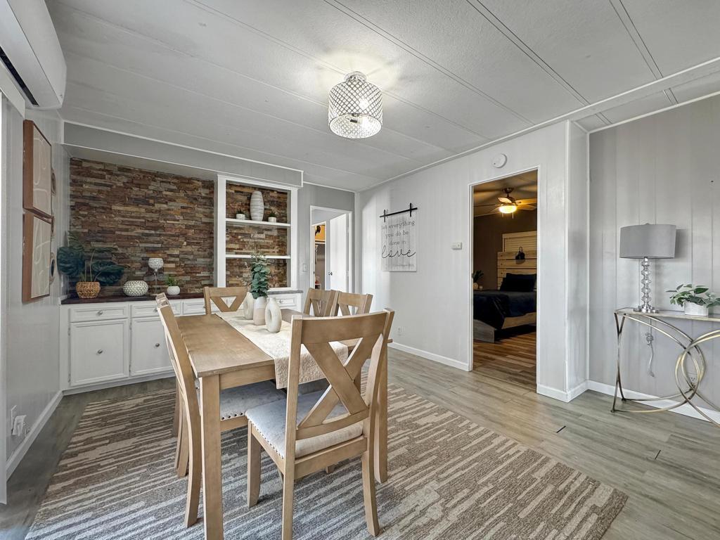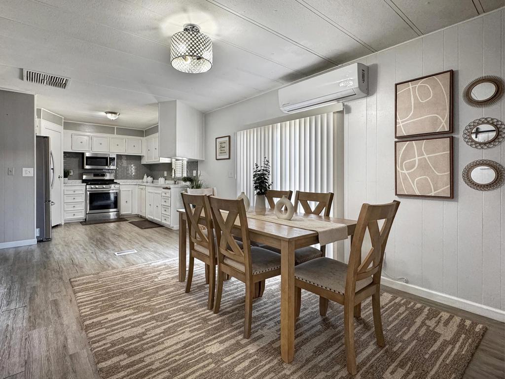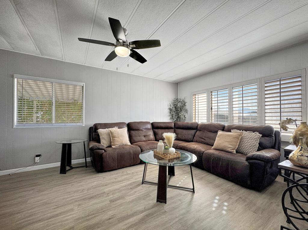 Welcome to the all ages Palm View Estates community! This beautifully designed and partially furnished 3-bed, 2-bath manufactured home offers a spacious, separate living area ideal for entertaining or relaxing in comfort. The open concept kitchen offers plenty of cabinetry and counter space, stainless-steel appliances, and a generous dining space filled with natural light. The primary suite features a private bath and ample closet storage, while two additional bedrooms provide flexibility for guests, an office, or hobby space. Step outside to enjoy desert sunsets from your covered patio surrounded by low-maintenance landscaping. Includes carport parking and storage shed. Conveniently located near downtown Desert Hot Springs, natural hot springs, shopping, and scenic hiking trails this move-in-ready home blends comfort, style, and value!