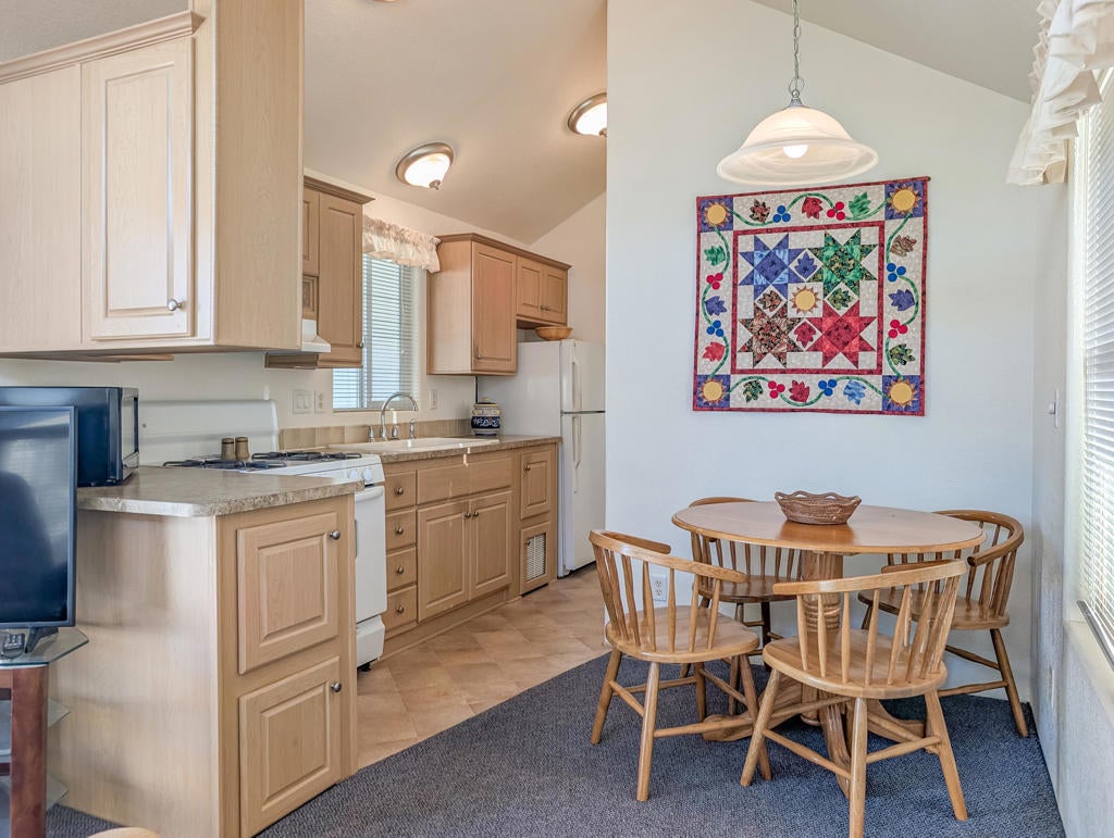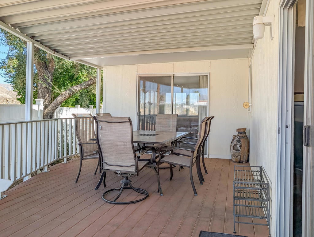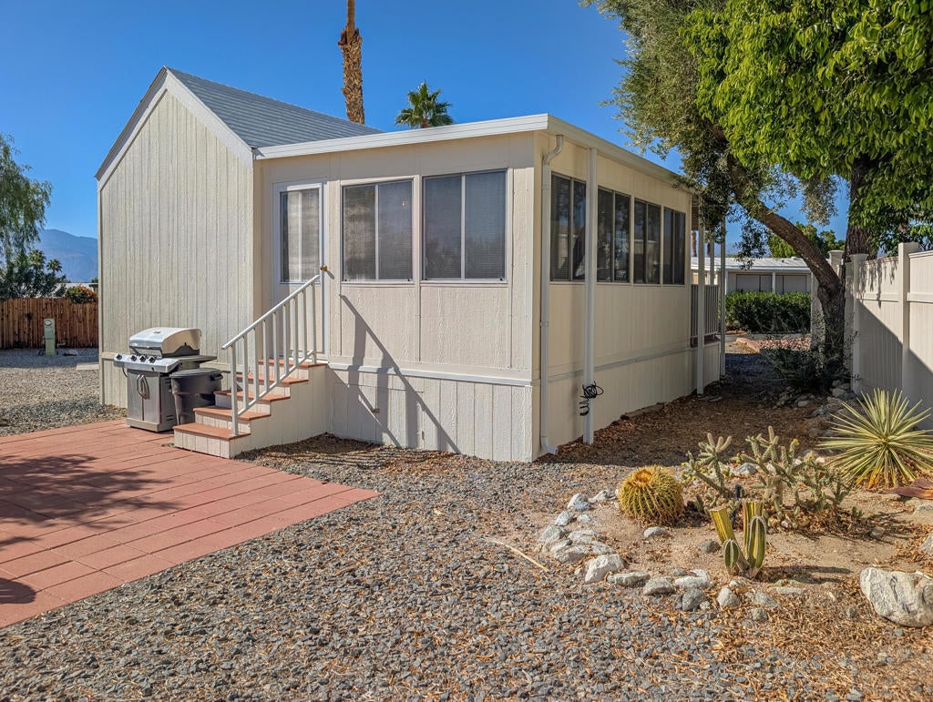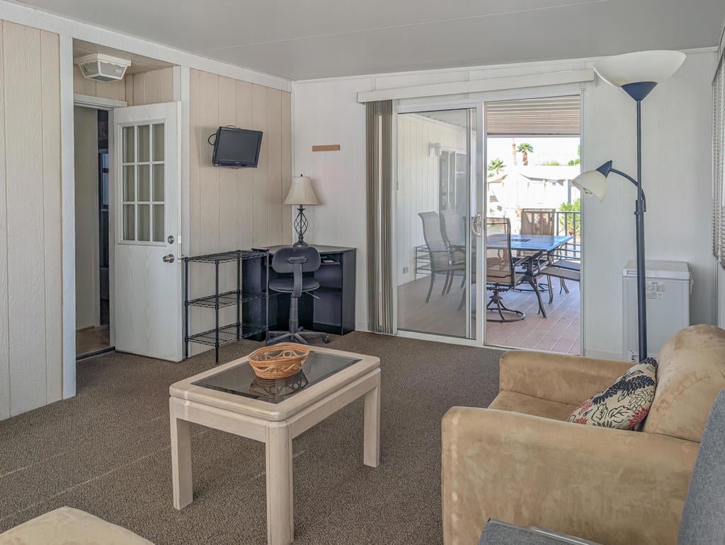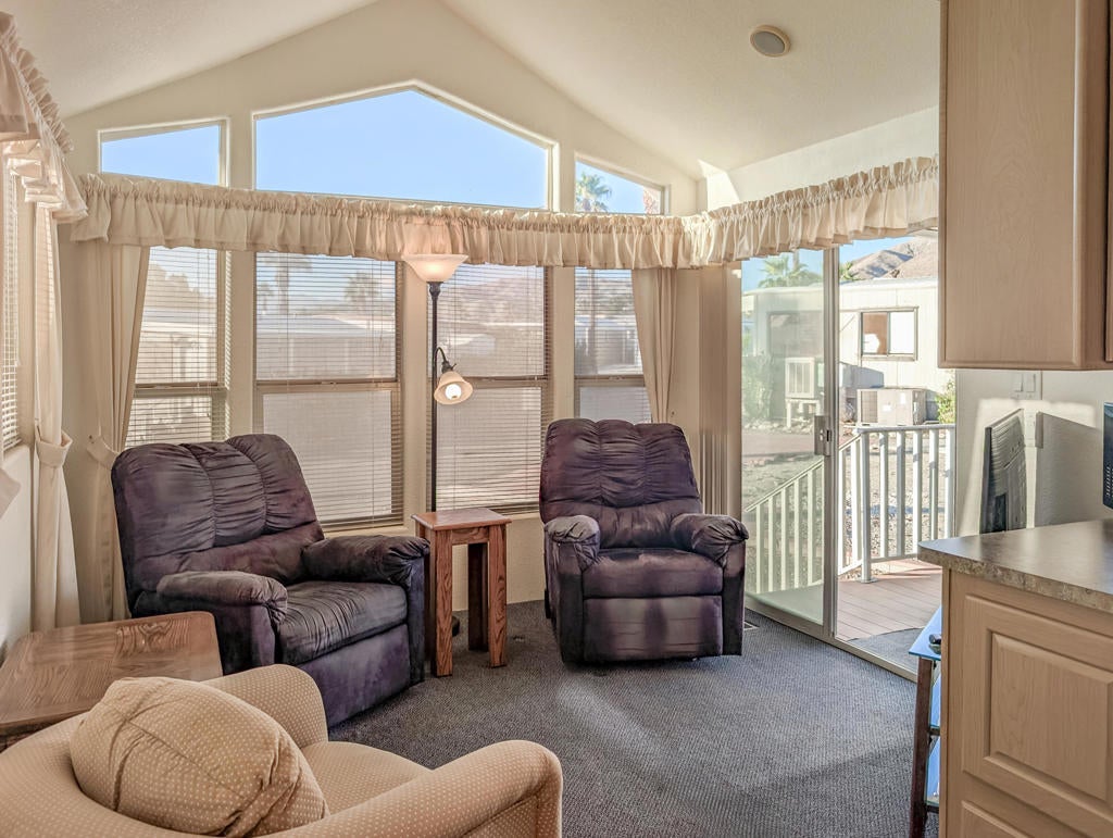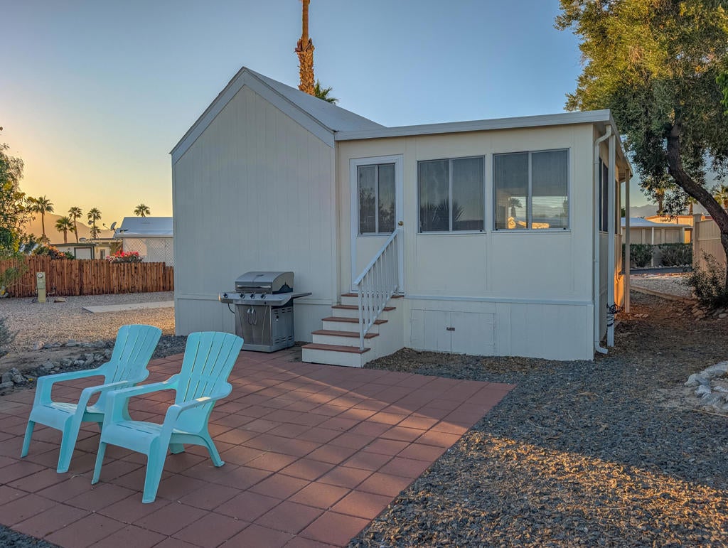 Located just steps from the Clubhouse and centrally positioned within the park, this meticulously maintained residence offers striking desert and mountain views. The property boasts an expansive outdoor entertainment area, including a spaciously covered deck with unobstructed vistas of the surrounding landscape. Encompassing approximately 600 sq. ft., the home features one bedroom and one bathroom, providing efficient yet comfortable living accommodations. Thoughtful design elements throughout enhance convenience, while the exterior presents significant opportunities for personalized landscaping. Caliente Springs is an exclusive 55+ gated community offering a comprehensive array of amenities, including a mineral hot spring-fed pool and spas, 8 pickleball courts, tennis courts, a 9-hole golf course, a library, and a vibrant social environment. Residents are encouraged to take advantage of these facilities to foster community engagement. Please note that the lot is not owned; space rent is $811.