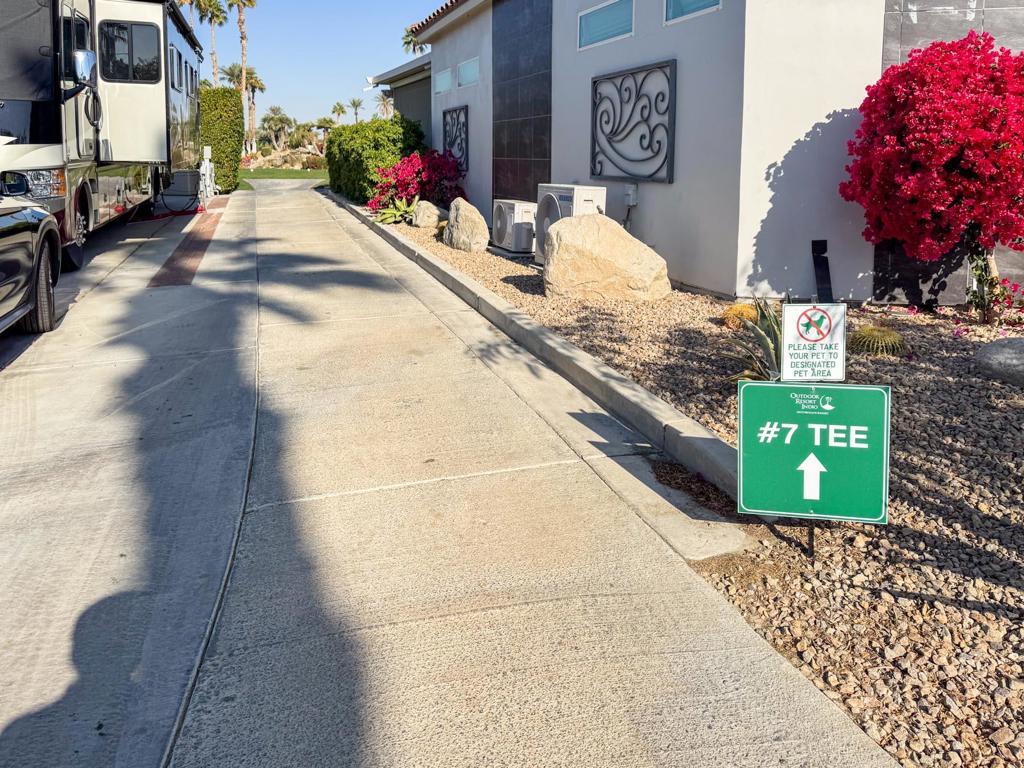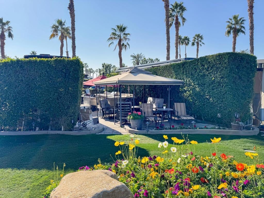 Outdoor Resort Indio is a class A only RV resort.Stunning lake and golf course views set the stage for this exceptional luxury RV lot, perfectly positioned beside the 7th tee for an unbeatable blend of beauty and excitement. This private and peaceful retreat features a spacious outdoor kitchen equipped with premium stainless steel appliances, including a hot water sink, dishwasher, grill, burner, oven, and under-counter refrigerator--ideal for effortless outdoor entertaining. A charming gazebo provides a shaded escape, while elegant landscaping enhances the serene ambiance. Fully furnished for comfort and style, this lot offers a seamless move-in experience, with a golf cart available for negotiation. Experience resort living at its finest with this one-of-a-kind property.