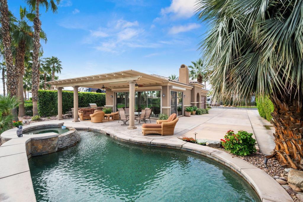 #110 DESERT SHORES RESORT.Luxury RV Resort property!Lovely eastern backyard location on private watercourse and greenbelt.Villa with Kitchen/Great Room, Retreat with Bathroom and Closet + 1.5 Stall Garage!Covered patio and pool, spa and BBQ island.Association includes clubhouse, tennis, fitness , pickleball, community pool & spa, social activities, 24 hour, guard gated with high-tech perimeter security, trailer storage area, doggie park, front yard landscape maintenance & brand new super-speed FIOS internet
