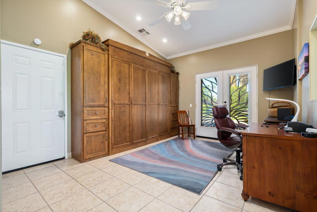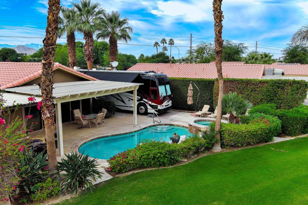 #8 DESERT SHORES RESORTLuxury Motorcoach Resort in the heart of Indio, California. Newer 525 Sq Ft. Guest Suite addition makes for a total of 2 Retreats and 2 Bathroom + Great Room/Kitchen for a total of 1,240 Sq Ft living space + Garage.(Garage dimensions = 18.5' x 23')Waterfront location with spacious outdoor living space with freeform Pool and Spa.Association includes clubhouse, tennis, pickleball, fitness center, community pool & spa, social activities, 24 hour, guard gated with high-tech perimeter security, trailer storage area, doggie park, front yard landscape maintenance & brand new super-speed FIOS internet