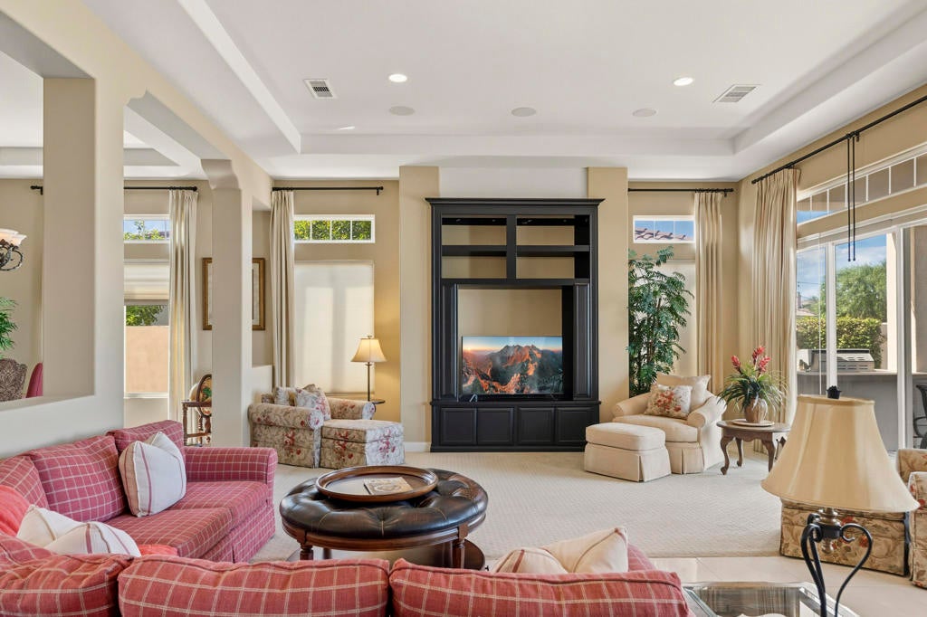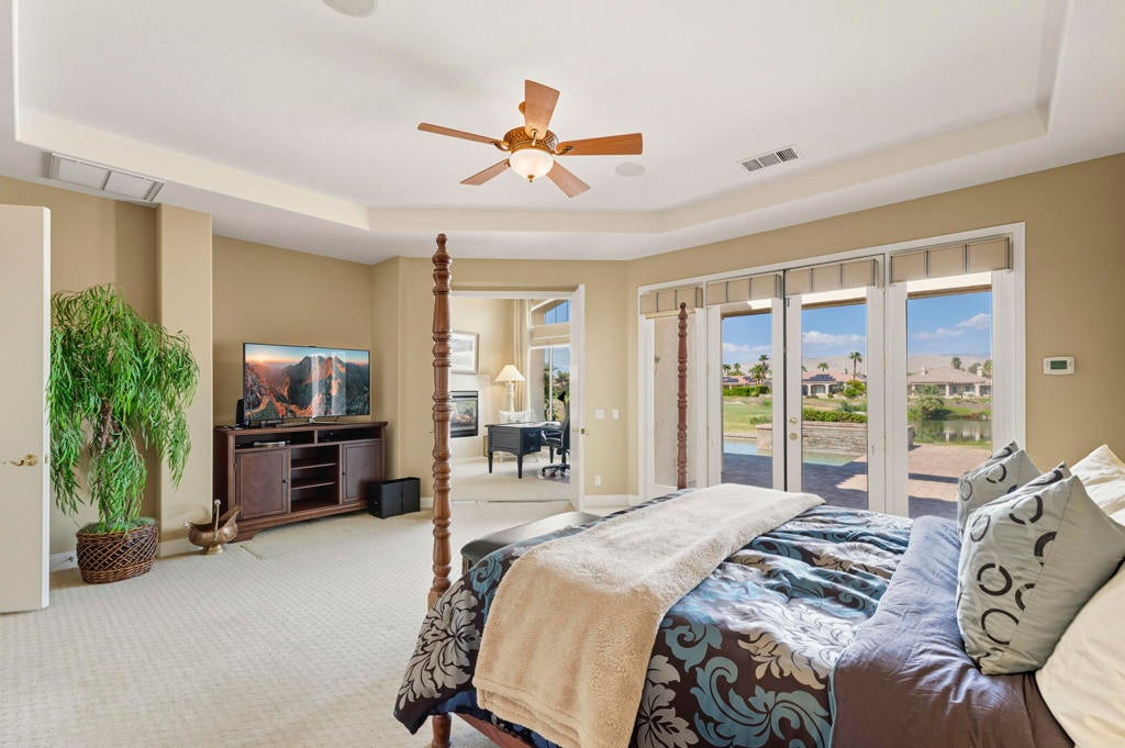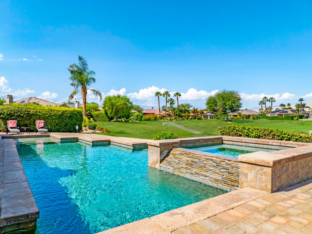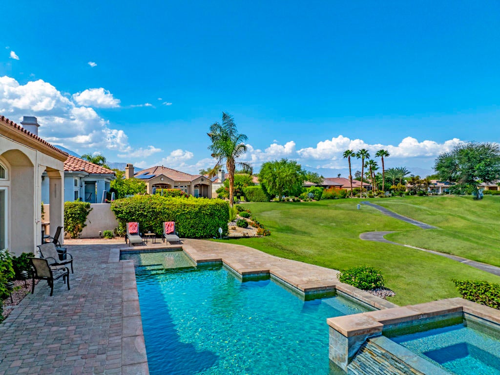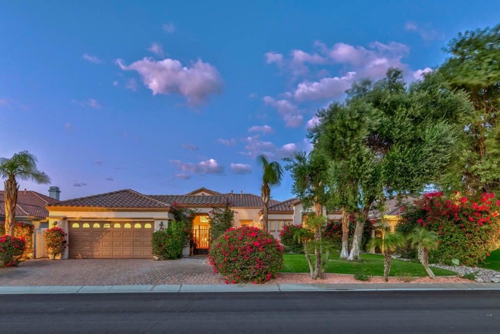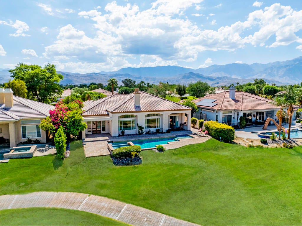 Luxury Oasis in Rancho Mirage.Discover unparalleled Desert Living in this Exquisite 3 Bedroom, 3.5 Bath Home with Flex-space (currently used as Office)Perfectly situated on the famed Gary Player Course, with panoramic views of Water feature and Mountains. The homes prime location in ''Mira Vista'', ensures a secure and beautifully maintained environment with Low HOA Dues ($399) that includes internet & cable TV, lighted tennis & pickle balls courts, community pool & BBQ pavilion.Step inside to an inviting floor plan, where soaring ceilings enhance the grandeur and natural light that floods the home through large windows that frame panoramic views.The opulent Primary Suite is a private sanctuary, boasting direct access to the backyard, allowing you to wake up to the stunning views. It features 2 walk-in-closets and large bathroom with separate vanities and soaking tub. The two additional bedrooms are equally impressive, each offering is own bath ensuring comfort and privacy for family and guests.This exceptional property is offered fully TURN-KEY, making the transition to your desert lifestyle effortlessly. ''Just bring your toothbrush'' truly applies here.Experience the best of Rancho Mirage living, where sophisticated design meets a prime location. With an opportunity to join the The Palm Club at Westin Rancho Mirage, that is conveniently located across the street. They offer Golf and Social Memberships.This home is an entertainer's delight and peaceful retreat, all in one (including a Premier Home Warranty)