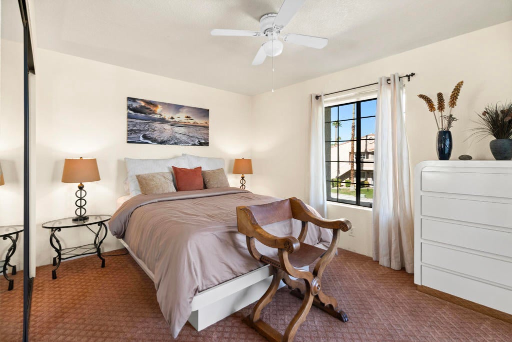 Chic Upper-Level Condo with Stunning Mountain ViewsWelcome to your ideal Palm Springs retreat! This elegant 2-bedroom, 2-bathroom condo in the desirable Mesquite Country Club offers the perfect blend of style, comfort, and convenience. Perched on the upper level, the unit boasts breathtaking mountain views that open to expansive balconies--perfect for morning coffee or sunset cocktails. Tremendous views of Prescot Preserve from every window