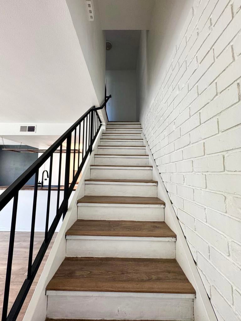 Welcome to this stylishly updated 2-bedroom, 1-bath condo located in the heart of Palm Desert in the desirable community of Indian Creek Villas! This modern two-story home features sleek wood-style flooring throughout, a freshly remodeled kitchen with stainless steel appliances, black fixtures, and warm butcher-block countertops. The open-concept living area is highlighted by a striking white brick accent wall and contemporary staircase railing, offering a perfect blend of comfort and character.Enjoy mountain views and easy access to local hiking trails just steps from your front door. Upstairs you'll find two spacious bedrooms, each with ceiling fans and ample natural light. The shared garage and on-site laundry add convenience to everyday living.Perfectly situated near shopping, dining, and outdoor recreation -- this home is ideal for those seeking a clean, modern space in a prime Palm Desert location.