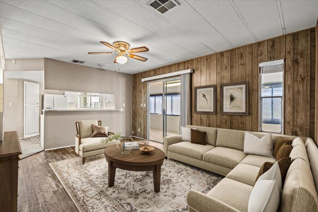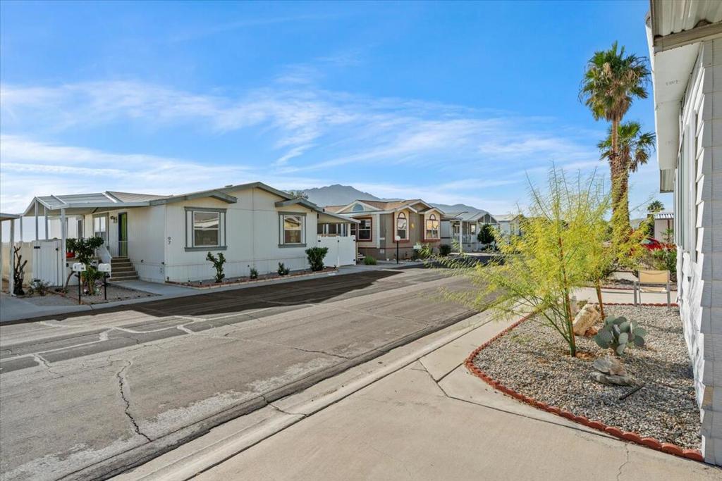 Enjoy the sunny desert lifestyle in this move-in-ready, 2-bedroom + enclosed sunroom, 2-bathroom, 1,248 sq. ft. home on a 3,049 sq. ft. lot! The recorded 433A certifies the property is on PERMANENT FOUNDATION, allowing for conventional financing, additionally YOU OWN THE LAND.Step out onto the front porch to take in breathtaking views of Mt. San Jacinto--where every sunset becomes a masterpiece. The updated kitchen with recessed lighting flows into a spacious family room, perfect for unwinding. The primary bedroom offers an ensuite bathroom and walk-in closet, while the upgraded guest bathroom features a Calcutta marble shower, tempered glass door, and brushed nickel finishes (June 2022). A new water heater enhances everyday convenience.The expansive living and dining areas make entertaining easy, and the enclosed sunroom is ideal for a game room, hobby space, or relaxing retreat. On the east side of this fully detached home is a storage shed and covered carport. This home is just a short stroll to the community pool, spa and clubhouse, offering a lifestyle rich in leisure and activity. With low $195/month HOA dues, this home is just minutes from downtown Palm Springs and a short drive to Joshua Tree National Park. Embrace a vibrant lifestyle at Sky's Haven, a 55+ active community!