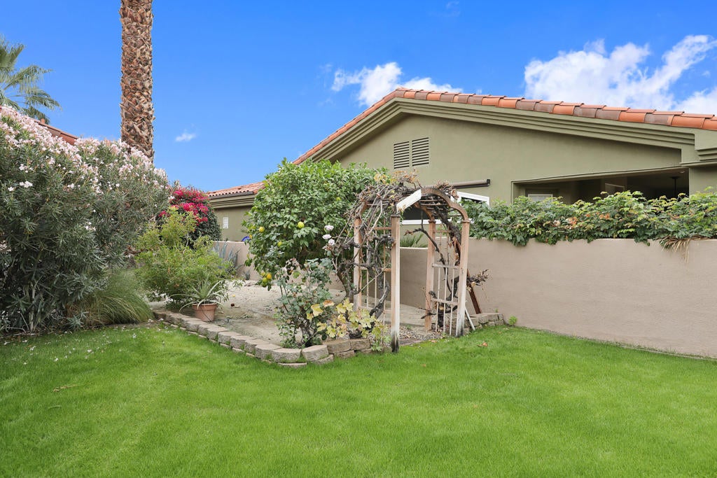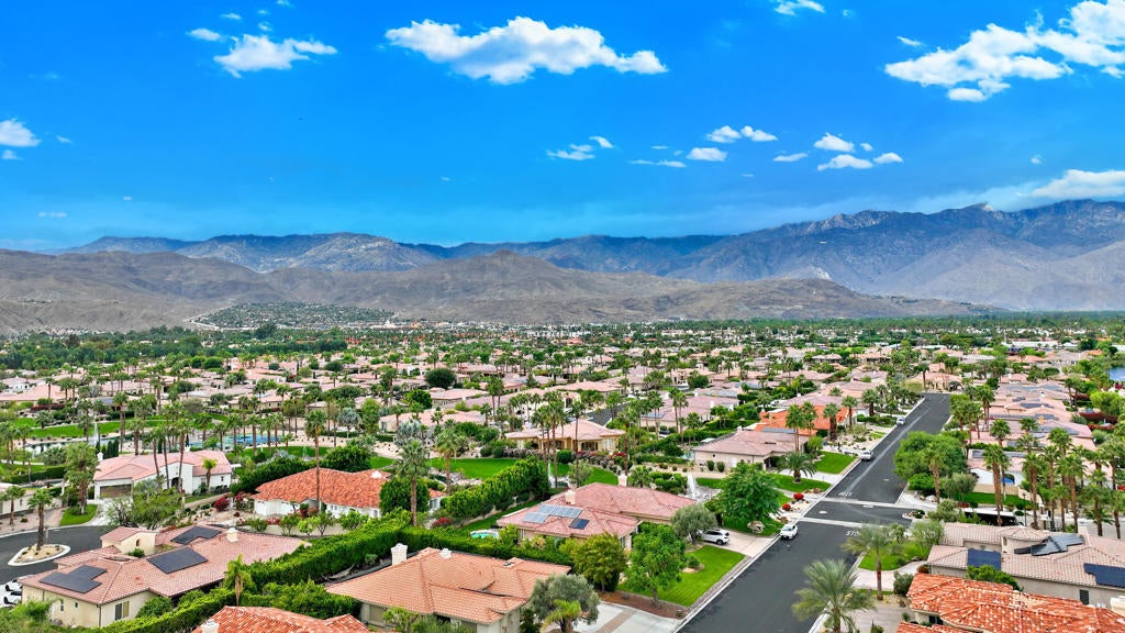 This is an incredible opportunity to own a picture-perfect home in the heart of Rancho Mirage, ideally located in the highly sought-after St. Augustine community. Featuring 4 bedrooms and 3 baths (including a private casita) and a 3-car garage, this home offers both luxury and comfort.Step through the grand entryway highlighted by an elegant crystal chandelier, and into the spacious living room that opens seamlessly to a stunning backyard oasis. Enjoy a large Pebble Tec pool and spa, a covered patio, fruit trees, and breathtaking mountain views--perfect for relaxing or entertaining.Inside, the gourmet kitchen is a chef's dream with a large center island, stainless steel appliances including a Wolf double oven, KitchenAid refrigerator, microwave, wine cooler, and dishwasher. Rich custom dark wood cabinetry is complemented by slab granite countertops and a stylish backsplash.The primary suite offers a spacious retreat with an ensuite bathroom, dual vanities, and a walk-in closet. Two additional bedrooms and a full bath complete the main home. The private courtyard casita provides a luxurious space for guests or a home office.Additional upgrades include crown molding, plantation shutters, tile flooring throughout, newer AC, recent water heater, garage swamp cooler and epoxy-coated garage floor.Residents of St. Augustine enjoy tennis courts, pickleball, and walking paths, with the option to join nearby Mission Hills Country Club for golf, tennis, pickleball, and social events.Don't miss this stunning Rancho Mirage home that perfectly combines elegance, comfort, and resort-style living!