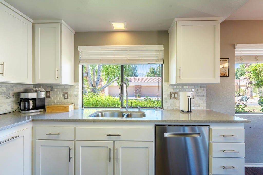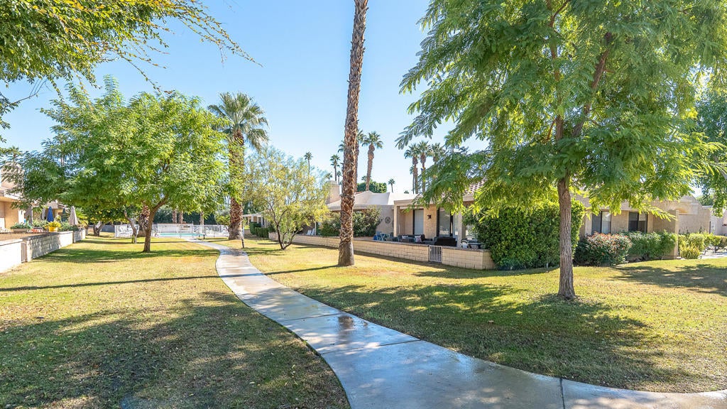 OPEN House Saturday 11:00-1:00 Come see this beautiful end unit with three bedrooms and an atrium. Sharing only one exterior wall and tucked away on a private cul-de-sac, this home offers both privacy and tranquility. TURNKEY, furnished. Located on the quiet and desirable east side of Cathedral Canyon Country Club--away from busy streets--you'll enjoy views of a sparkling pool and spa from the bedroom and patio. Steps away from the 5th hole of the Lake Course, this immaculate three-bedroom, two-bath home spans over 1700 sq. ft., yet feels even more spacious.Perfect for entertaining: an open concept living area, high ceilings, a fireplace, wet bar and two inviting patios. The central patio is extra-large and overlooks the pool, spa, lush greenbelt, and citrus trees, offering both beauty and privacy.Ideally situated in South Cathedral City, this home is walkable to many amenities--and just steps through the back gate takes you right into Rancho Mirage, across the front gate is Palm Springs, mintes to PSP Airport, shopping, restaurants, casinos, civic center, hiking, and golf. The stunning San Jacinto Mountains frame Cathedral Canyon Country Club and offer an incredible lifestyle with 18 holes of golf, tennis courts, a driving range, and multiple pools and spas. Come experience resort-style living at its best!