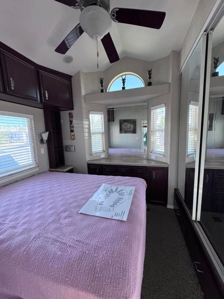 Located in the beautiful Desert Aire resort. Desert Aire is an over 55, pet free, 9 month park. Desert Aire does not permit full time residency. This park is primarily used by snow birds looking to spend the winters in our warmer climate.Take a look at this outstanding 2015 park model with a loft, located on one of the best lots in the park. This park model has everything!! Starting with the location, you have mountain views as well as being located on the water. You will enjoy entertaining on the large patio complete with an outdoor kitchen. You have a large bar with lots of seating, built in BBQ, side burner, built in refrigerator and stereo system. Two large umbrellas provide shade, but you will enjoy all the sunshine this space provides. Spend time sitting around the propane fire pit with your friends on the cool winter evenings.There is a large custom built storage shed that will hold all of the patio chairs and cushions and umbrellas.Stepping into the beautiful park model, you will find it tastefully decorated with all of the furnishings included in the sale. There are two flat screen televisions, lots of storage throughout the unit. There is a built in clothes dresser inside the closet of the bedroom. The large loft adds additional square footage and is perfect for an upstairs office or additional sleeping for those special grandchildren that will want to visit!!There are so many features to mention, you just need to see this beautiful property.This park model is move in ready and has everything you need to start enjoying your time in Desert Aire!!!