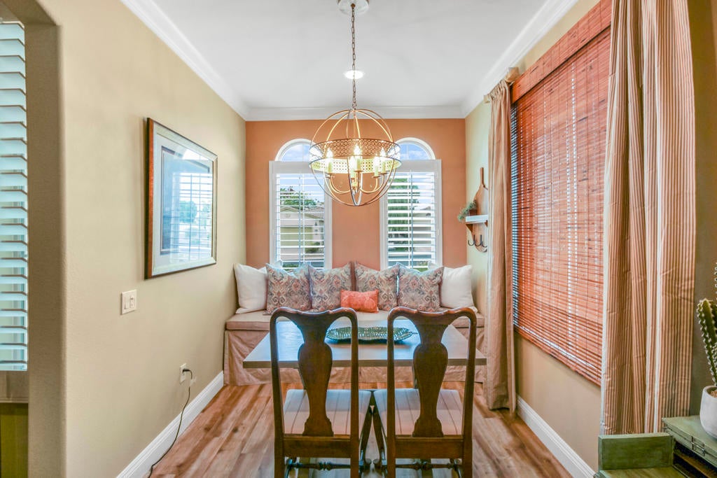 Perfectly furnished for you. Lease (3 months or longer. This Charming San Vincente Plan has everything you need to enjoy. Two Bedrooms, Two Baths with Den/Office and an Exceptional Backyard with Covered Patio and Open Air Space for Entertaining. A Spacious 2 Car Garage is attached with Storage Cabinets.