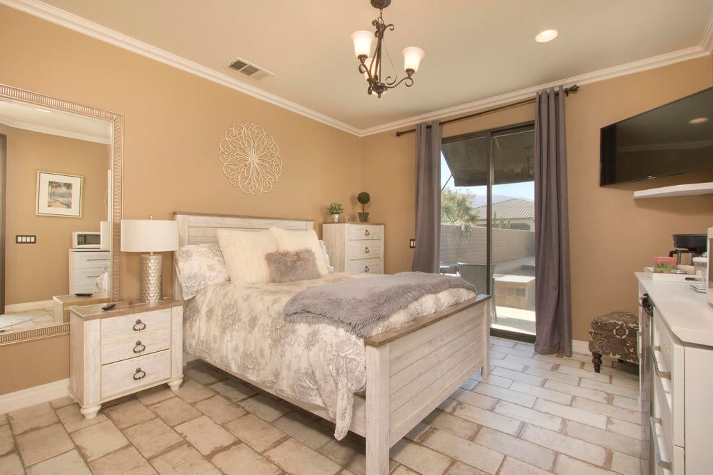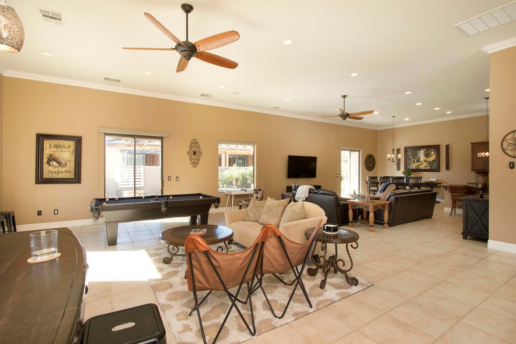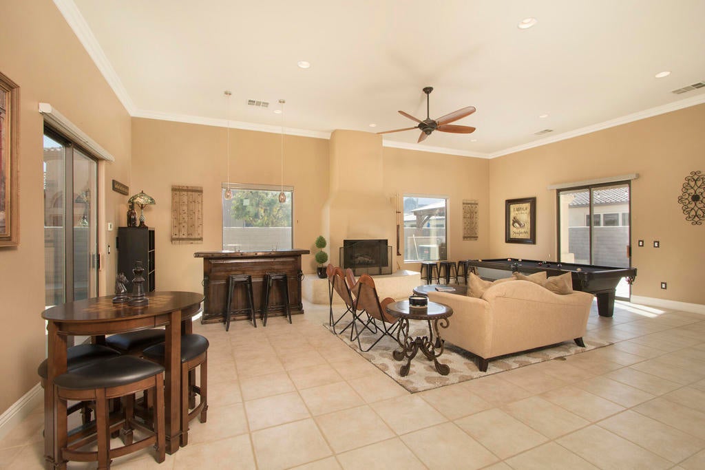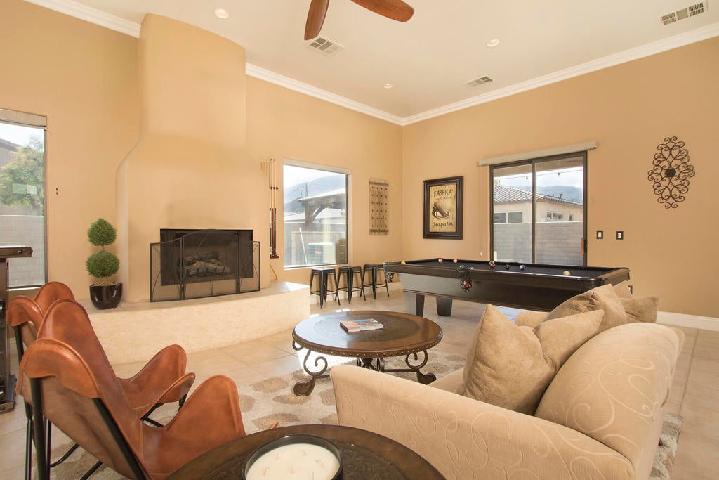 Great opportunity to lease this turnkey home and start soaking up the sun! Beautifully upgraded large home in the small gated community of Santa Rosa Trail. Experience the elegance of desert living with Coral Mountain views, luxurious amenities and a lifestyle that blends relaxation and excitement.This home features 4 furnished bedrooms with ensuite baths and abundant closet space. A detached casita with delight family and guests while offering privacy. Gourmet kitchen features large granite island, stainless steel appliances and pantry.Step inside to find a thoughtfully designed floor plan offering spacious great room, high ceilings and grand fireplace with large windows to the gorgeous views outdoors. Luxurious master suite offers a fireplace, walk in closets, dual vanities, soaking tub and walk-in shower.Enjoy the private courtyard featuring the pool and spa. Three car garage.Minutes away from premium golf including PGA West, Polo Grounds and many biking and hiking trails. Charming Old Town LaQuinta is just 10 minutes away. Come experience the unique desert lifestyle for and unforgettable living experience.