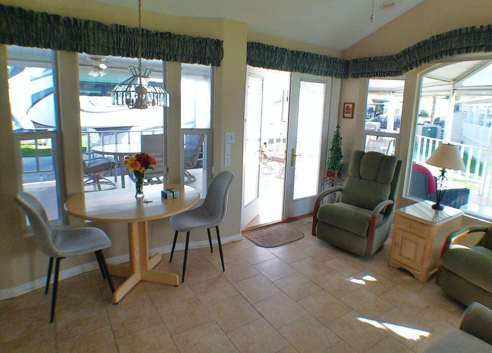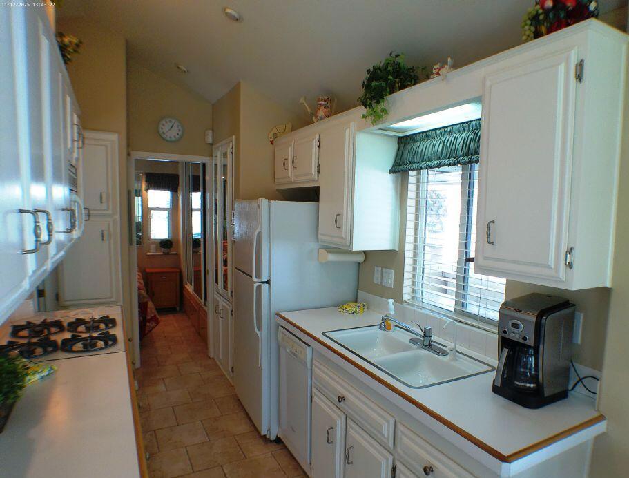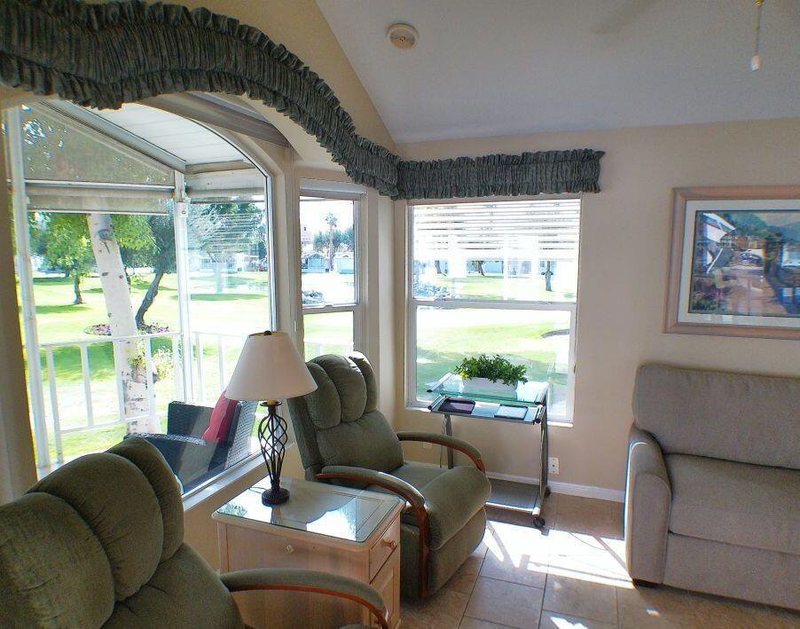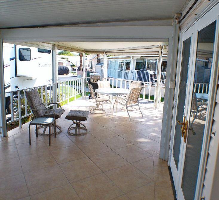 This Park Model, located on the 13th Green has Views, Views and more Views, of the mountains, water feature, 3 golf holes. It offers auto shutters, turnkey, tile covered deck, great living space inside and outdoors. Tile floors through-out. It offers a Microwave/Convection oven, Pull out shelves in the kitchen and also extra storage in bedroom and also under the bed. Sat 'C' pool/spa across from the front door along with W/D.\, and mailboxes. Sit out on the deck and view gorgeous Sunsets. Don't miss this one on the golf course.