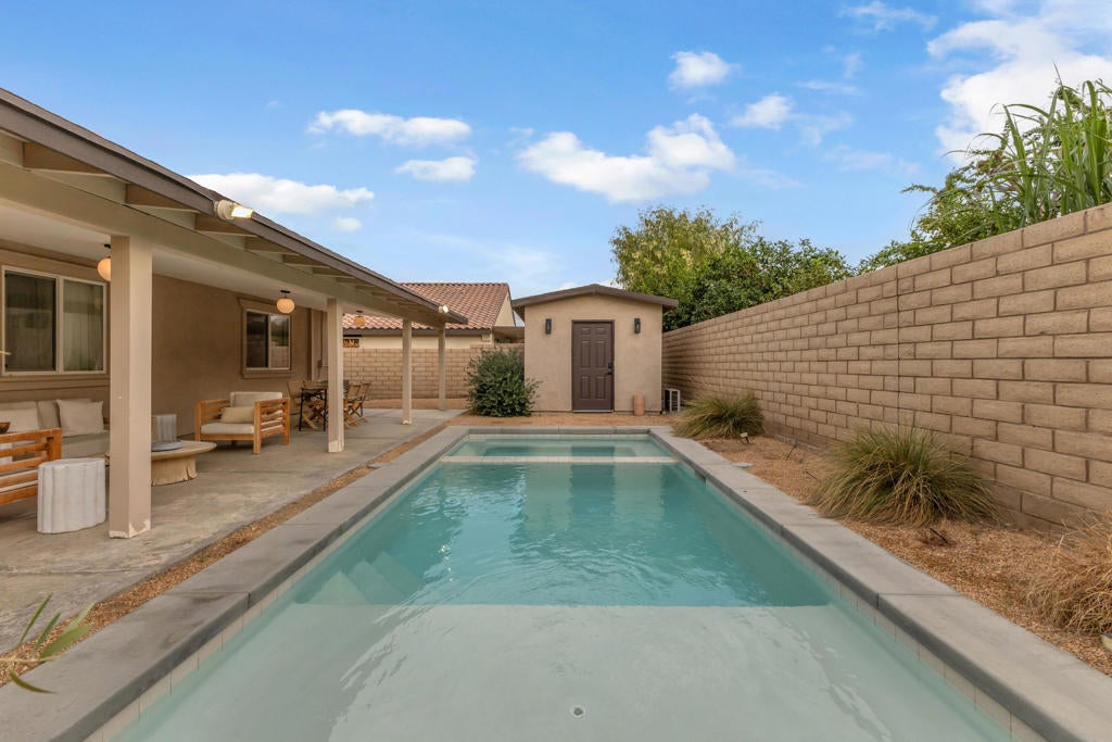 Welcome to your dream home in the perfect community for first-time buyers or investors! This TURNKEY 3-bedroom + Casita, 2-bath home offers the perfect balance of style, comfort, and tranquility, just minutes from The Empire Polo Club and Indian Wells Tennis Garden. Every detail has been carefully crafted with natural materials and Moroccan-inspired finishes, creating a warm and inviting atmosphere. The detached casita with AC provides a peaceful guest space or private hideaway, while the converted garage serves as a fitness studio or can be transformed into a home theater for entertainment at any time. Outside, the resort-style backyard is a true oasis with a sparkling pool, relaxing spa, fire pit, BBQ, and outdoor shower, perfect for unwinding or hosting gatherings under the desert sky. With over 70 five-star reviews and a 4.8 Airbnb rating, the home combines comfort, elegance, and excellent investment potential. Currently operating as a short-term rental, it offers the flexibility to continue generating income or enjoy it as your own private getaway. Sellers are open to including all furniture! Creating a turnkey opportunity ready for you to move in and enjoy.