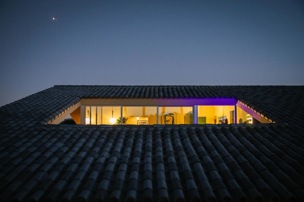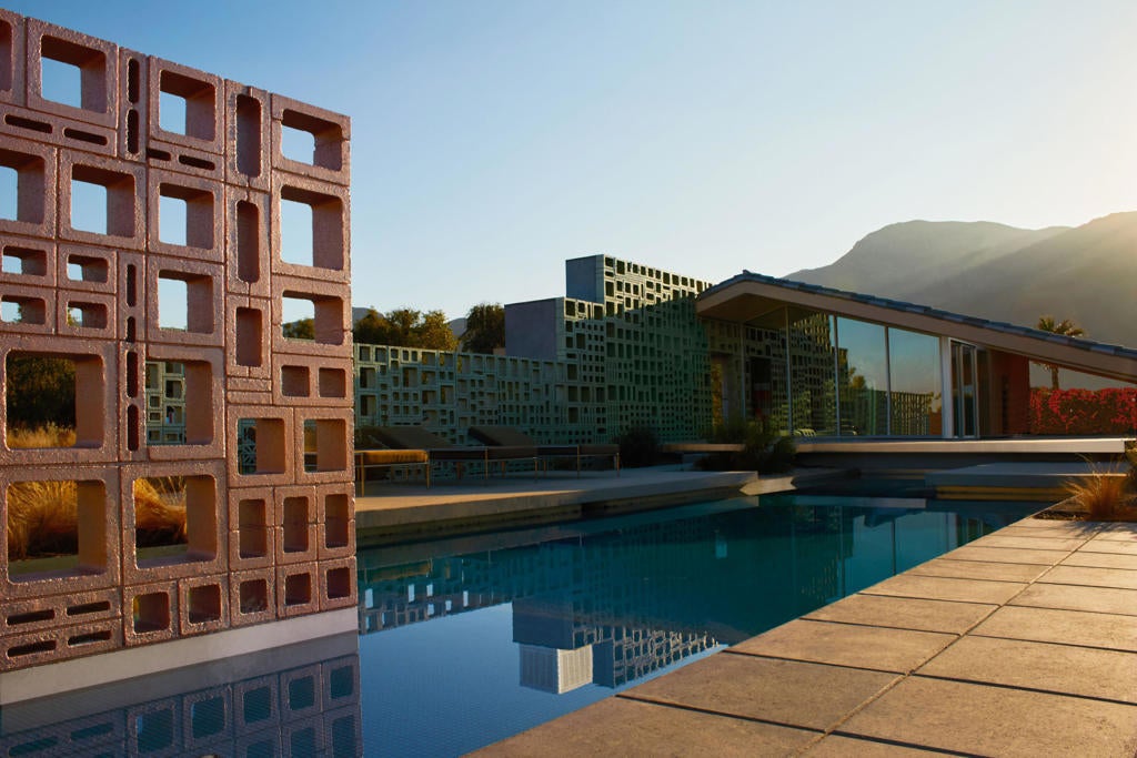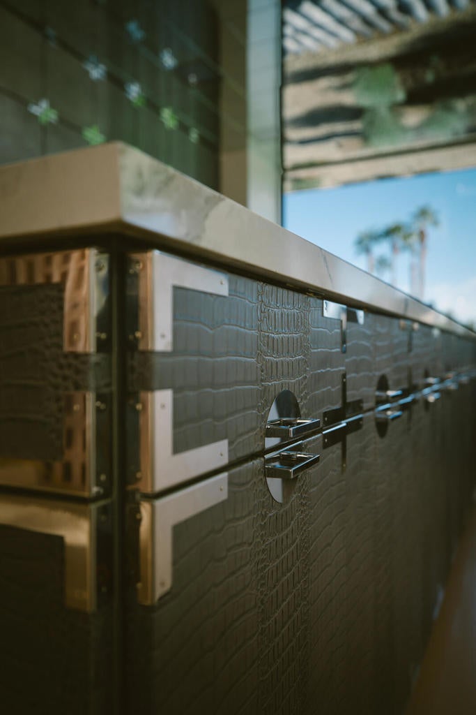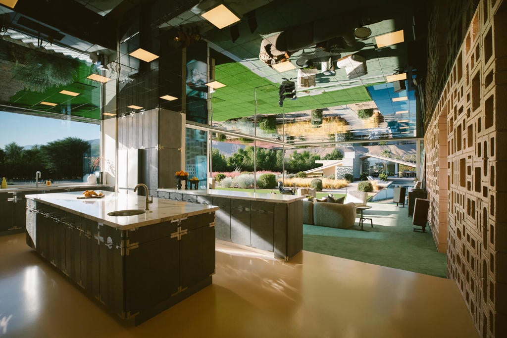 Before his name is mentioned alongside modernist architects, Neutra and Schindler, acquire a ROBERT STONE original. The Dreamer Estate, 5 bedrooms, 5 bathrooms, 4,029 square feet on 3.83 acres in Rancho Mirage, is architecture as cultural capital for those who collect design, not compromise to it. Stone, whose Acido Dorado and Rosa Muerta properties were photographed by Steven Klein for Vogue Italia, has created his most complete vision: two structures, DREAMER and LIL' DREAMER, connected by an expansive linear pool that functions as liquid architecture. Step inside the main residence where retractable glass walls dissolve into desertscape. Gazing upward: Mirrored ceilings capture the San Jacinto mountains, and when sunlight strikes the pool below, liquid gold dances across your living room ceiling, waves of light that shift by the hour, transforming the space into a living gallery. The kitchen defies convention with crocodile-embossed leather cabinetry inspired by Japanese tansu and Prada's aesthetic, bespoke stainless hardware, marble counters, and a window that floods the space with desert light. Your primary suite opens to a private patio with plunge pool and roof opening that frames the night sky, float under stars in complete privacy. Kelly green tile separates bedroom from bath, bold and unapologetic. Lil' Dreamer, the two-bedroom guest house, offers the same architectural vision in a more intimate scale with sunken living room and stone patio. Between them, the pool reflects both structures like a mirror. Nearly four acres in the ''Playground of the Presidents'' provides room to expand: tennis court, car gallery, sculpture garden, whatever your vision demands. Every detail chosen with intention: hand-placed breeze blocks creating sculptural walls, silver-glazed tile roof that reads like a Spanish spaceship, metallic surfaces that shift with the desert sun. Featured in Robb Report, Palm Springs Life, Mansion Global and most recently Wallpaper. When Stone's work enters museum collections, you'll own the Rancho Mirage masterpiece. Schedule your private viewing of this move-in ready tour de force.