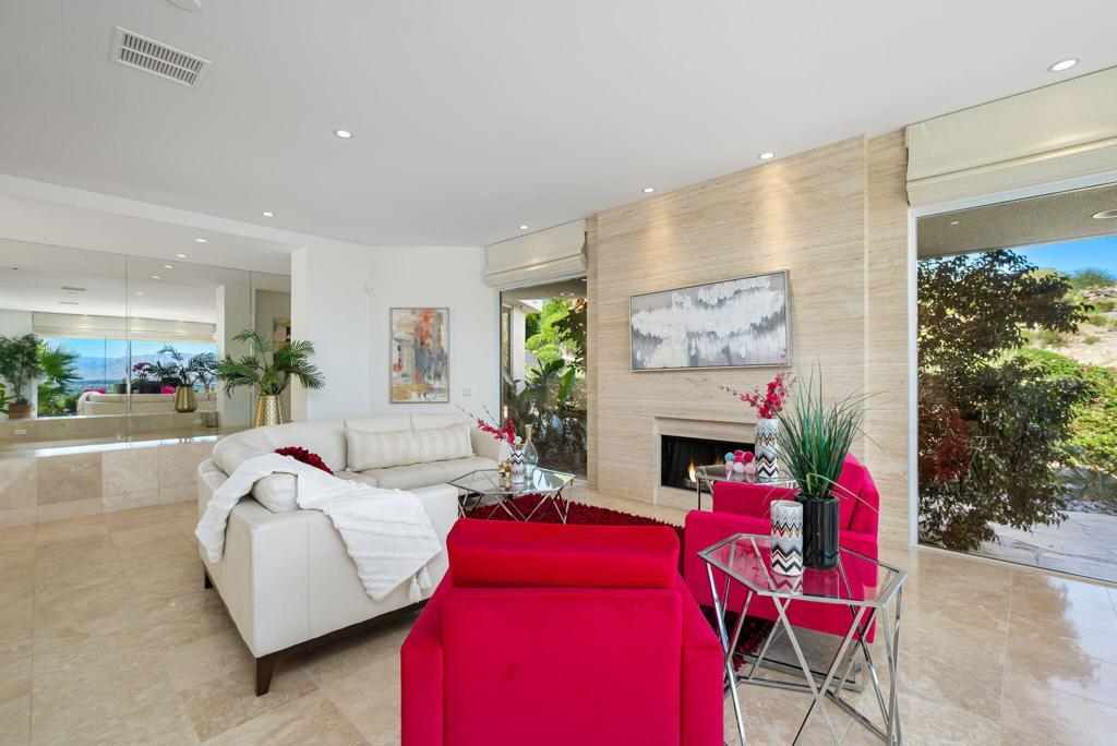 Breathtaking 270-degree views from this spectacular home in famous Southridge, an exclusive gated 22-home community nestled in the mountains and known for its long history of celebrity-owned homes, including those of Bob Hope, Steve McQueen, William Holden, Suzanne Somers, and the Elrod House, to name a few. This updated Mid-Century Modern home offers 270-degree views, including the Valley Floor from Palm Springs to the Salton Sea. The home offers five ensuite bedrooms, a powder room, and boasts a bright and open floor plan, extreme privacy, a quality pool/spa, a large patio with a built-in barbecue, and a private fire pit on the SW corner of this estate-sized lot. There's an additional private spa on the east side of the patio, offering the same spectacular Coachella Valley views and city lights at night. The perfectly appointed Chef's kitchen, floor-to-ceiling glass walls, ceiling fans, wet bar, electric blinds throughout, and the second workout room (converted from a 3rd garage stall) all make this home special. The second level offers one primary bedroom with a fireplace, a recently updated bathroom, a walk-in shower, a standalone soaking tub, a large walk-in closet, sliders to your private deck, and a separate lock-off office. An additional upstairs ensuite bedroom/exercise room has its Private 'Zen ' deck. Downstairs, you will find one more Primary Suite and two other En-Suite bedrooms, plus a powder room for your guests. Furnished per writtenInventory. Easy to show on short notice. You can contact either of the Listing Agents for a showing. Rick Parnell 360-280-4178 or Mark Brack at 760-515-7215. The Listing agent must accompany all showings. It is an exclusive neighborhood, and all visitors need to be accompanied by the listing agent.