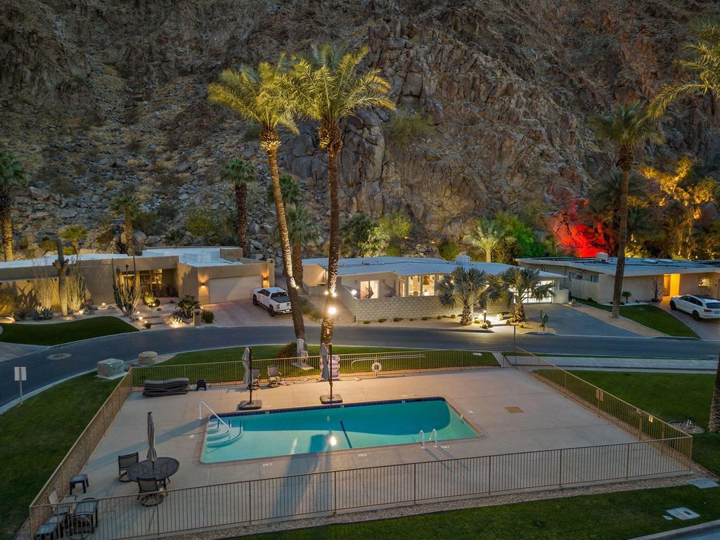 Mid-Century Modern Gem in Historic Indian Wells Country Club - No HOA!Step into timeless elegance with this rare mid-century modern A-frame home nestled in the prestigious Indian Wells Country Club. Located in a quiet cul-de-sac, this historic property is in the neighborhood where Hollywood legends Desi Arnaz and Lucille Ball once resided in the late 1950s. Enjoy the exclusivity of a 24-hour guard-gated communitya'without the burden of HOA fees.This 3-bedroom, 2-bath home is perfectly positioned against the majestic Santa Rosa Mountains, offering stunning panoramic views. The open-concept layout floods the space with natural light, featuring a stylish kitchen that flows into the spacious great room and dining area, all anchored by a cozy fireplace.Designed for privacy, the bedrooms are thoughtfully separated, providing a tranquil retreat for all. Whether you're seeking a full-time residence or a luxurious vacation getaway, this home offers the perfect blend of classic mid-century charm and modern-day comfort.Other key upgrades include new windows, upgraded kitchen, redesigned bathrooms, new AC along with 6 mini splits giving each room temperature control, enclosed sunroom lounge against the mountains, and more!Outside, enjoy direct access to a serene community pool just steps from your front door. A two-car garage adds convenience, while the peaceful, tucked-away location enhances the sense of retreat.An entertainer's dream and a piece of Indian Wells history