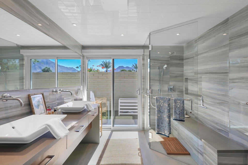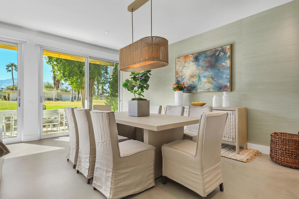 PRICED INTELLIGENTLY BELOW MARKET! More than $175k in recent RENOVATIONS! Situated at the base of Eisenhower Mountain, the 116 homes in Casa Dorado are officially recognized as a historic landmark by the Indian Wells Preservation Foundation. 'PANORAMIC MOUNTAIN VIEWS' and 'DESIRABLE SOUTH - FACING' This is a Prime Location in Indian Wells; This home is rich in design, offering Bright, Peaceful, and Enchanting Style!! Beautifully appointed on a corner location, upon entry, you will instantly see the ATTENTION TO DETAIL and STYLE in upgrades throughout, including UPSCALE LED LIGHTING, New designer grass and woven wall coverings, New Hunter Douglas remote activated blinds, and designer textures and tiles showcasing the BEAUTY of the home! The Kitchen, offers an open concept, making entertaining seamlessly easy and Fun! From the great room step out onto your patio, basking in the serenity of the open greenbelts with those Gorgeous Mountain Views, complete with a retractable awning! Both bathrooms offer style with grand upscale tile and sophisticated fixtures. And don't forget the golf cart garage, New Tankless Water heater, the list goes on! This is a must-see in person! Casa Dorado! Close to El Paseo, Great places for Dining, Tennis, Pickleball, 6 Pools, 2 Tennis Courts, 4 Hole Golf and more!